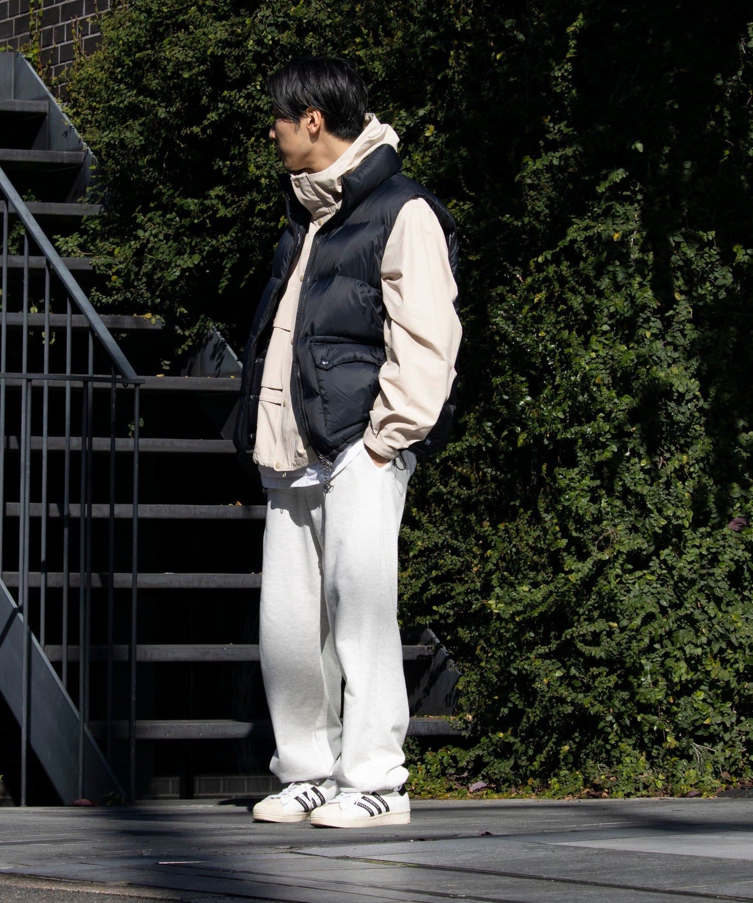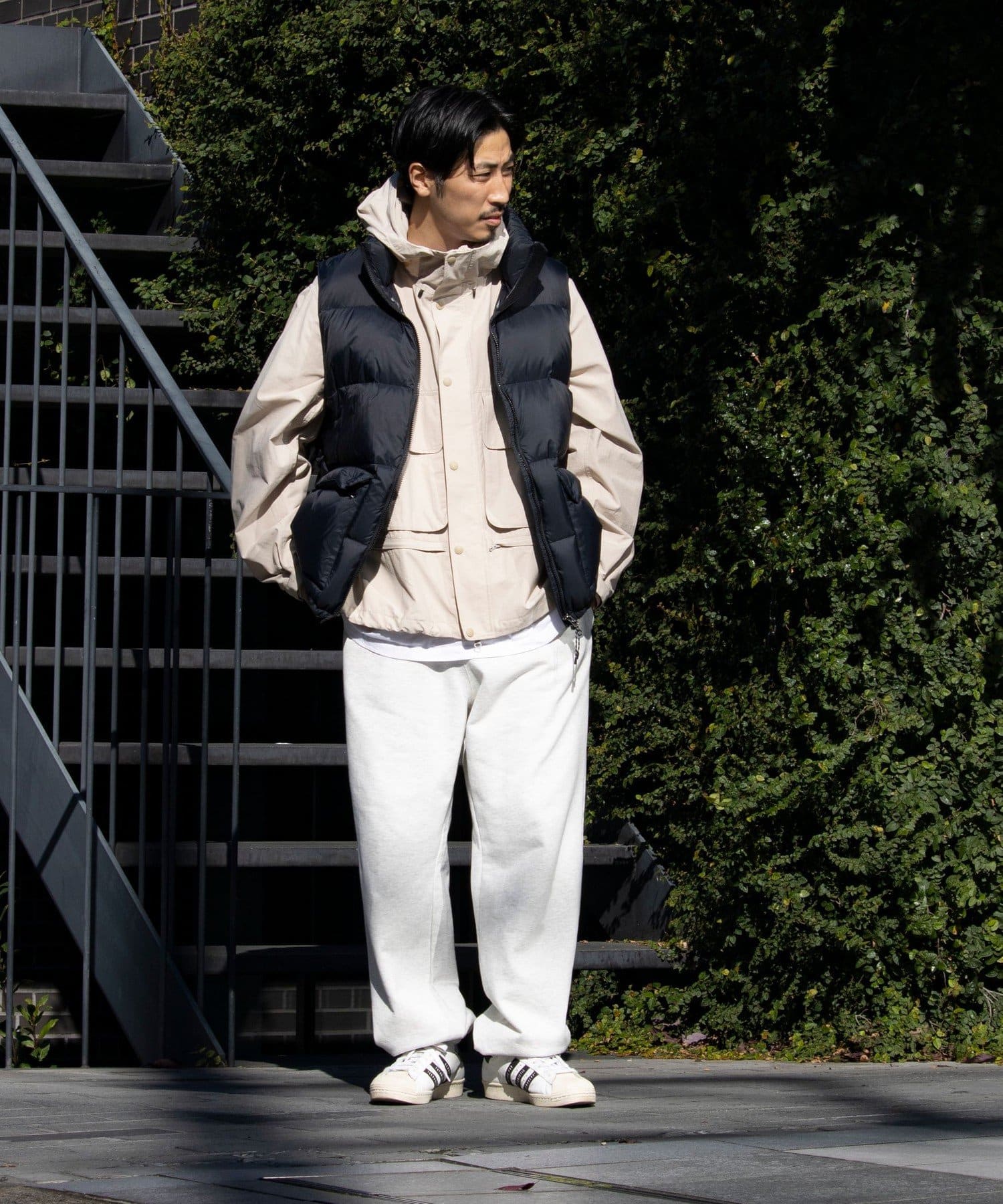 スウェットやパーカーとのレイヤードコーデがおすすめです。