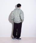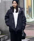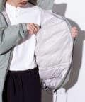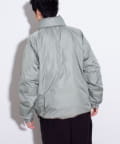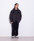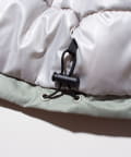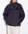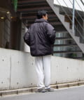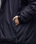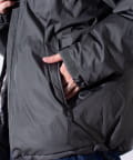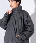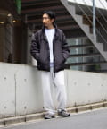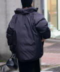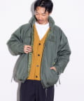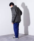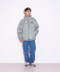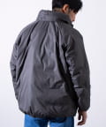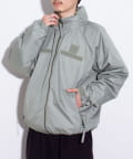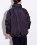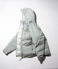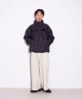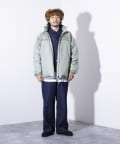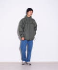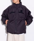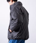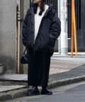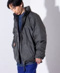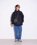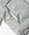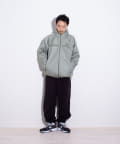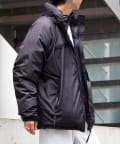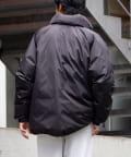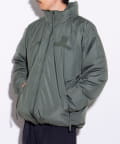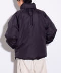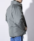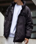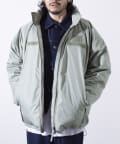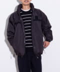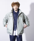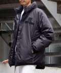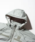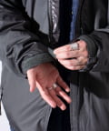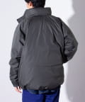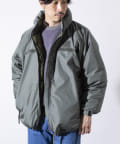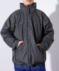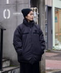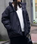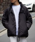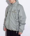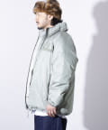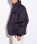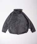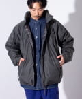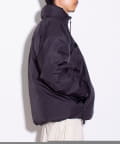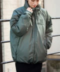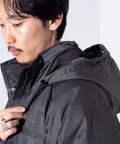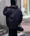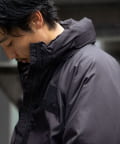 大振りのシルエット、フード収納のスタンドカラー、フロントファスナーのダブルZIP、ミニマルな雰囲気が特徴のアウターになります。