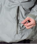 裾口の内側両サイドにはドローコードを採用しており、調節するための先端はフロントポケット内部に通されてあるため、コードのもつれや引っかかりなどを防止してくれます。