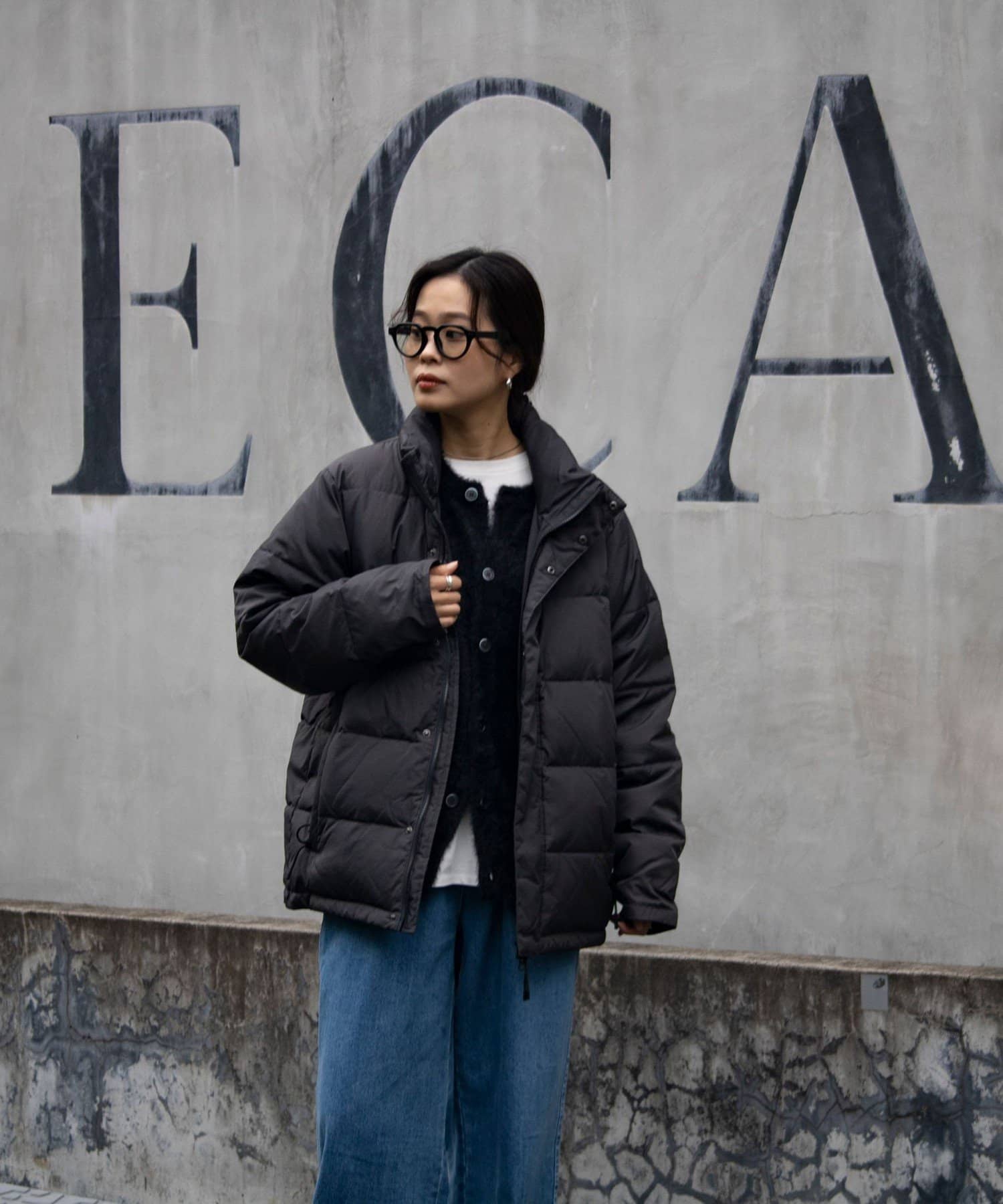 シンプル・ミニマルなデザインが魅力的なダウンジャケット。