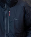 ・袖を腕の動きに合わせて前ぶりに設定し、切り替え線を⼊れることでダウンのつぶれとコールドスポットを軽減‧内襟に別布を使⽤。