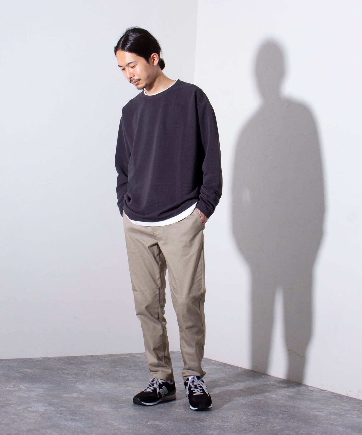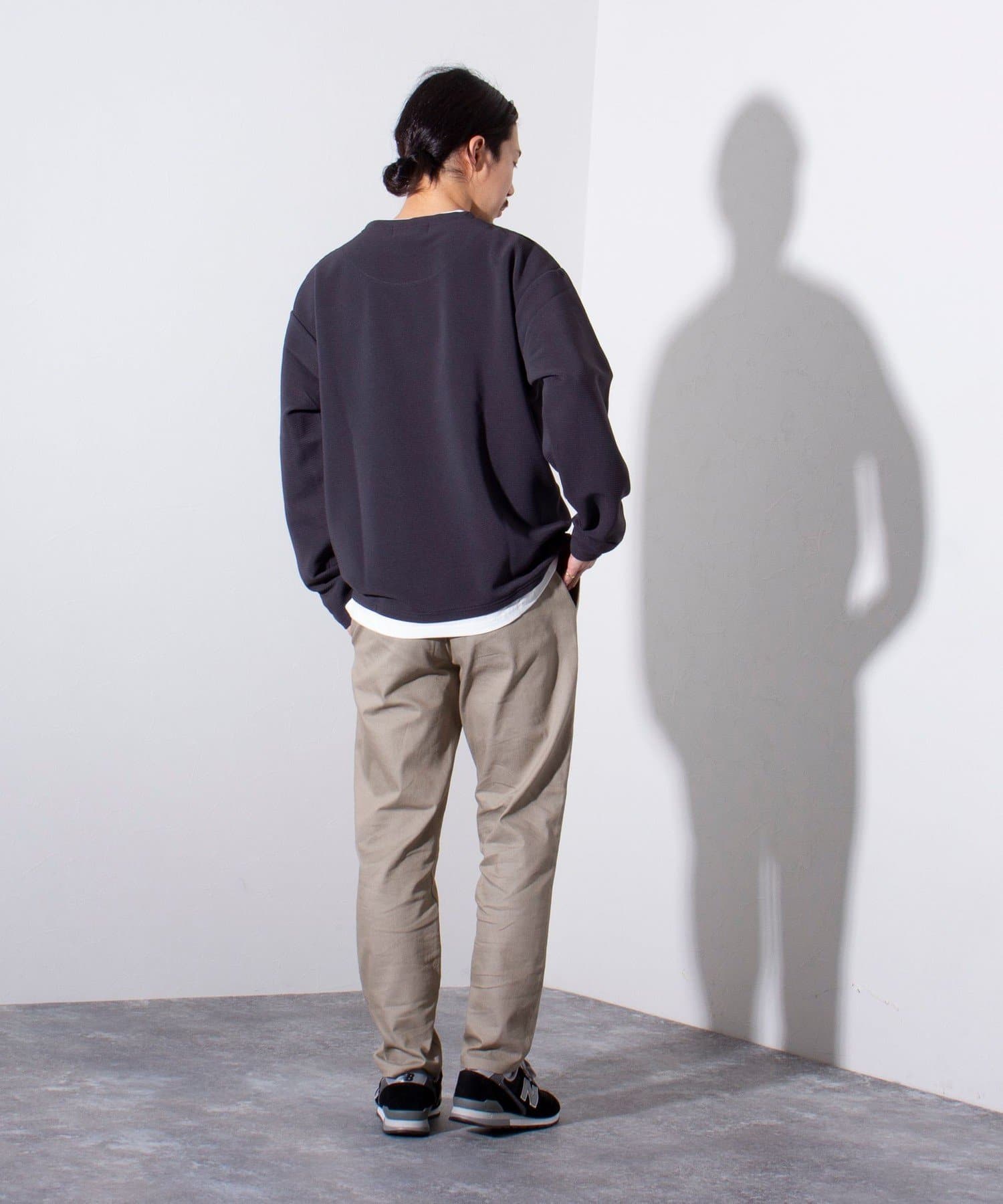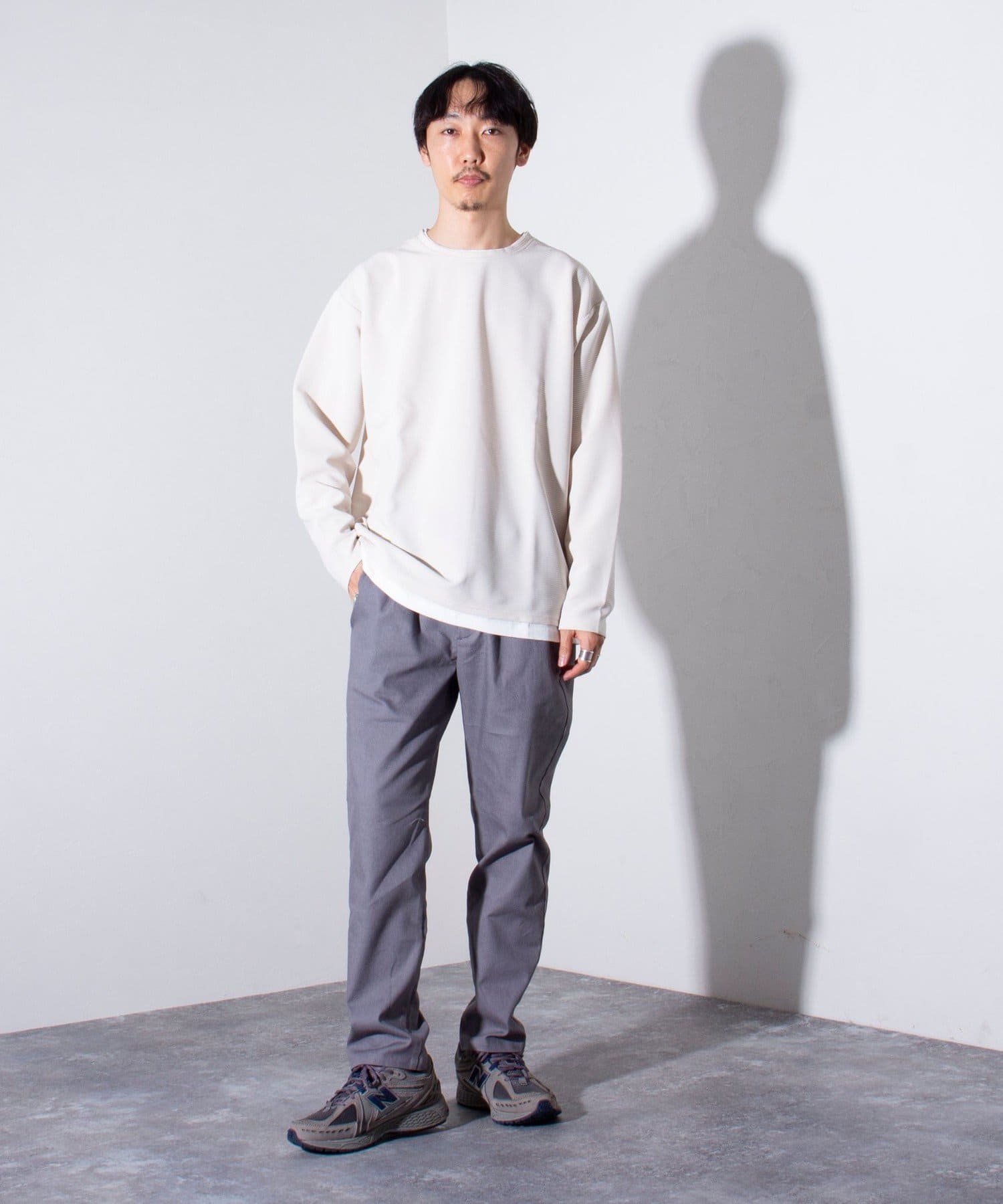 ドロップショルダー/ワイドフィットなので細身のパンツやスラックス、ワイドパンツまで幅広いパンツとの相性もバツグンです。