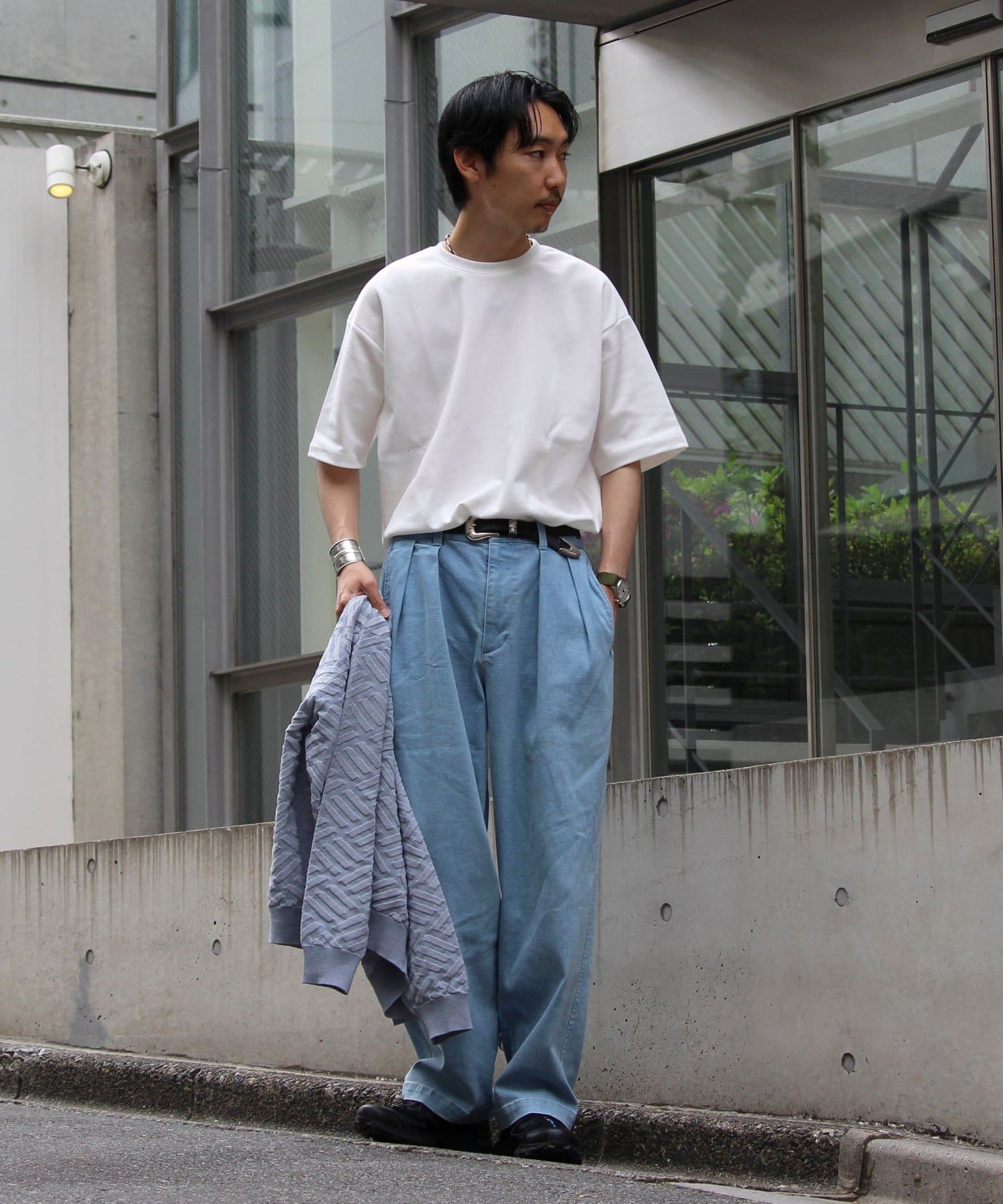 デニムやチノなどベーシックなボトムスはもちろん、ワイドなスラックスパンツやフレアパンツなどとも相性が良く、セットアップのインナー使いとしても最適です。