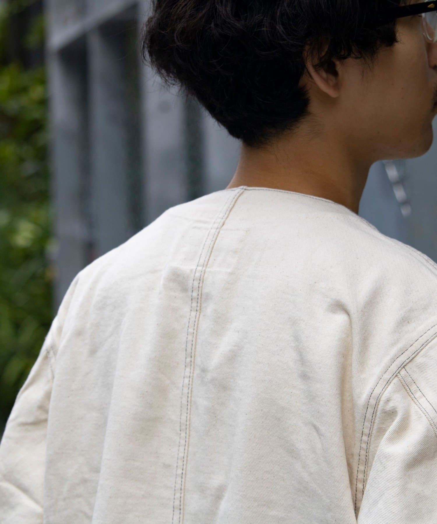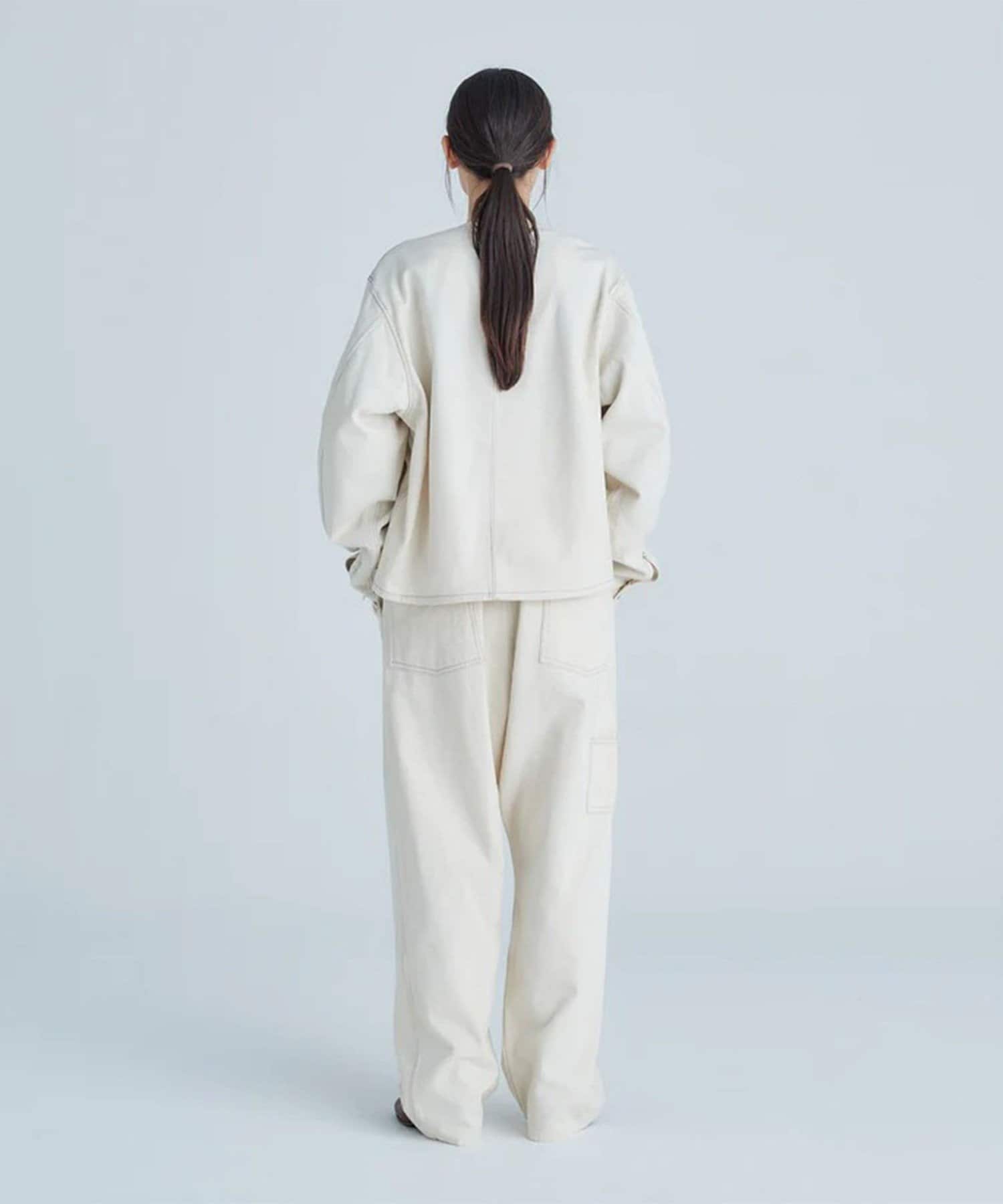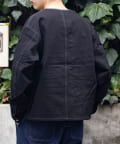短丈でありややワイドなシルエットは日常に取り入れやすく一枚羽織はもちろん重ね着でも楽しめ1年中出番が多いアイテムになりそうです。