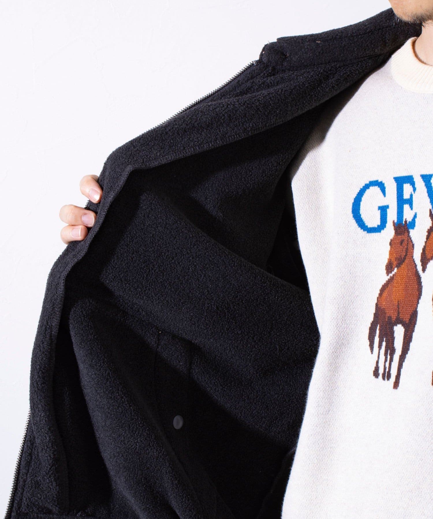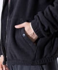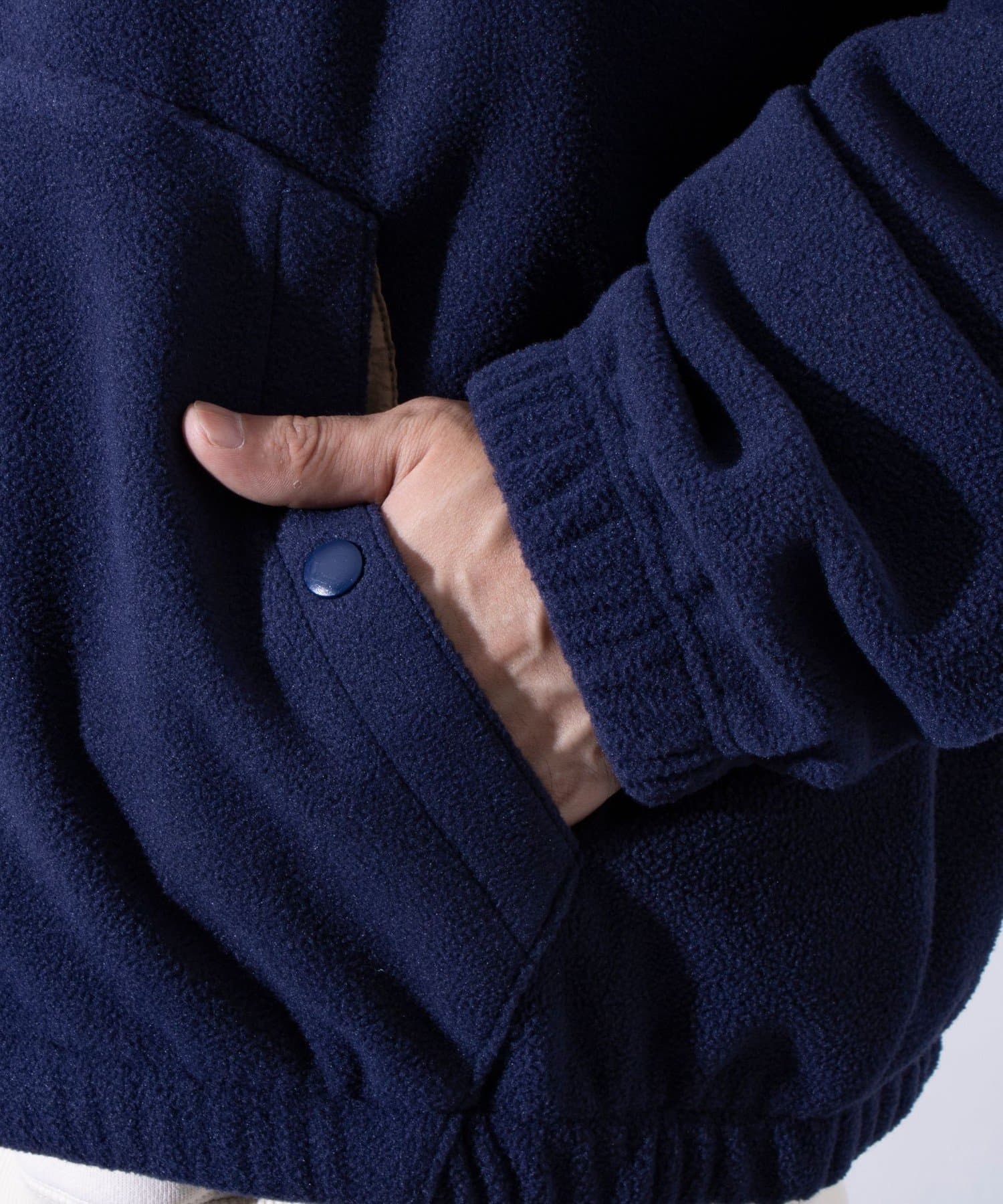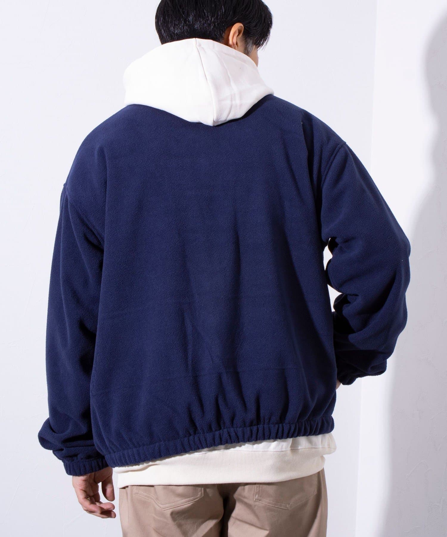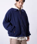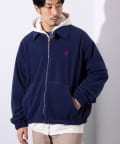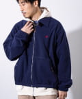 胸元にワンポイントでワンポイント刺繍が施されたフリース素材のジップアップブルゾンです。