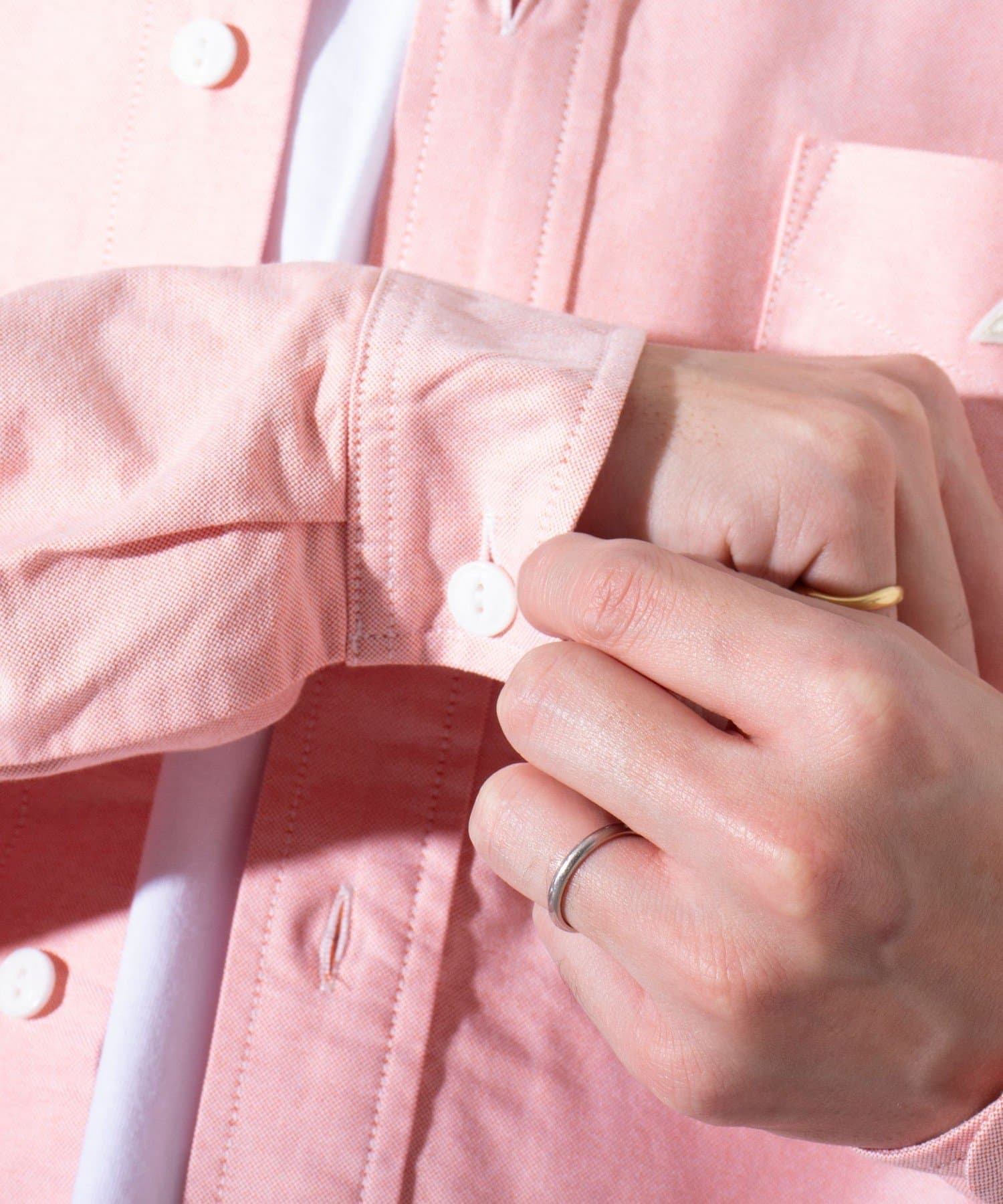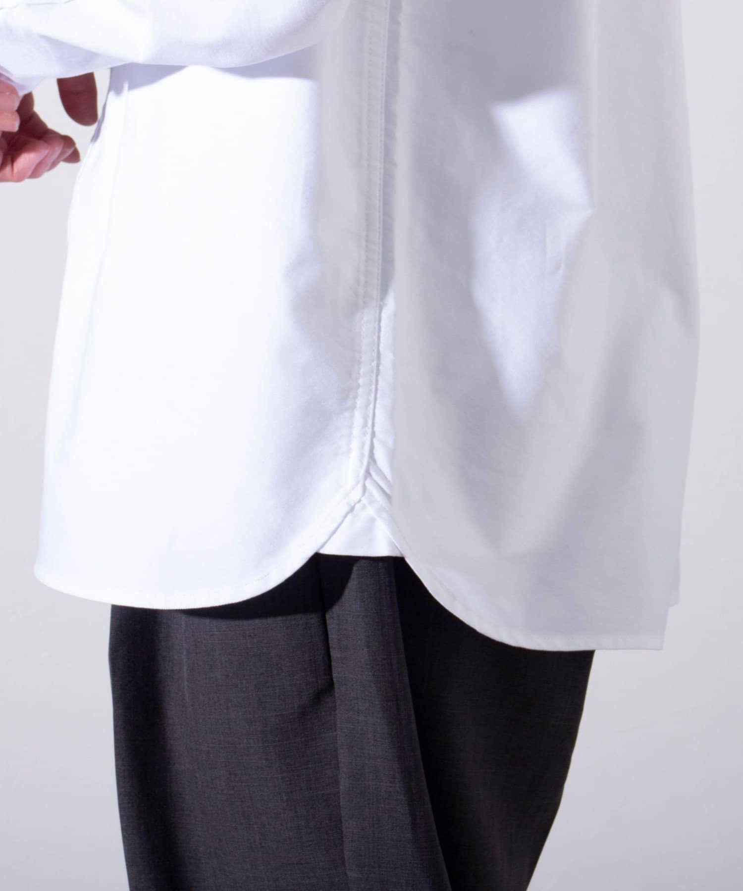 前立てから裾にかけてラウンドしたヴィンテージのシャツに見られるデザインを採用。