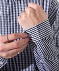胸元のワンポイント刺繍と落ち着いた印象のギンガムチェックシャツ!