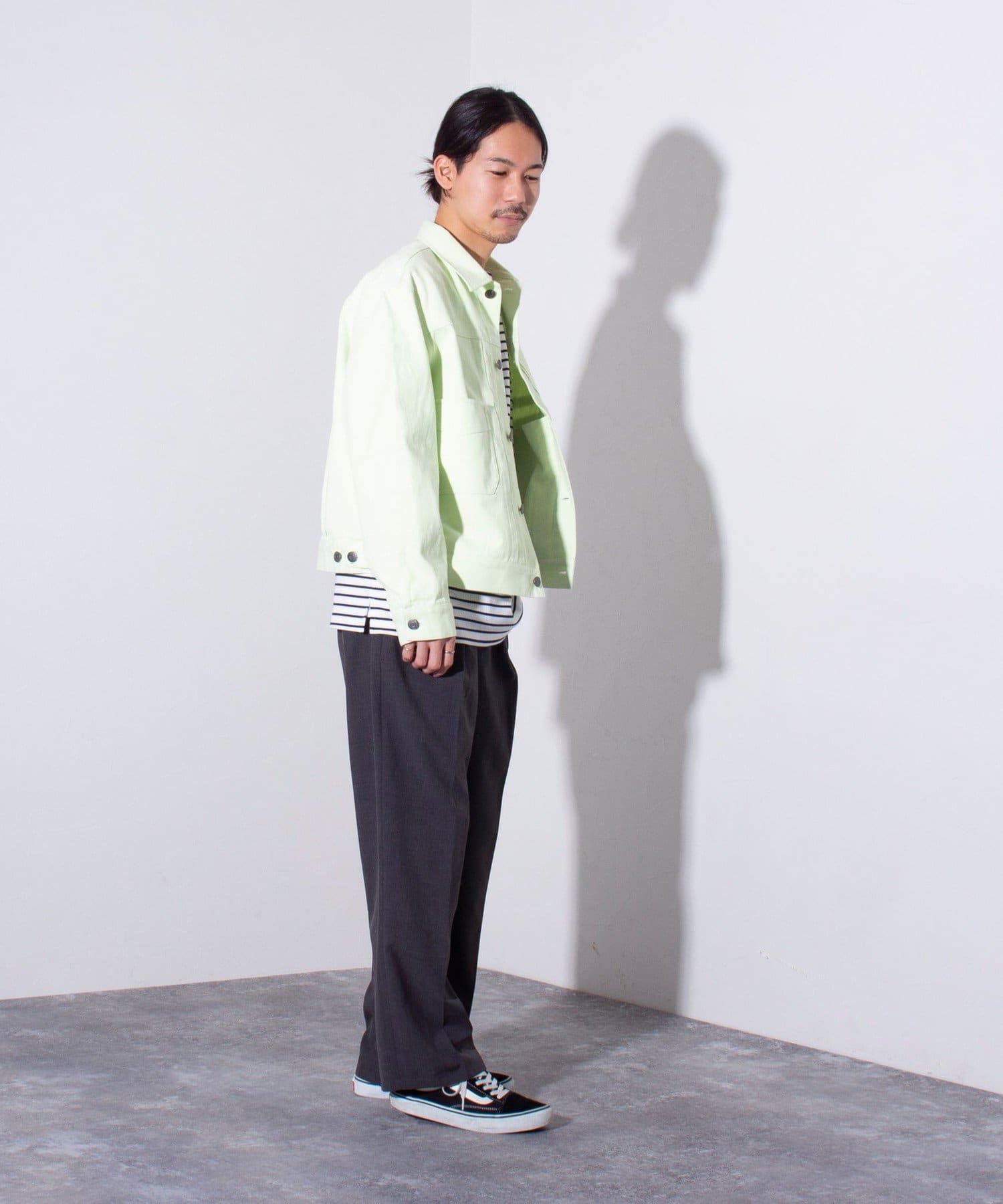リラックスしたサイズ感なので幅広いパンツとの相性が抜群です。