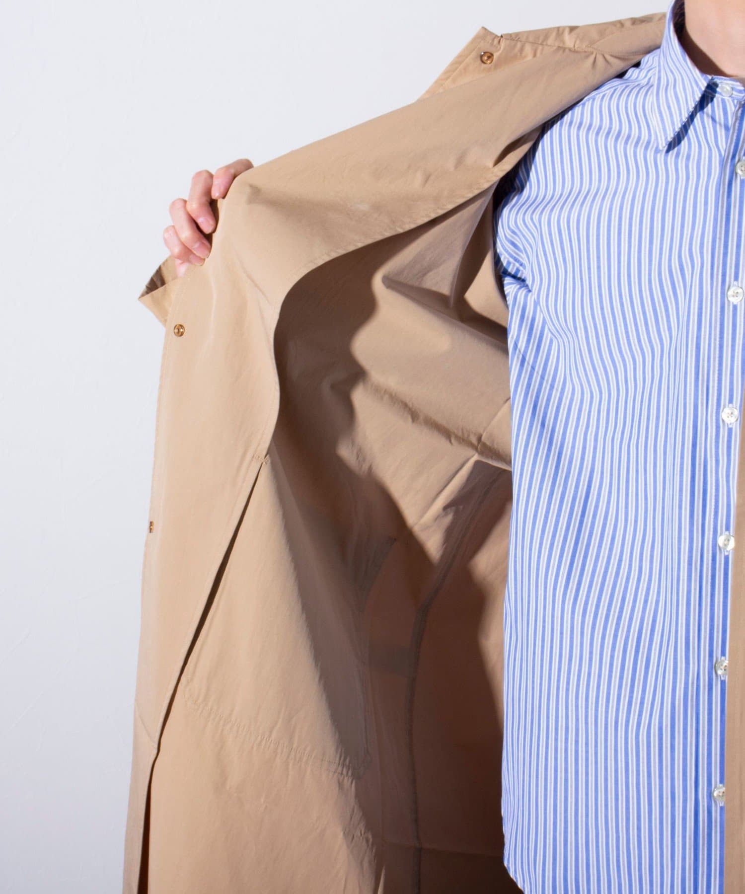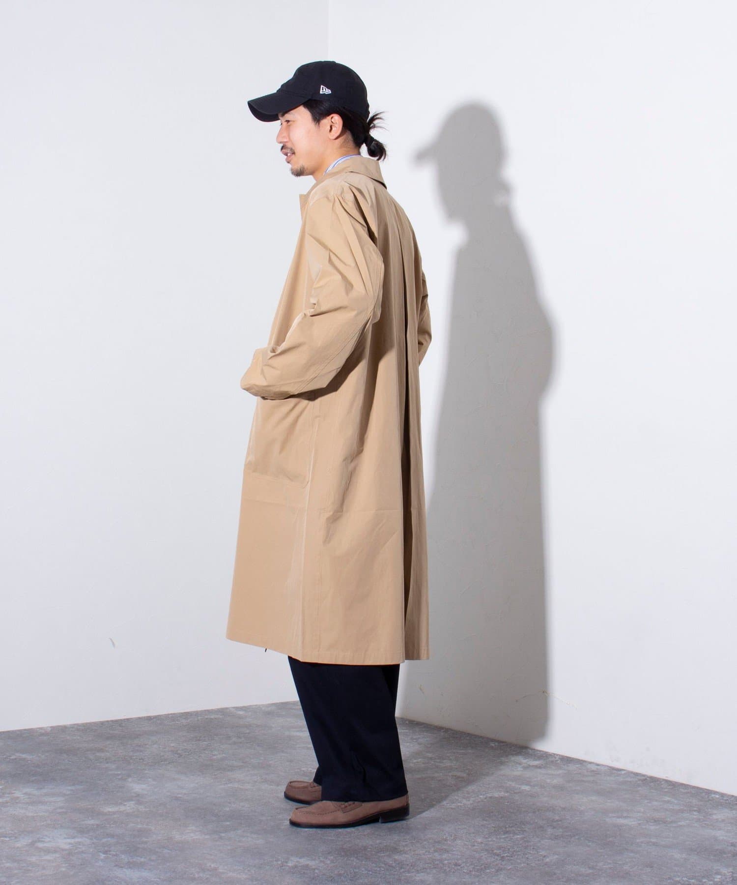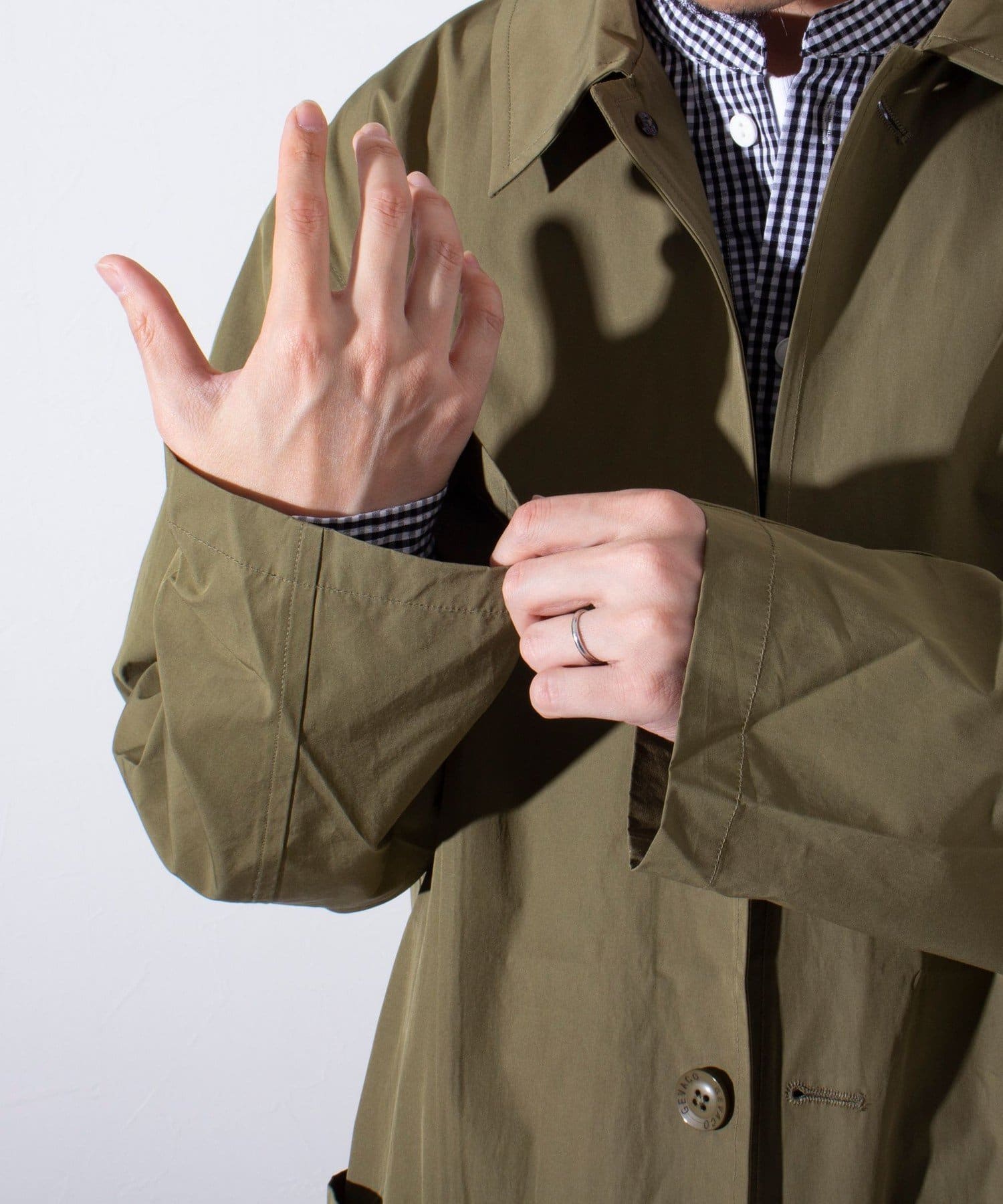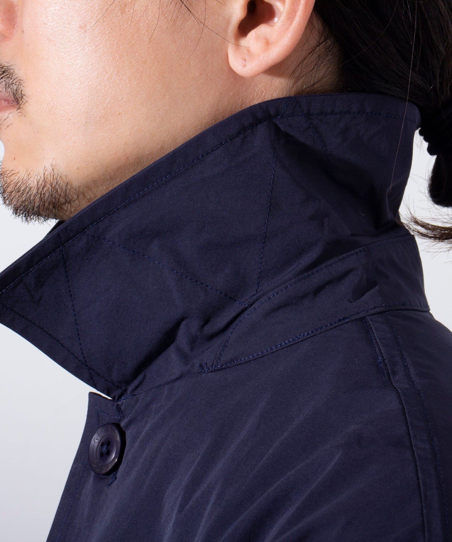 ポリエステル×コットン×ナイロンの高密度ウェザーを使ったステンカラーコート。