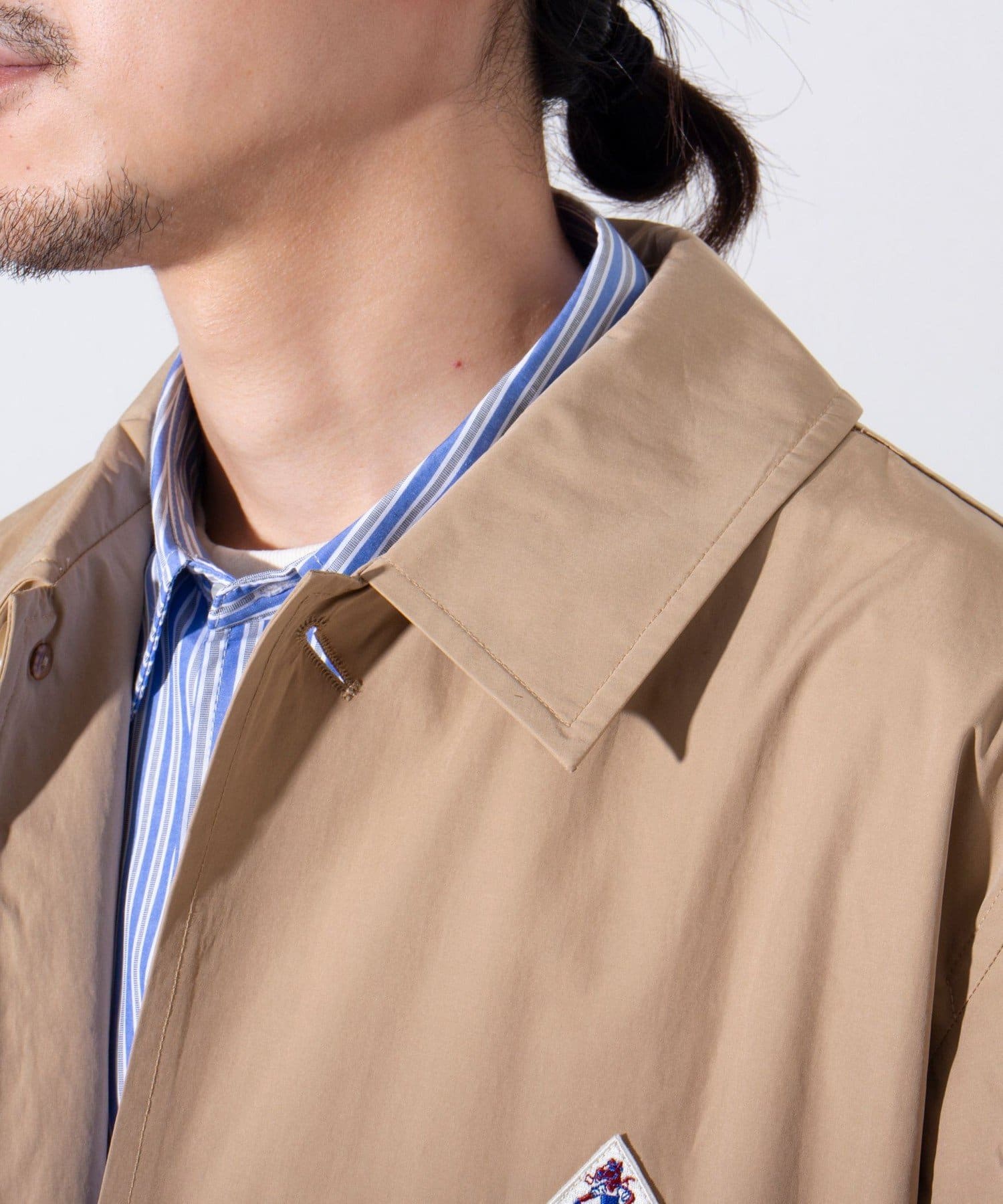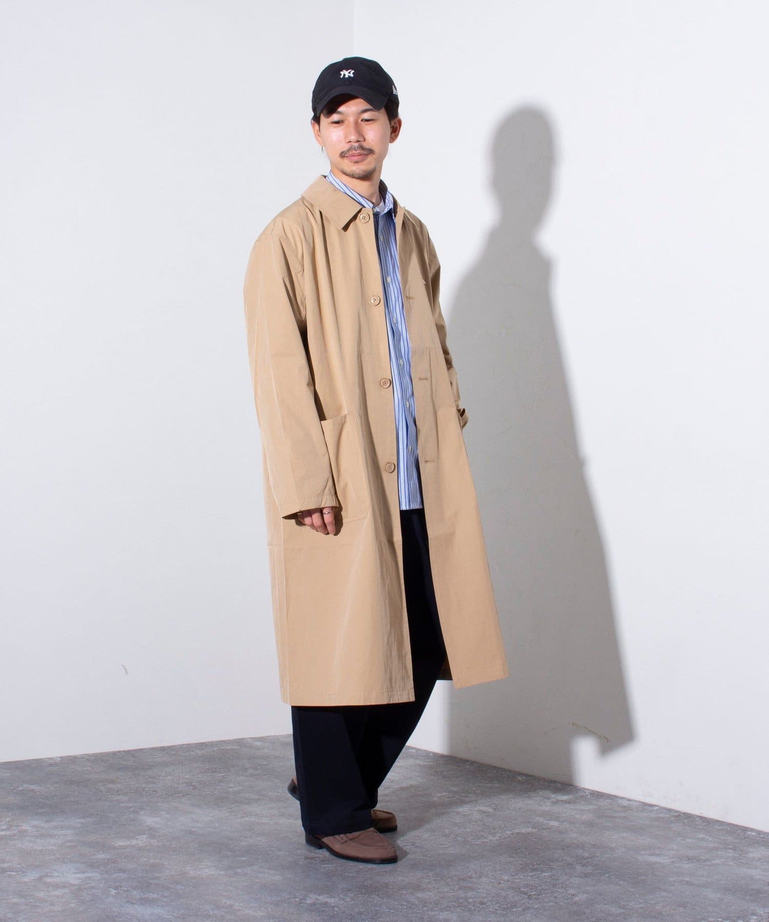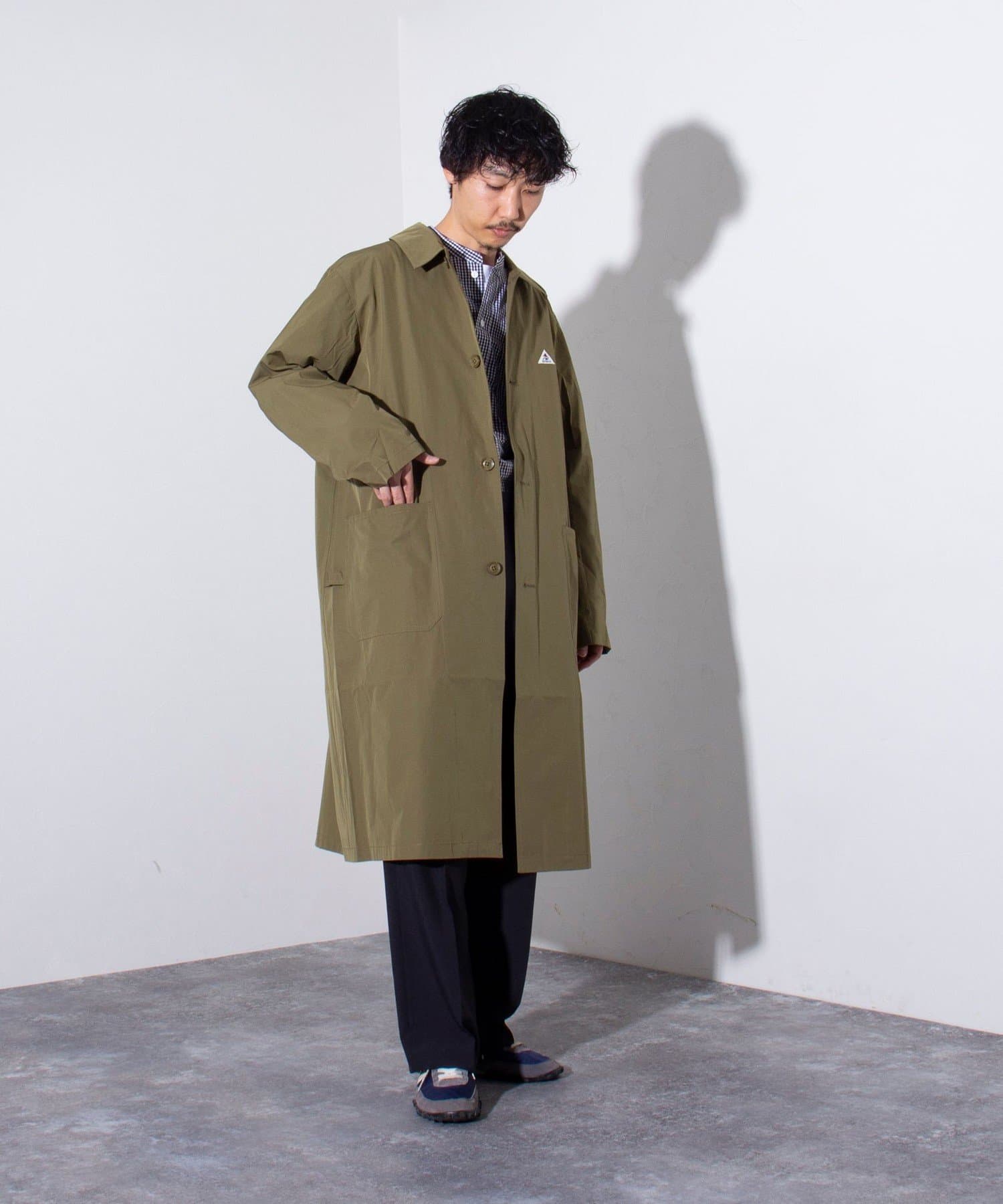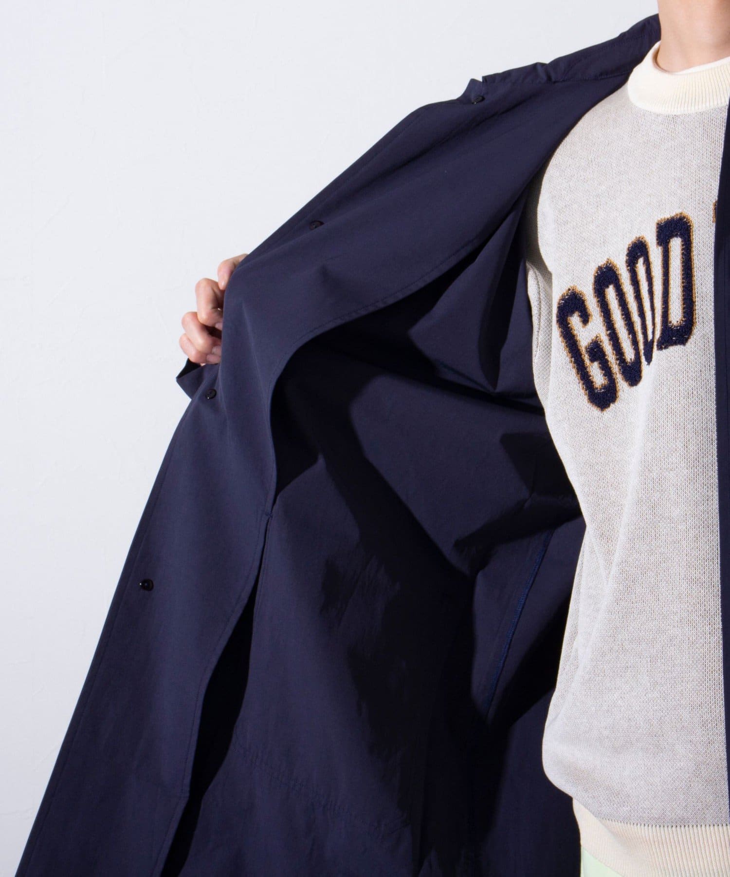 ポリエステル×コットン×ナイロンの高密度ウェザーを使ったステンカラーコート。