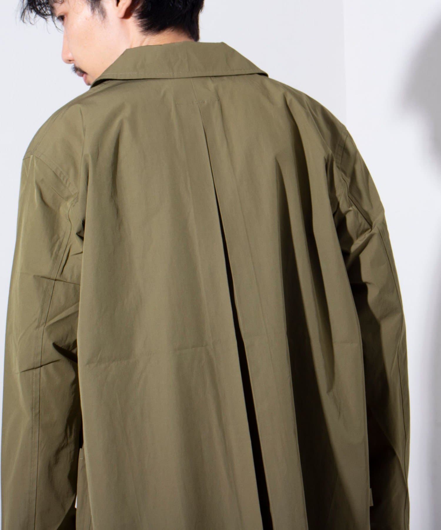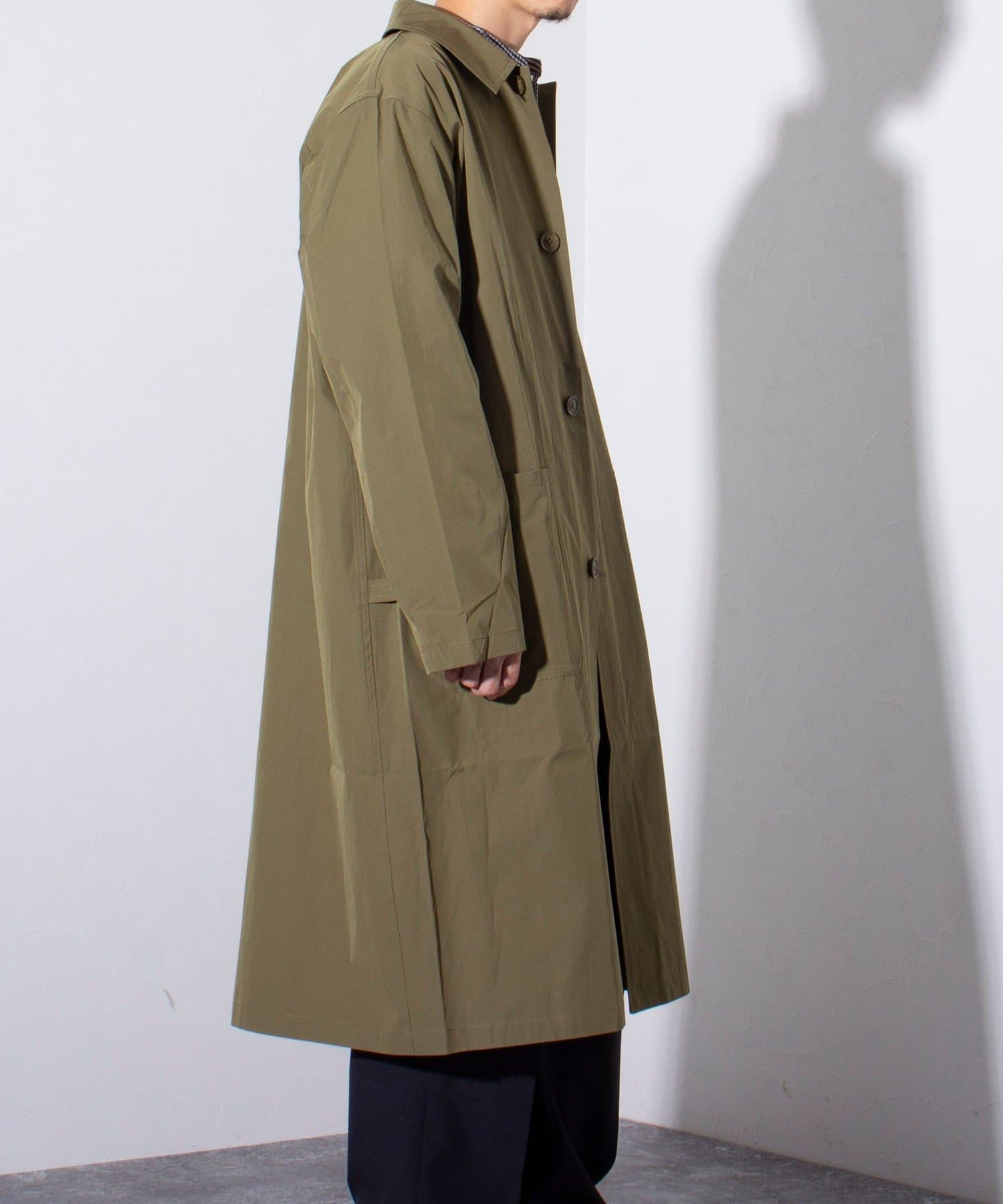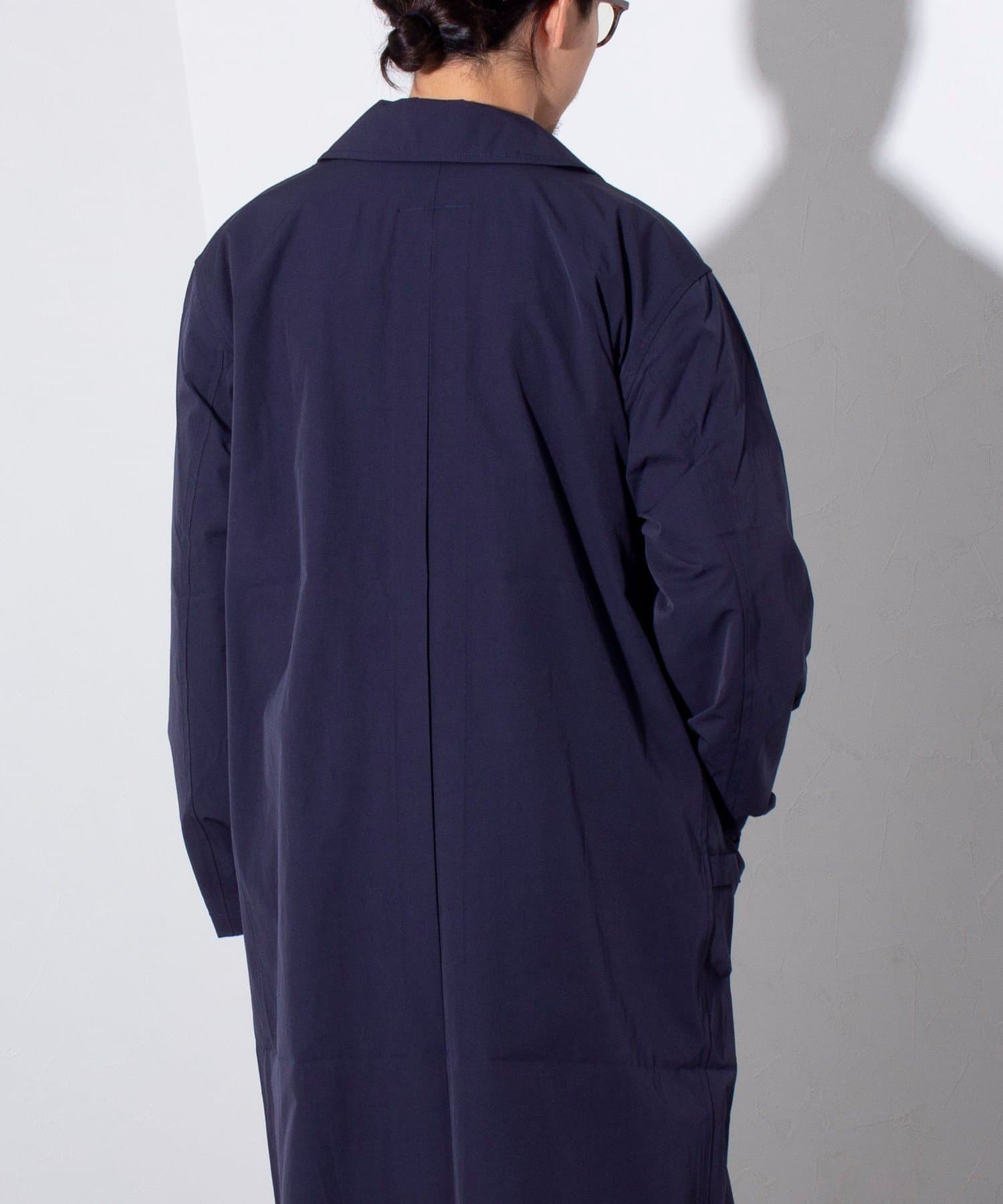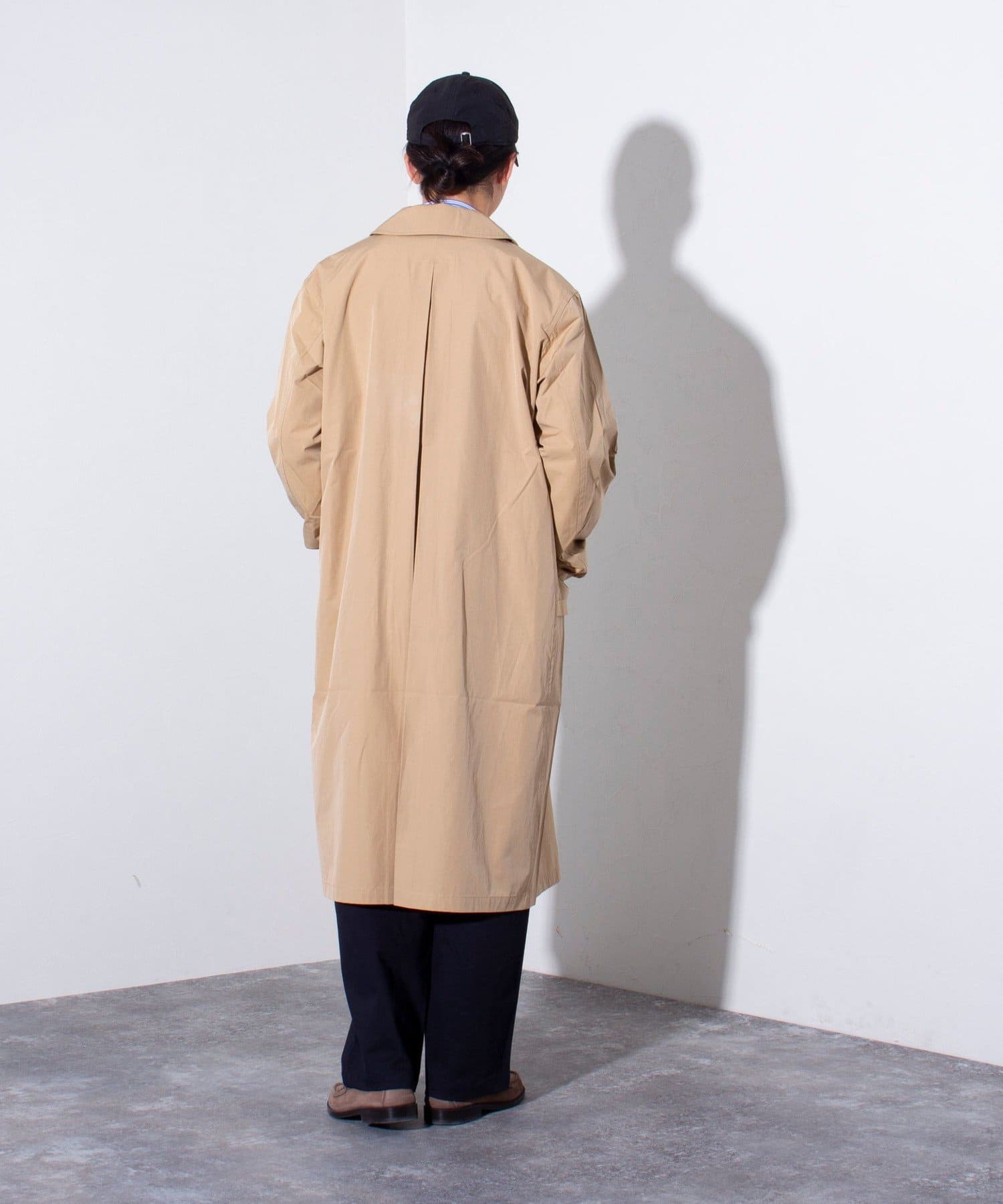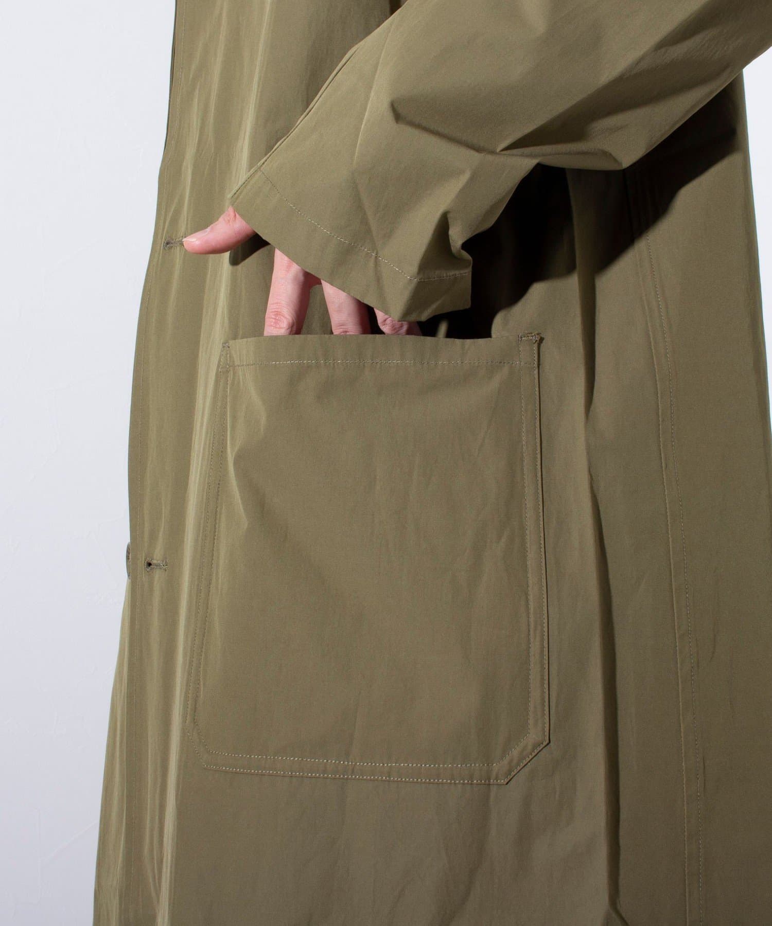 ポリエステル×コットン×ナイロンの高密度ウェザーを使ったステンカラーコート。
