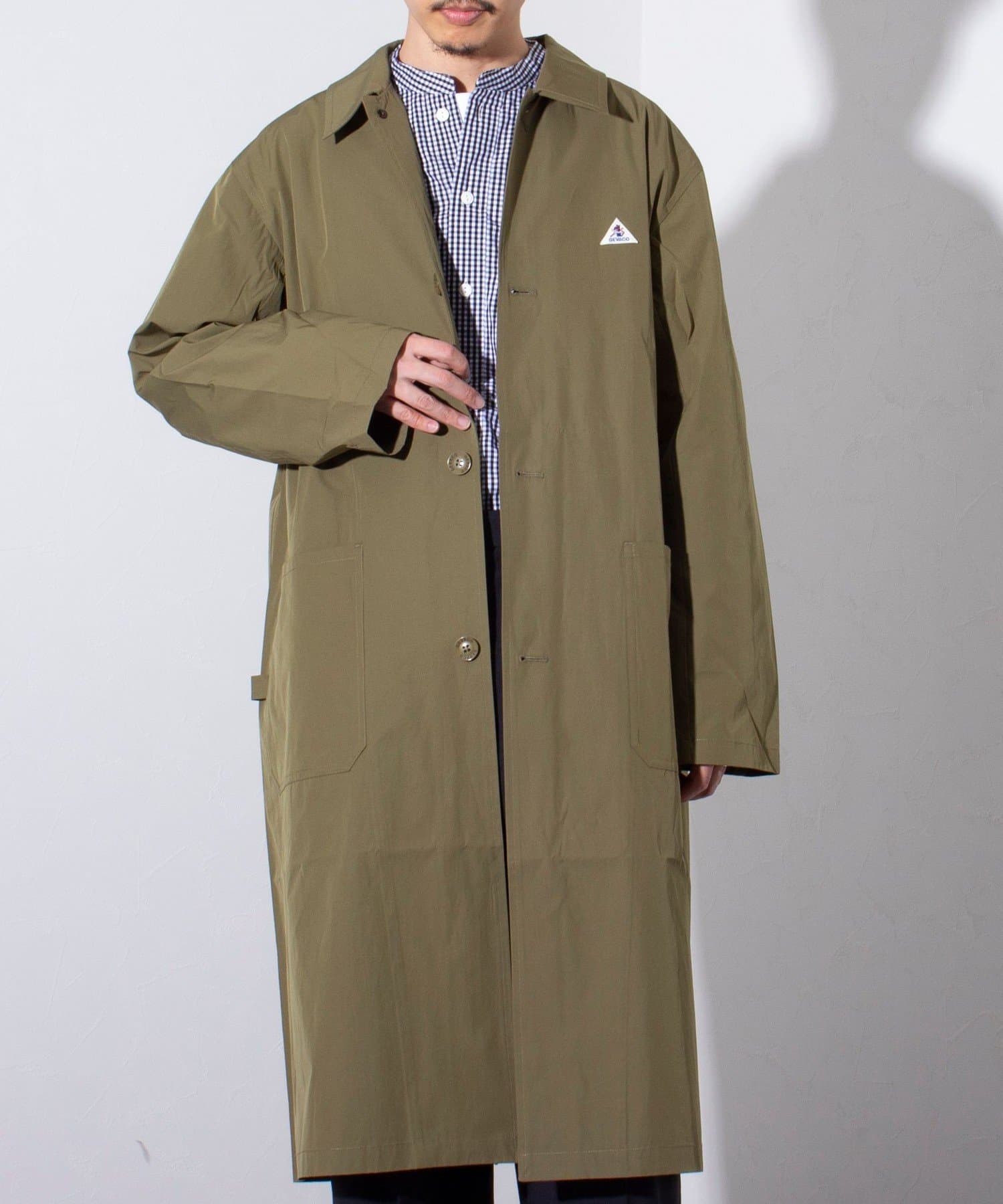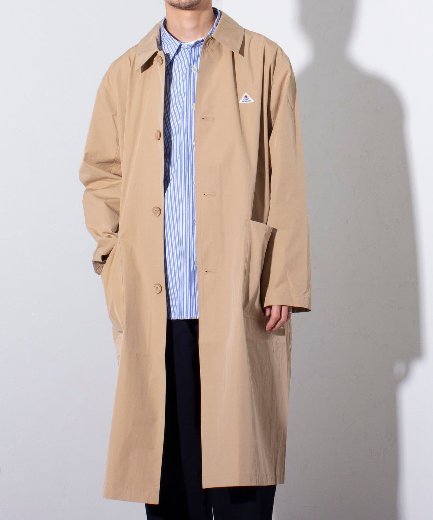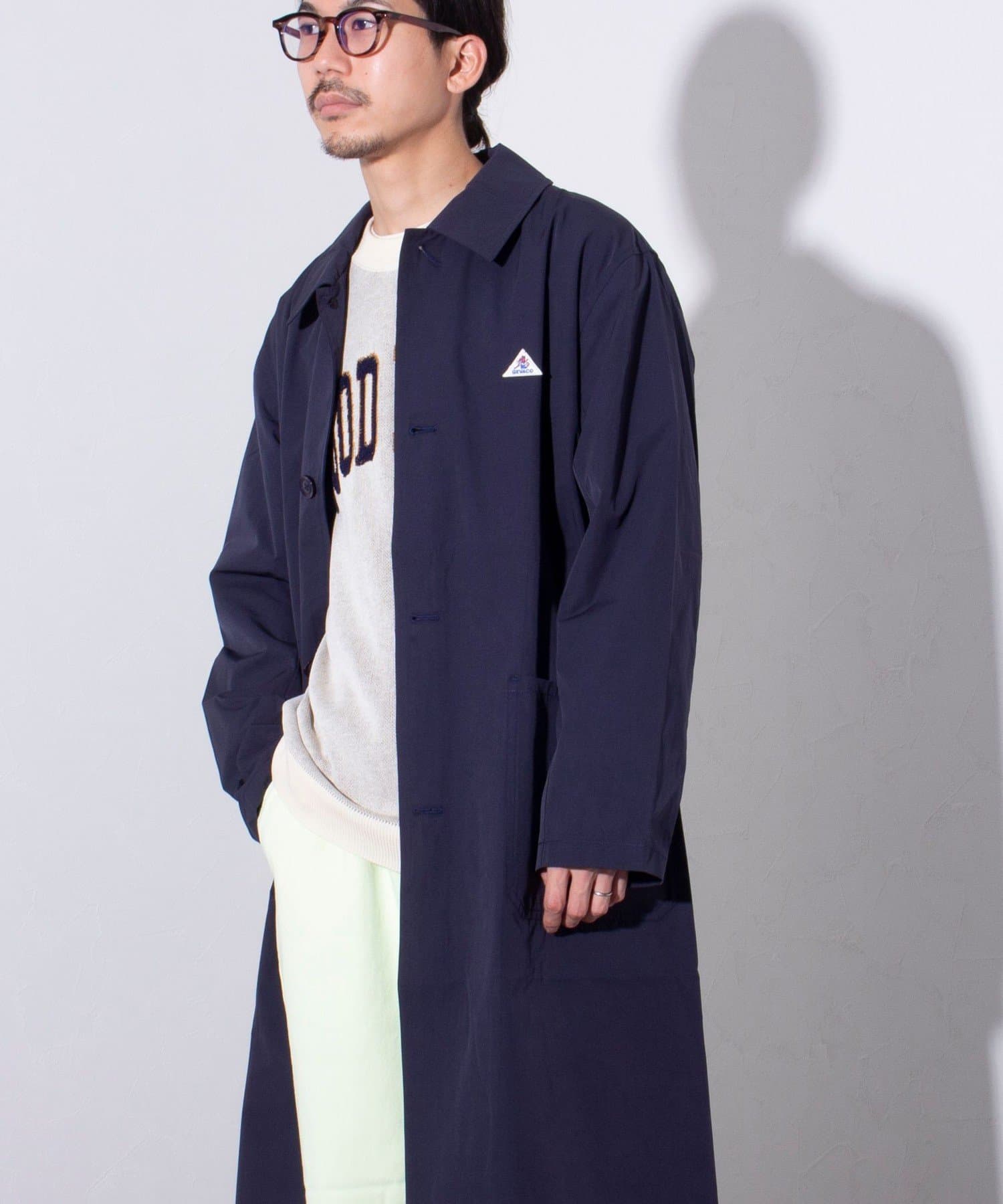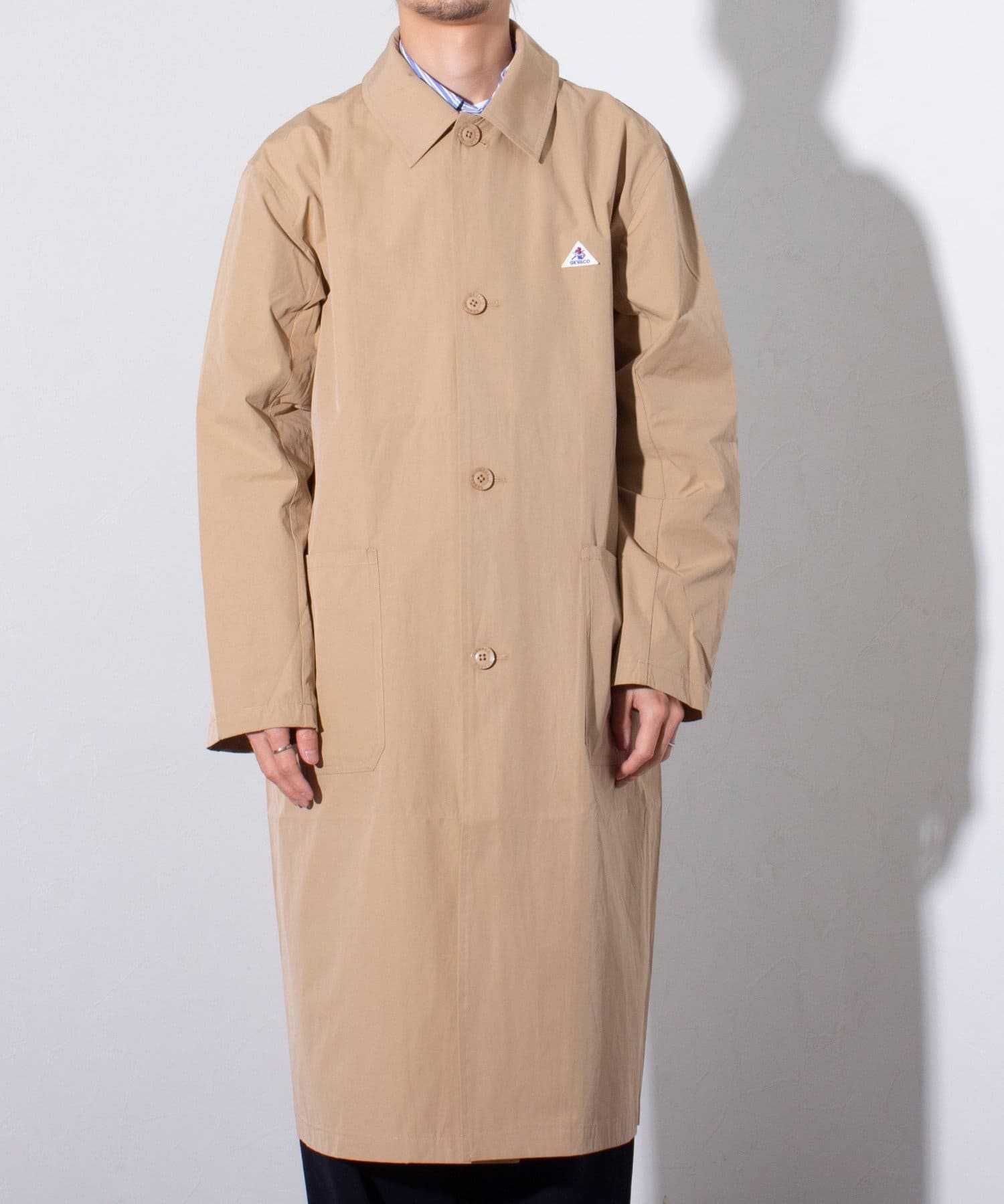 ポリエステル×コットン×ナイロンの高密度ウェザーを使ったステンカラーコート。