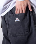 ヒップポケット部分にハンマーループと、アイコンのワッペンをたたきつけたデザインです。