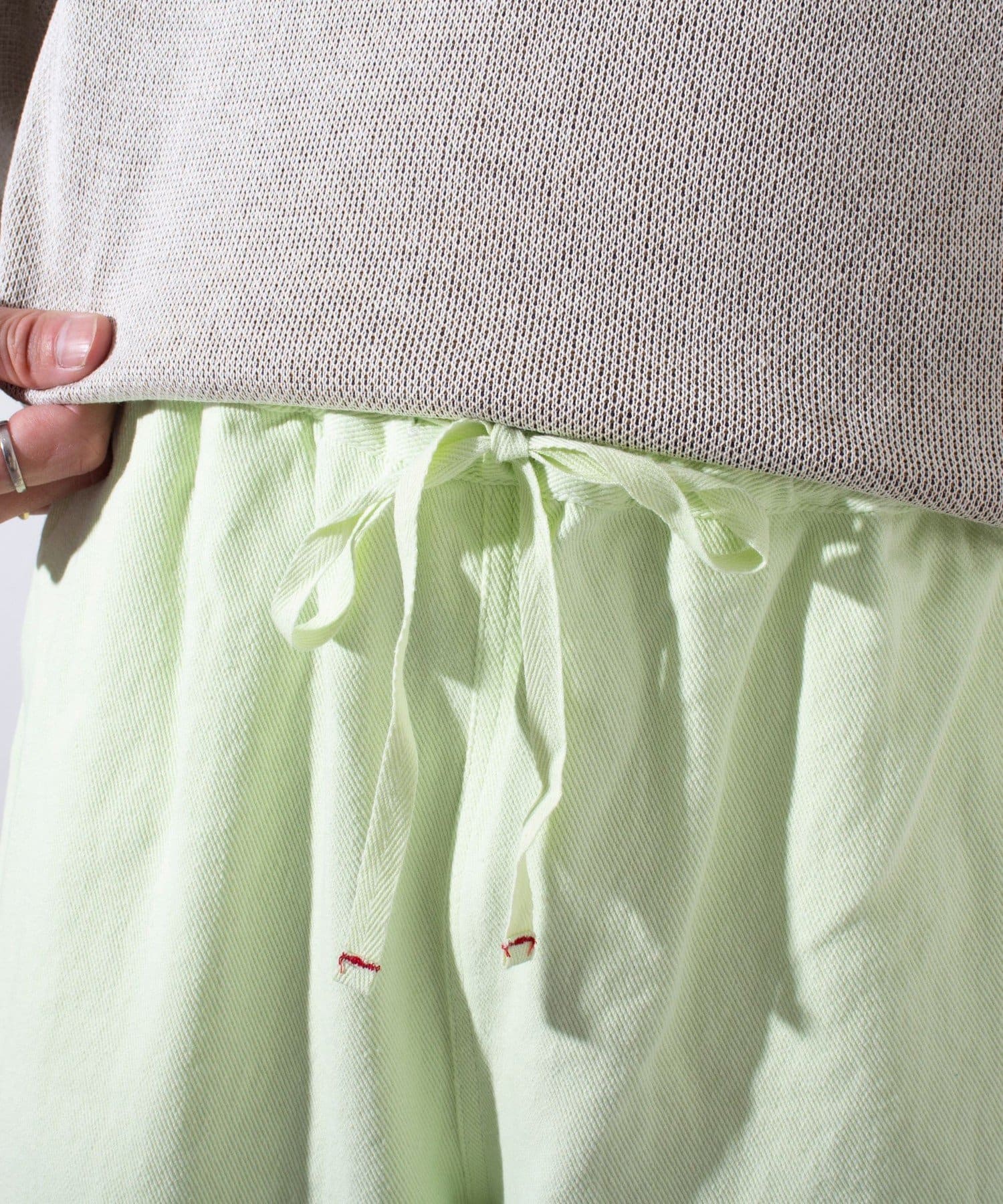 ゆったりと履けるワイドシルエットでウエストをゴムのイージー仕様。