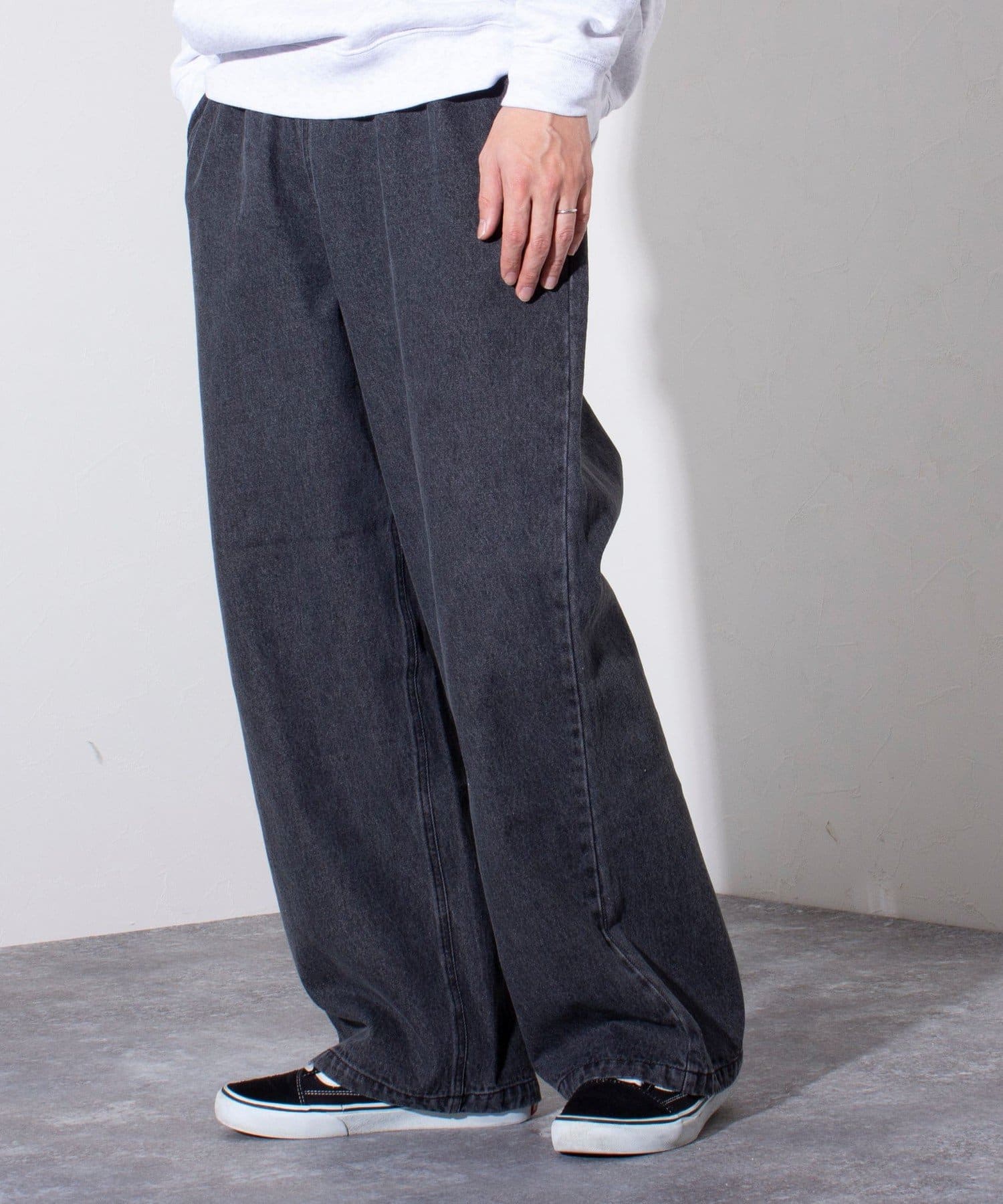 ワイドシルエットが目を惹くイージー仕様のデニムパンツ