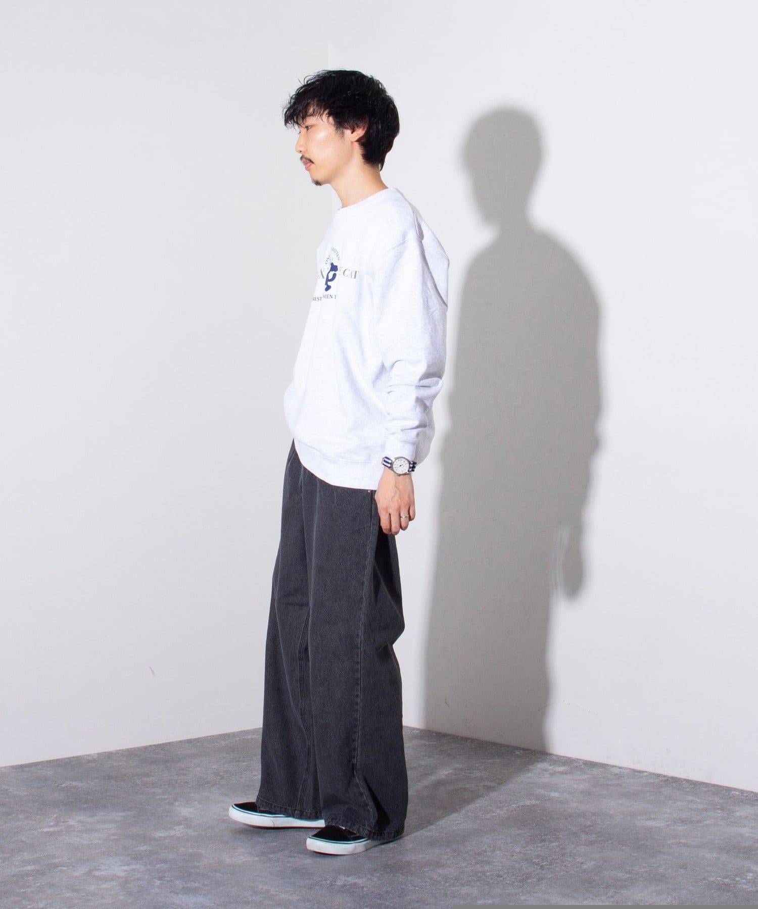 存在感のあるワイドシルエットでシンプルなシャツやTシャツと合わせても様になります。