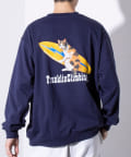 サーフィンをしている猫が可愛らしいカジュアルスウェット。