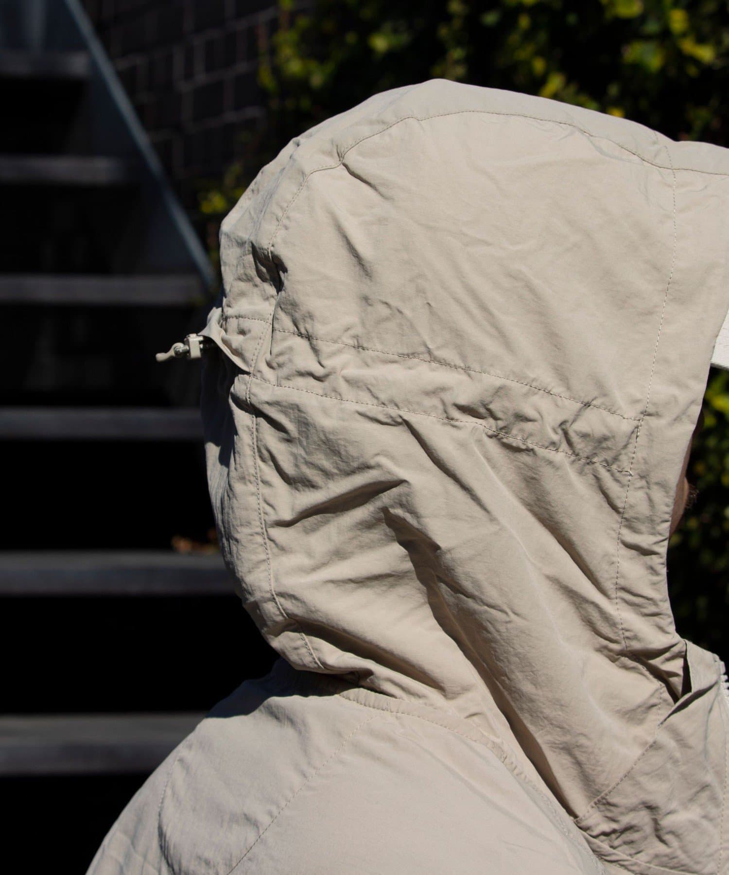 フード部分にもドローコードが入っているので立体的な立ち上がりに◎