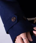 チンストラップ付きで、スタンドカラーコートとしても着用可能な2WAYデザイン。