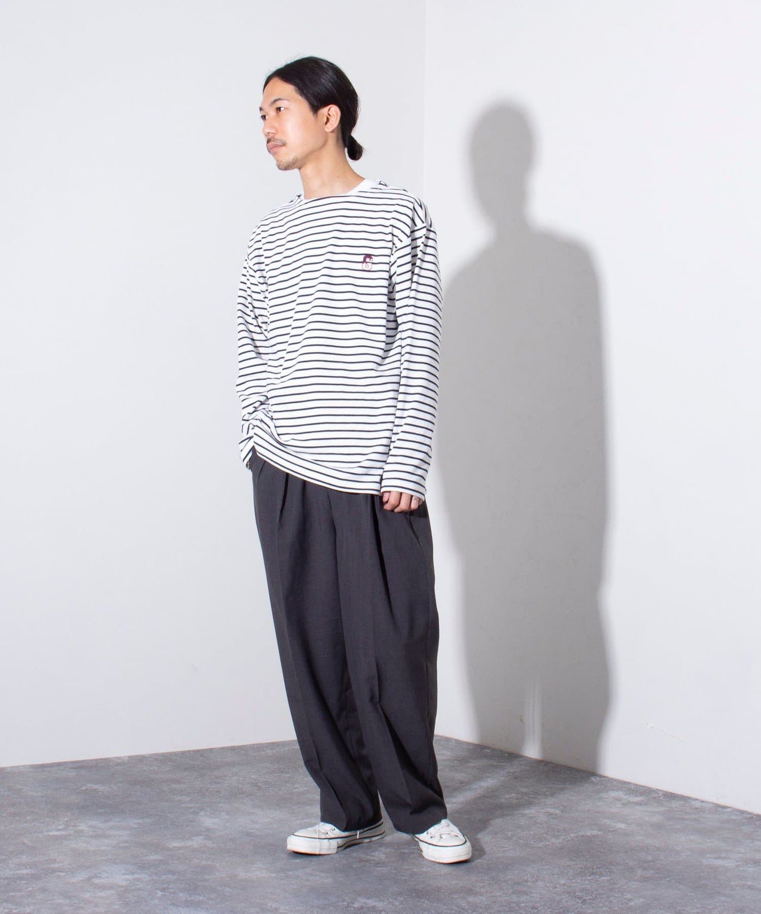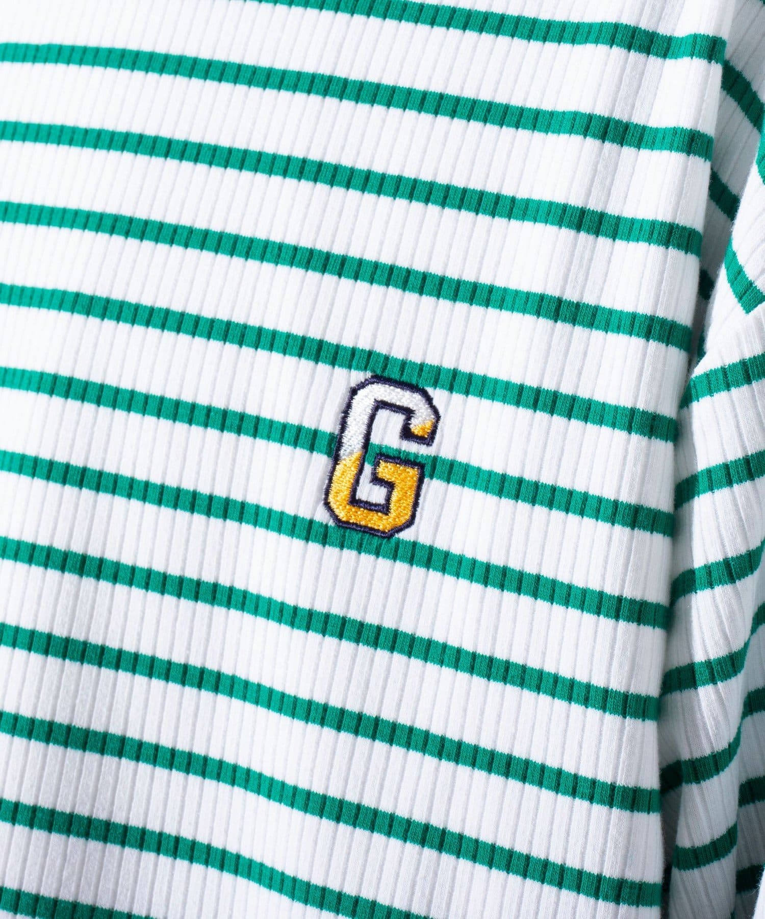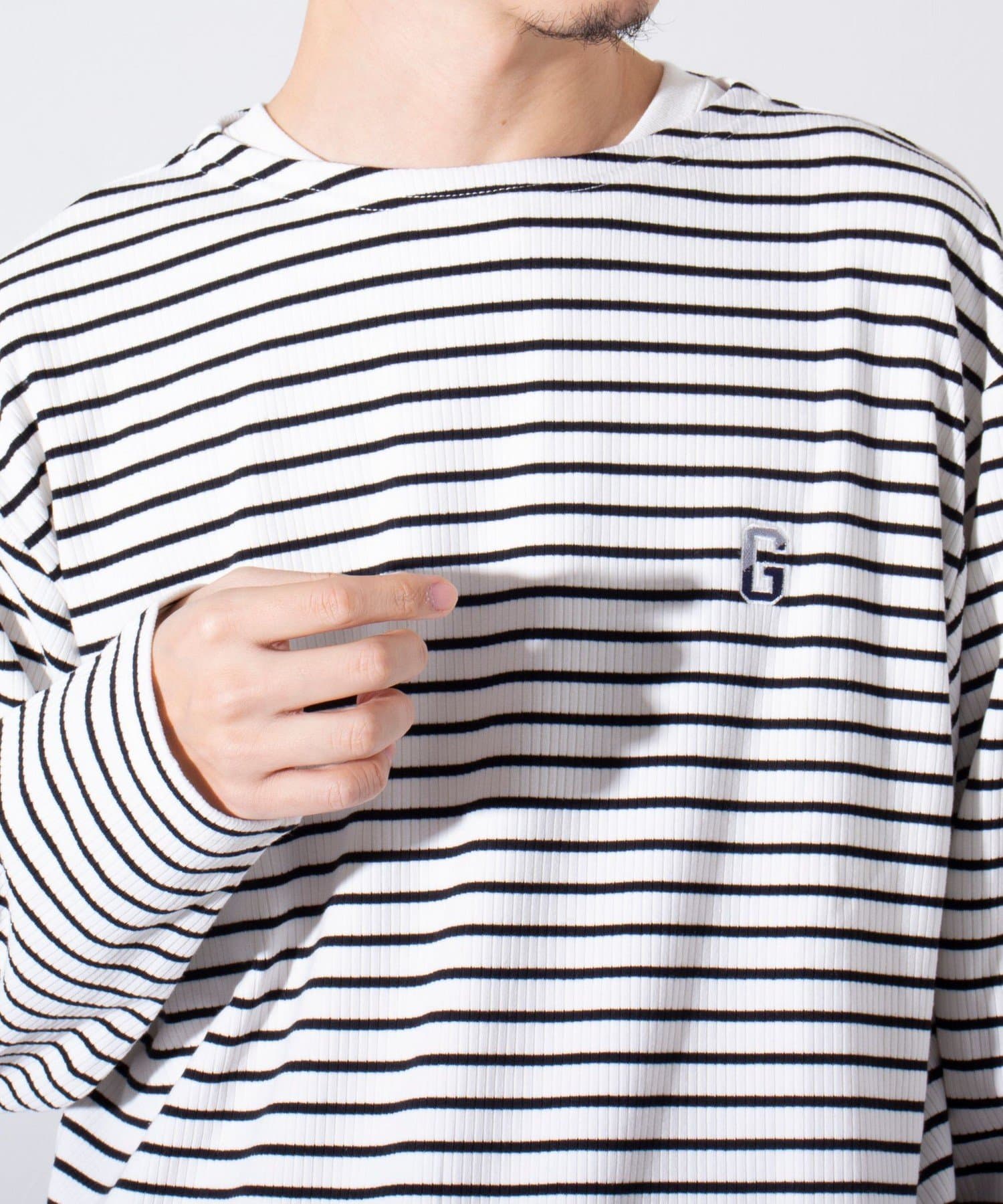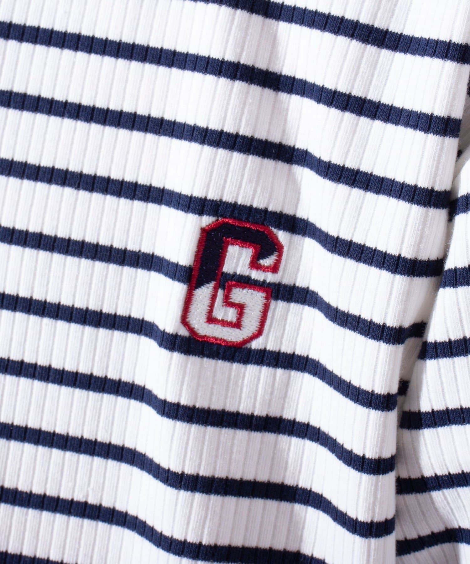 【GLOSTER】リブボーダーロンT ワンポイント刺繍 ボートネック