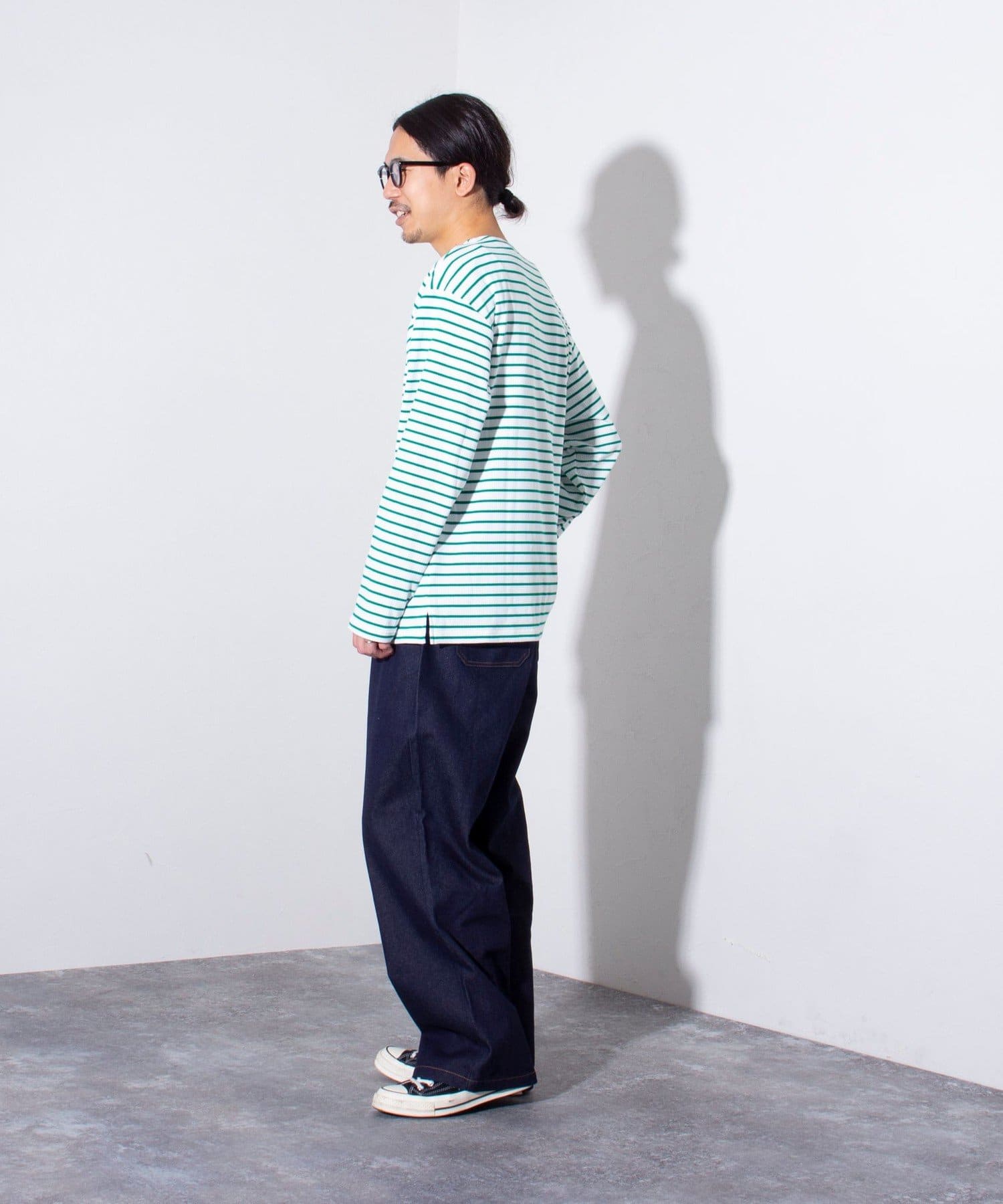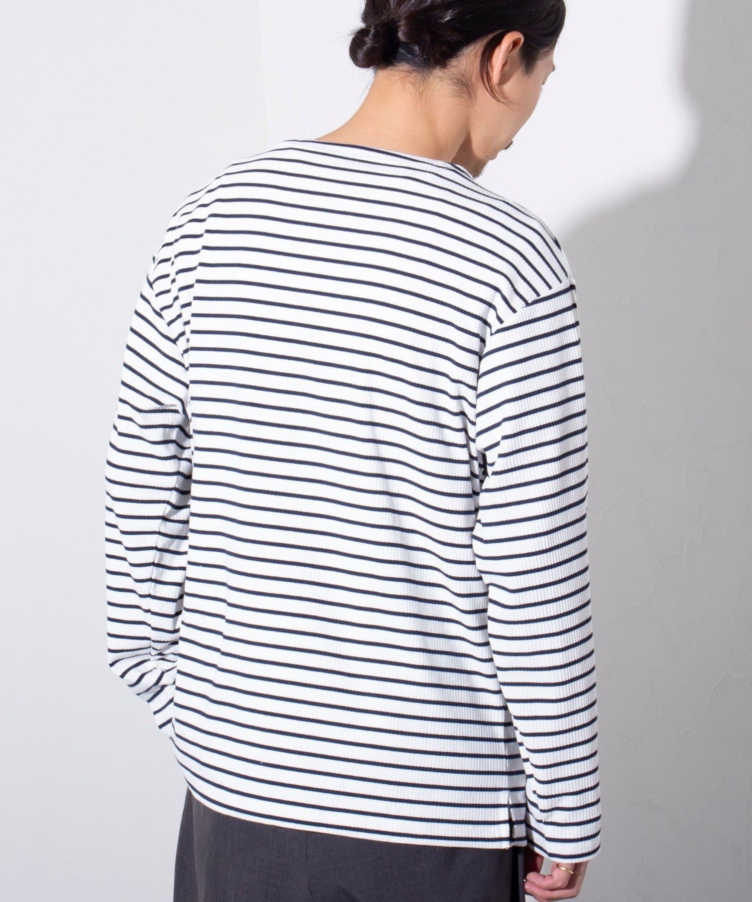 定番のボーダー長袖Tシャツをリブ仕様を採用し、抜群の着心地にアップデート。