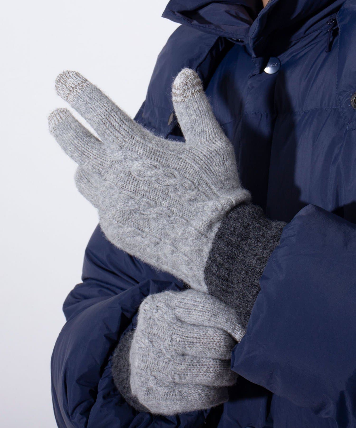 オーストラリア南部のタスマニア島で育てられているオーストラリア羊毛のうちわずか3%しかとれない希少性の高いタスマニアウールを使用した人気定番のケーブル編ニットグローブ。