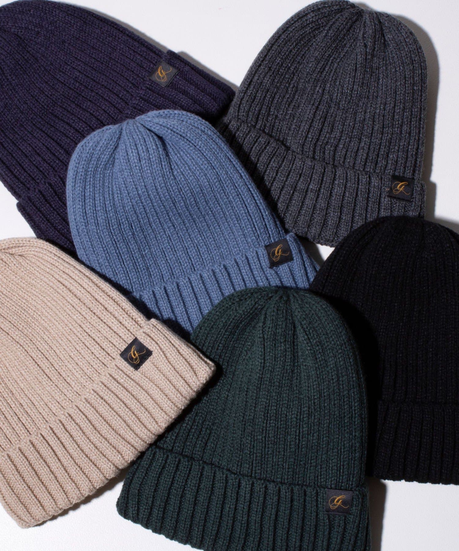 【GLOSTER】リブ編み 裏ボア ニットワッチ ニット帽