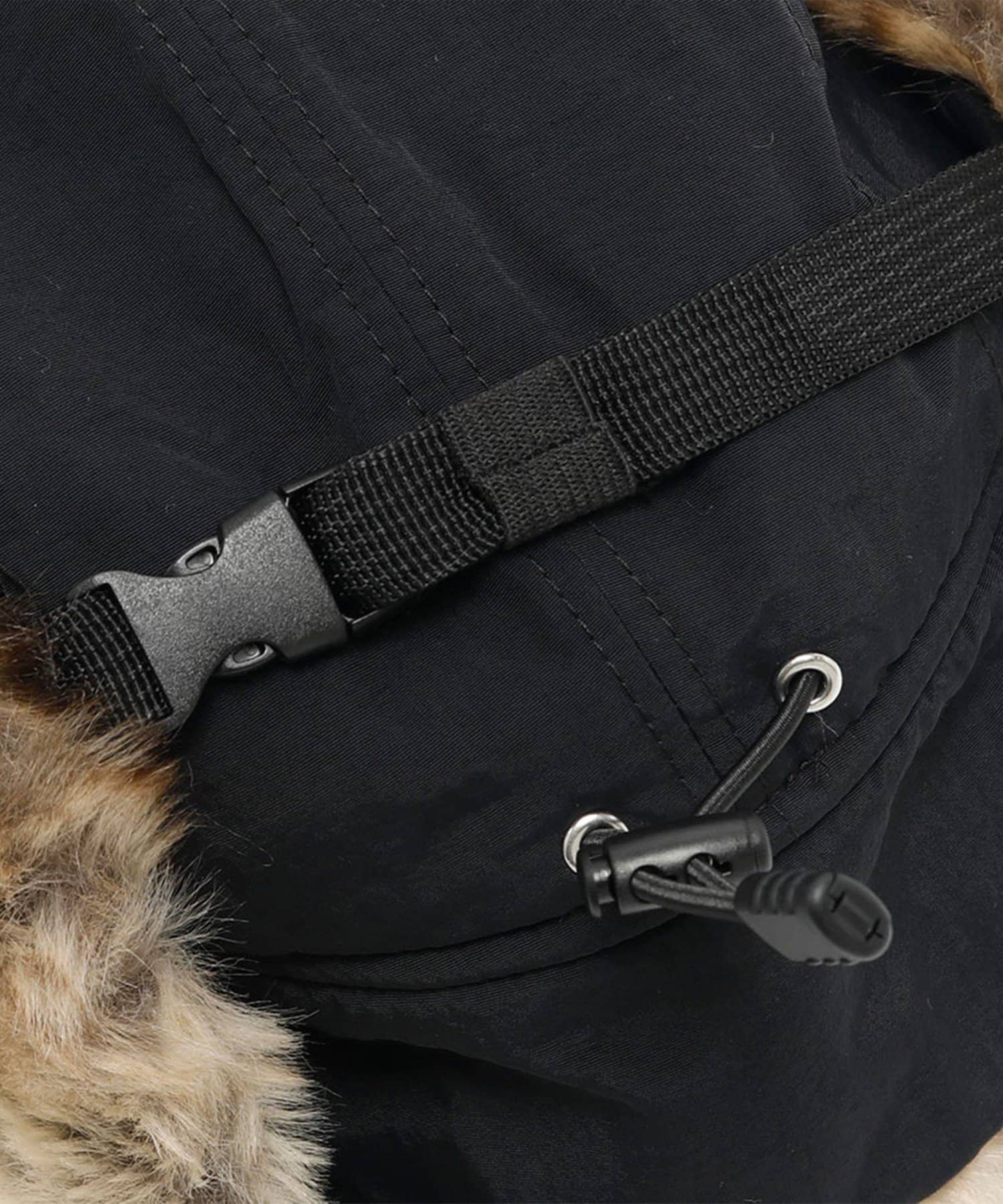 耳あての外側にはアジャスターバックルを収納できるポケットを追加し、耳当てを下げた時にバックルが顔に当たらないように配慮されています。