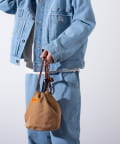 老舗ワークウェアブランド“ユニバーサルオーバーオール”の巾着ショルダーバッグ。