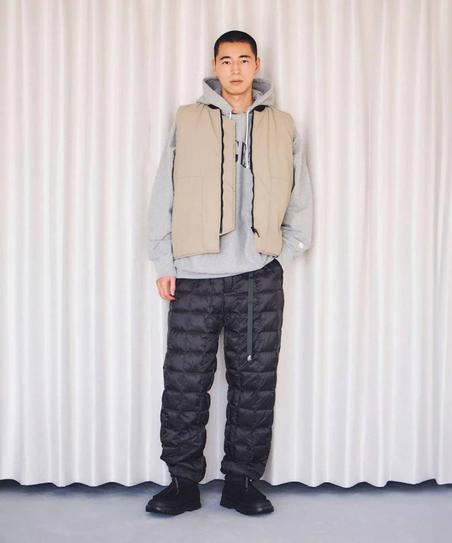 YKKアクアガード止水ファスナーや多様な素材をミックスし、テクニカルな雰囲気を持たせたデザインは、都会の洗練されたスタイルにマッチします。