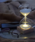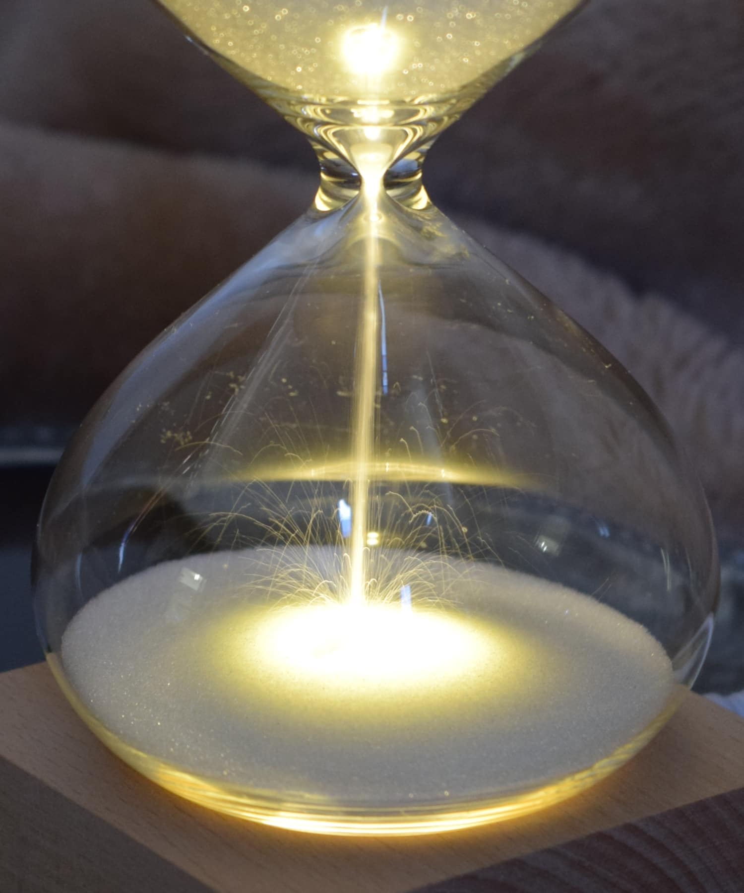 薄暗い部屋では天然木からあたたかなオレンジ色のライトを照らせば、たちまち幻想的なムードになります。砂時計としてだけでなく、インテリアオブジェ、間接照明と違った目的でもお使い頂けます。