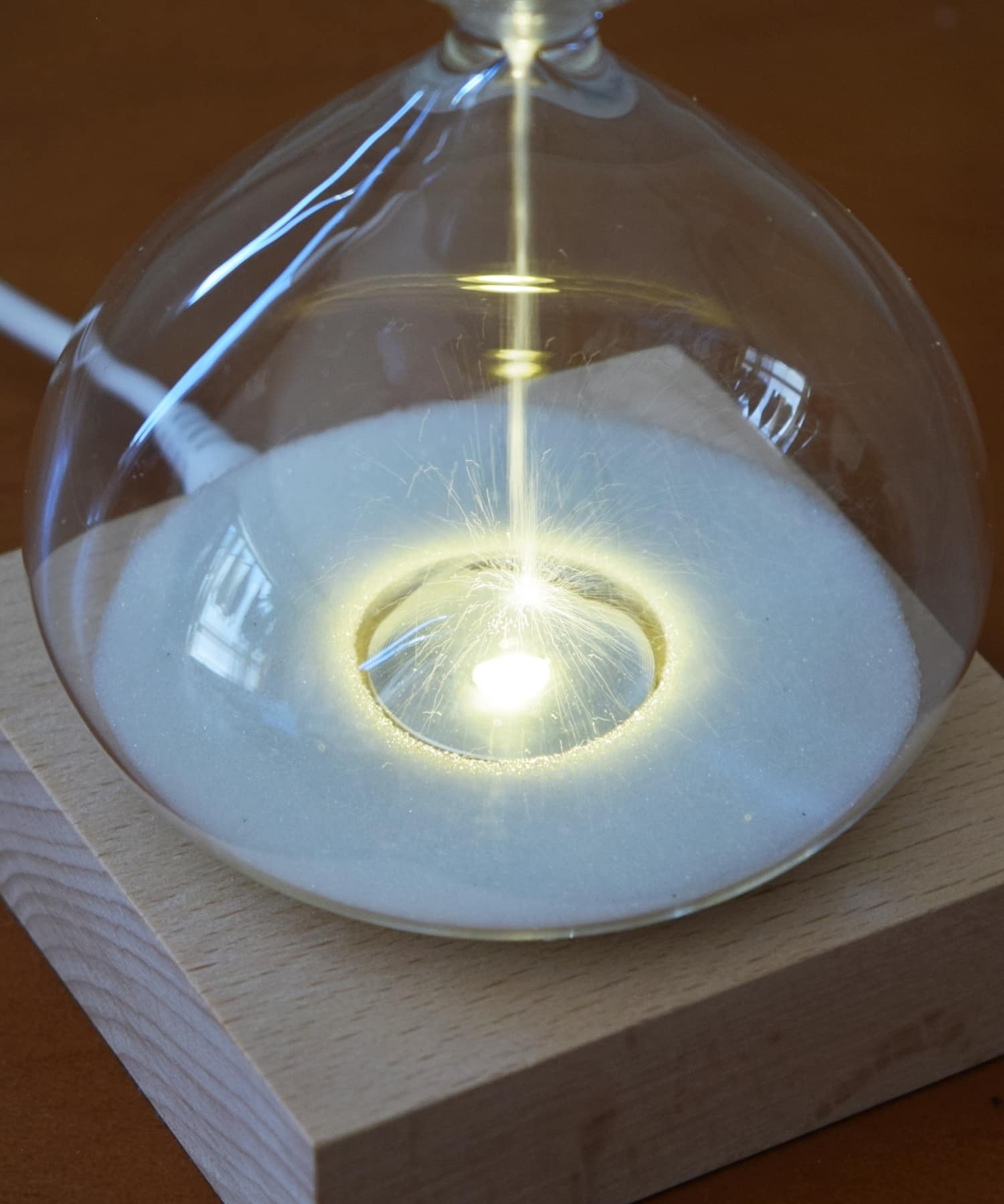 時間の経過で光が変化する、幻想的な砂時計