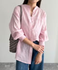 ・バンドカラーが顔周りをすっきり見せてくれ、レイヤードスタイルにも使いやすいデザインです