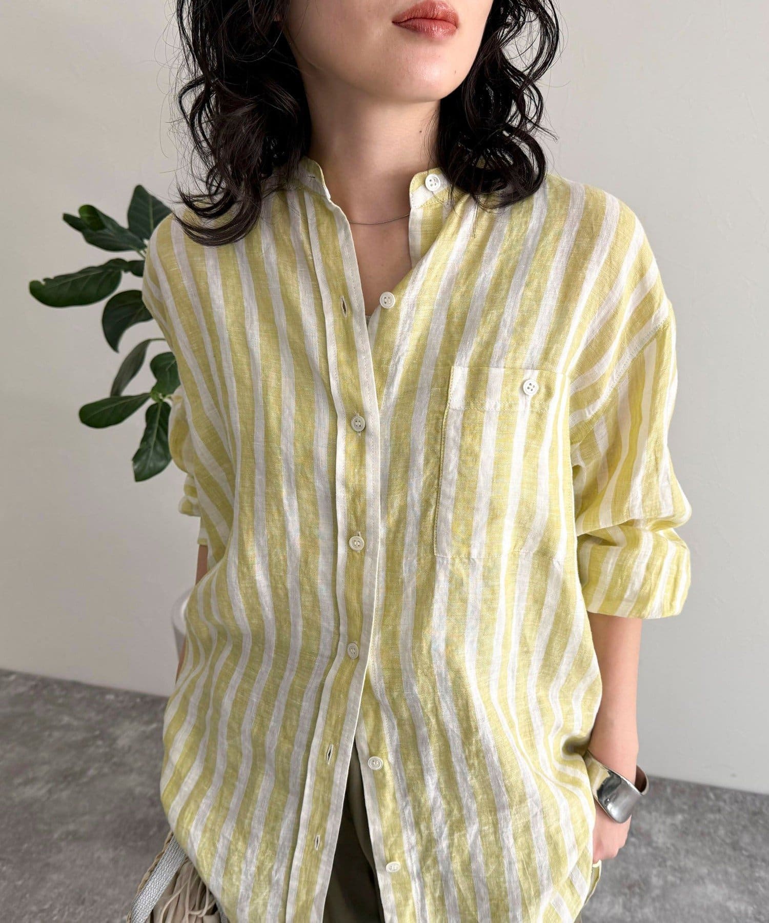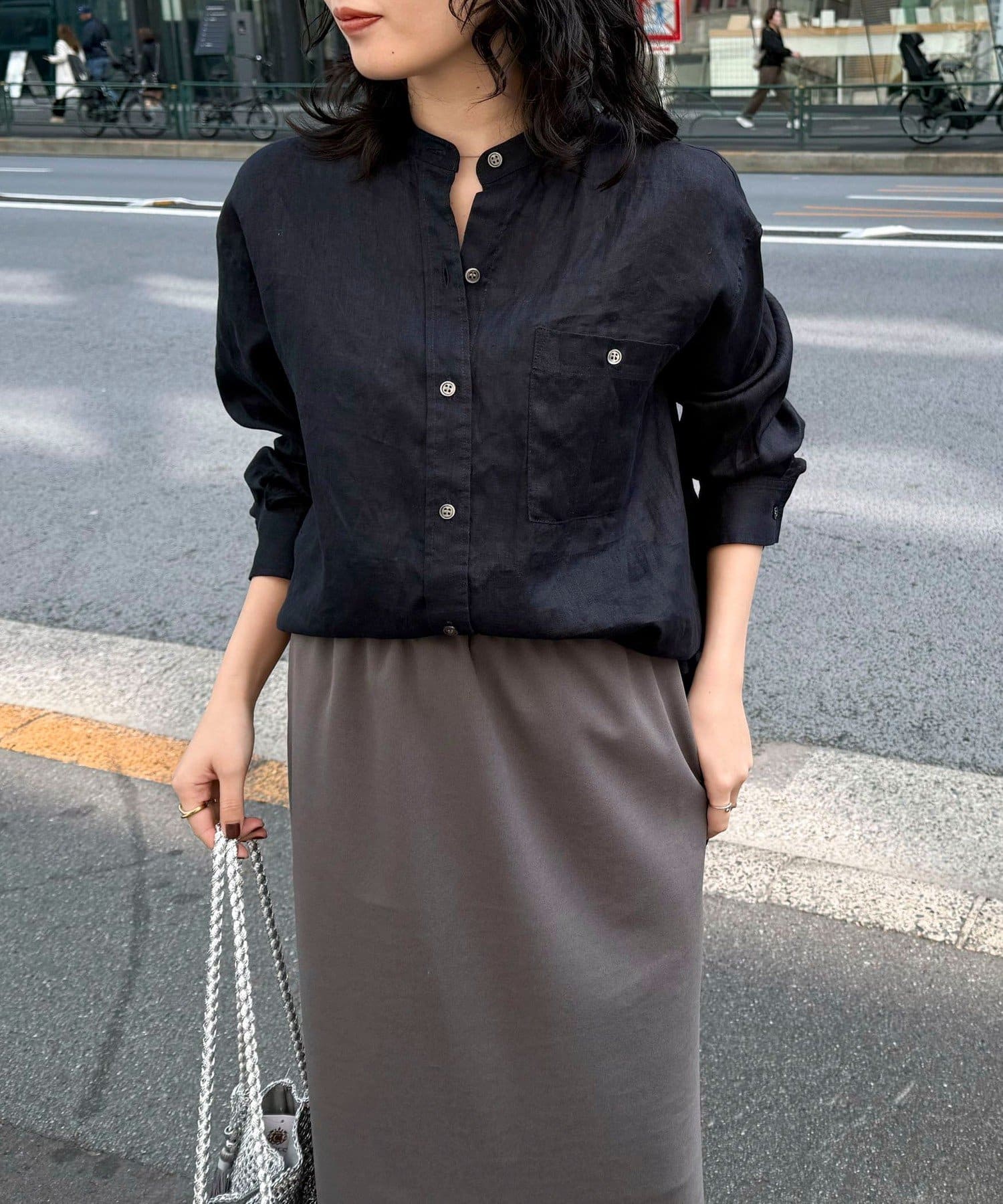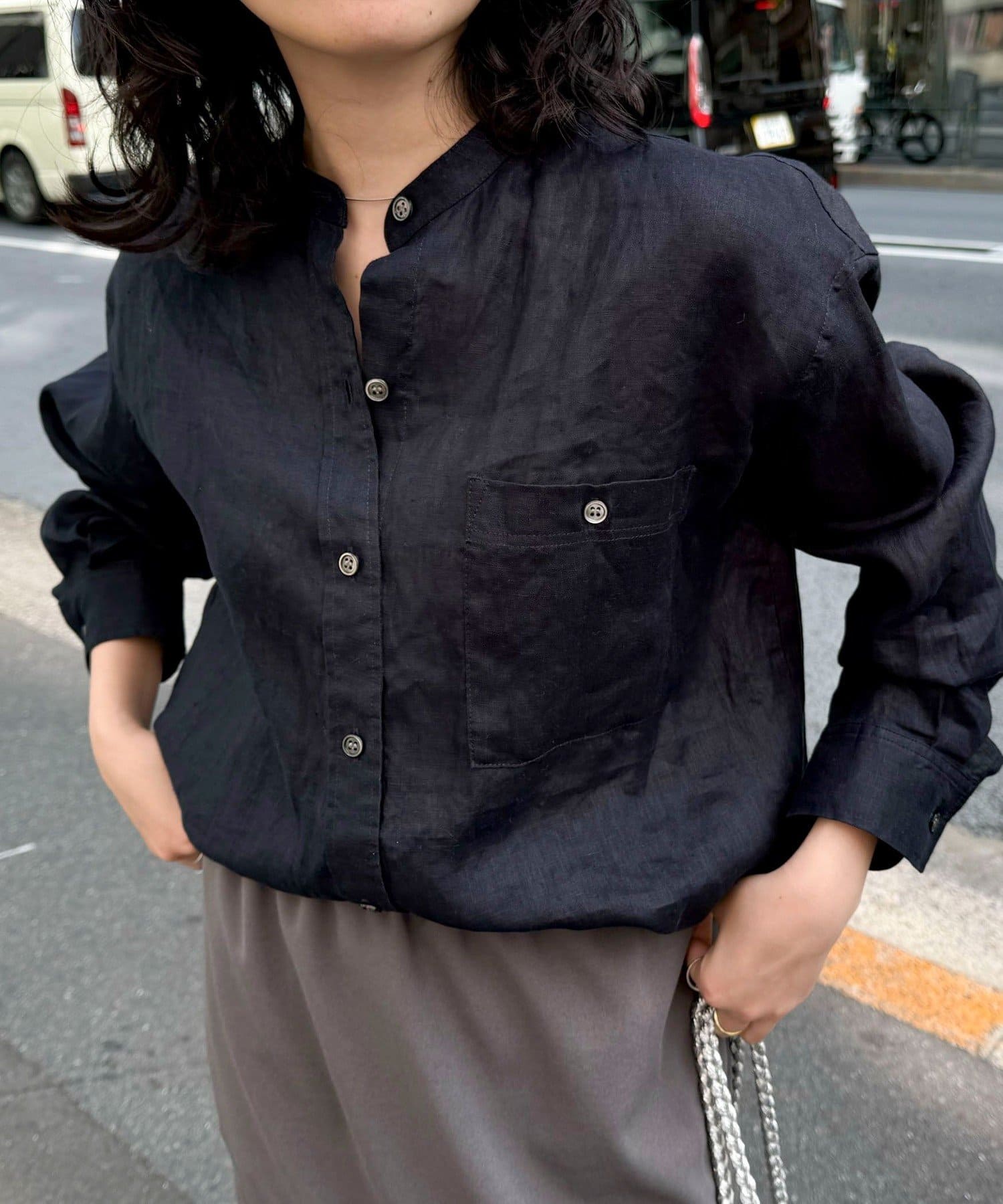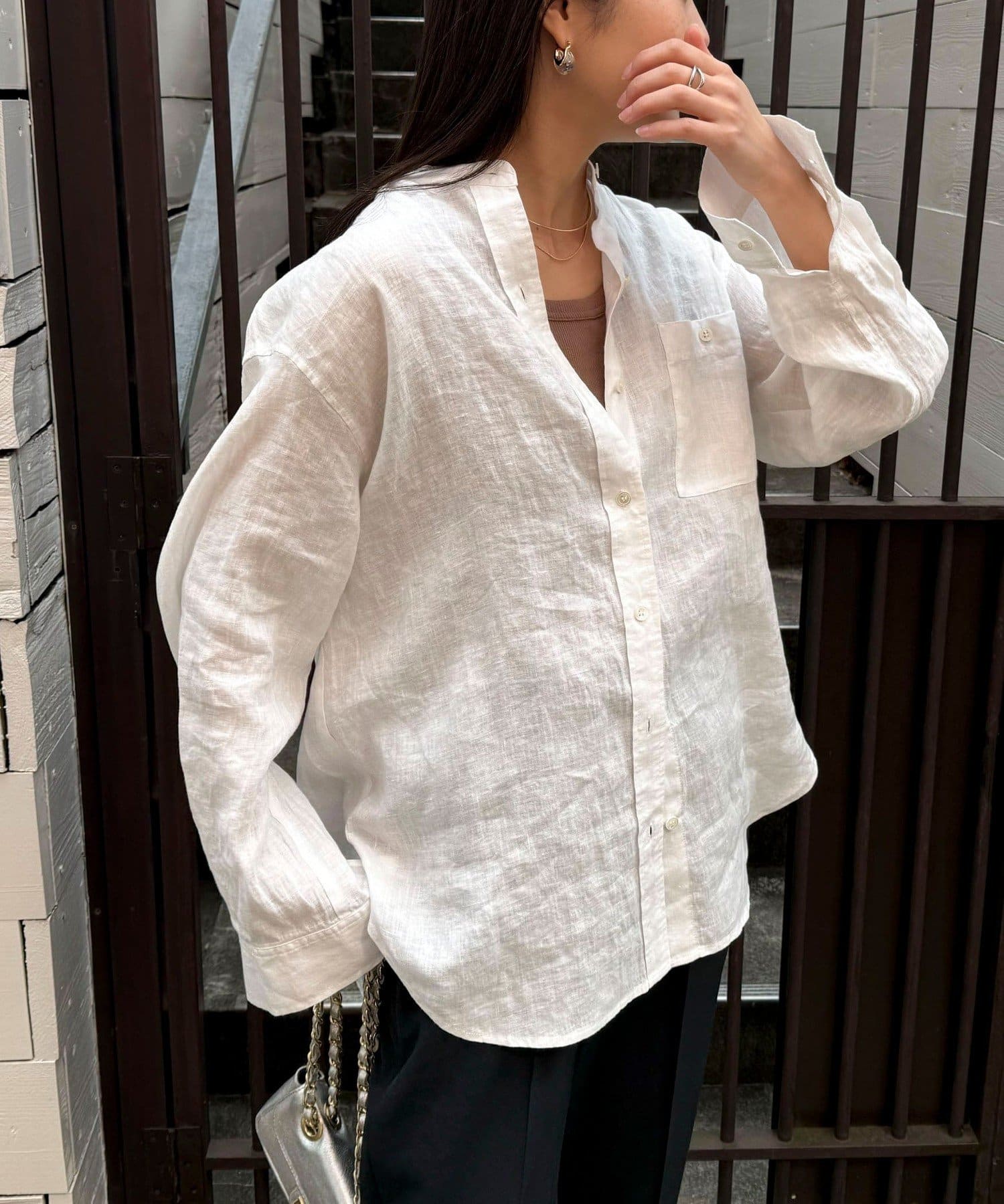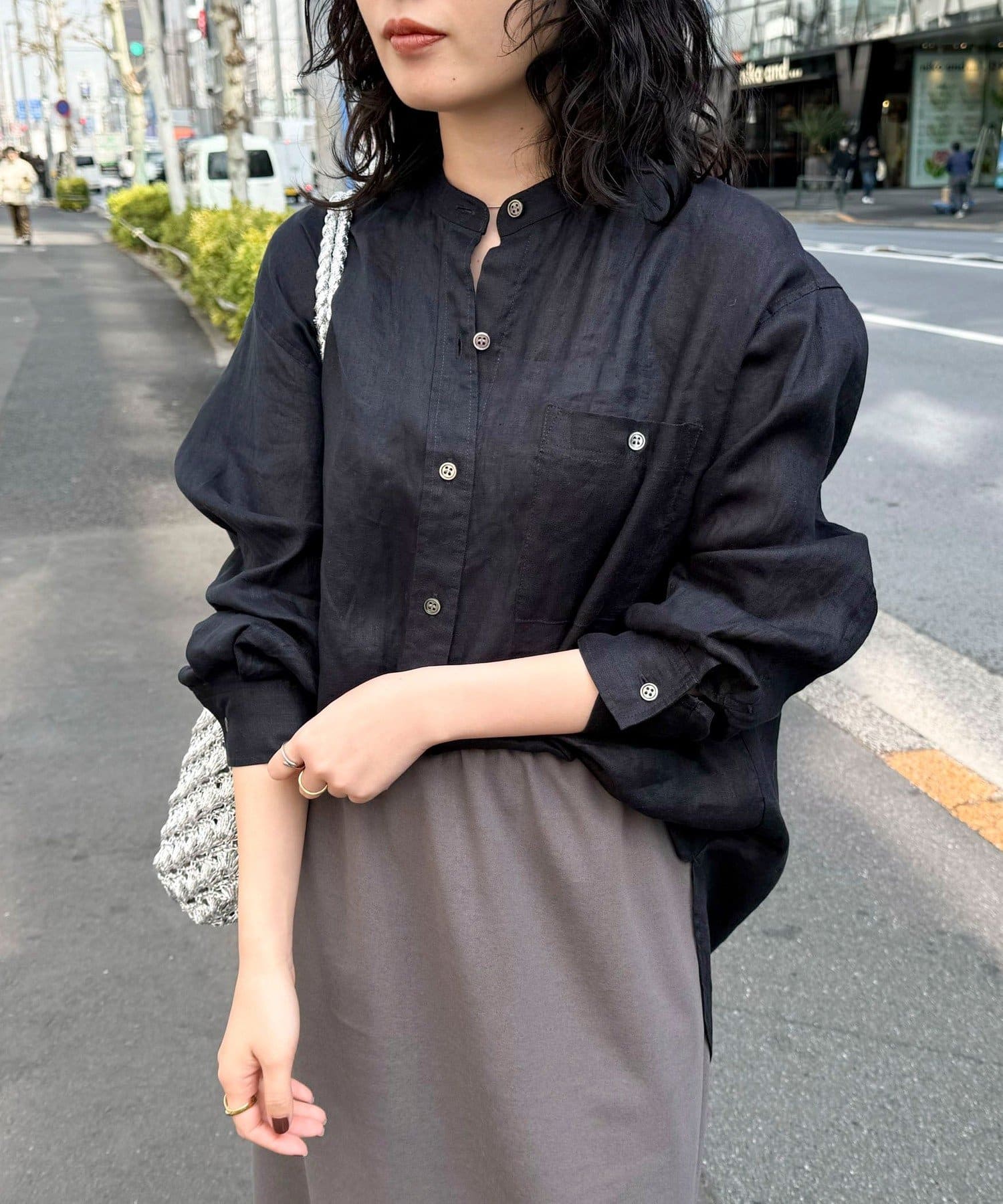 ラフな印象に見せてくれるリネンバンドカラーシャツ