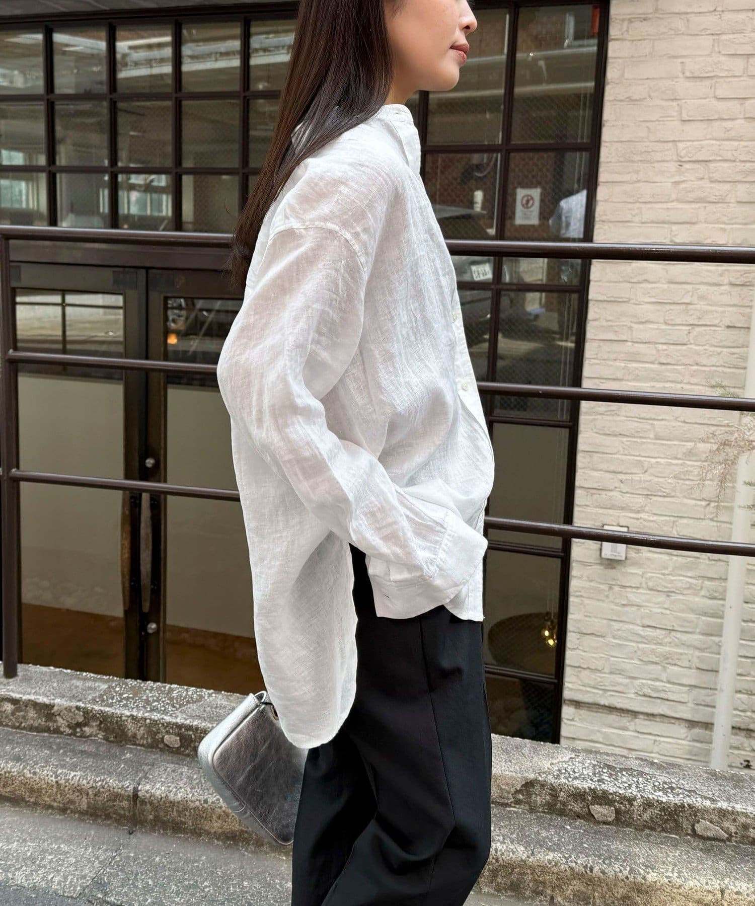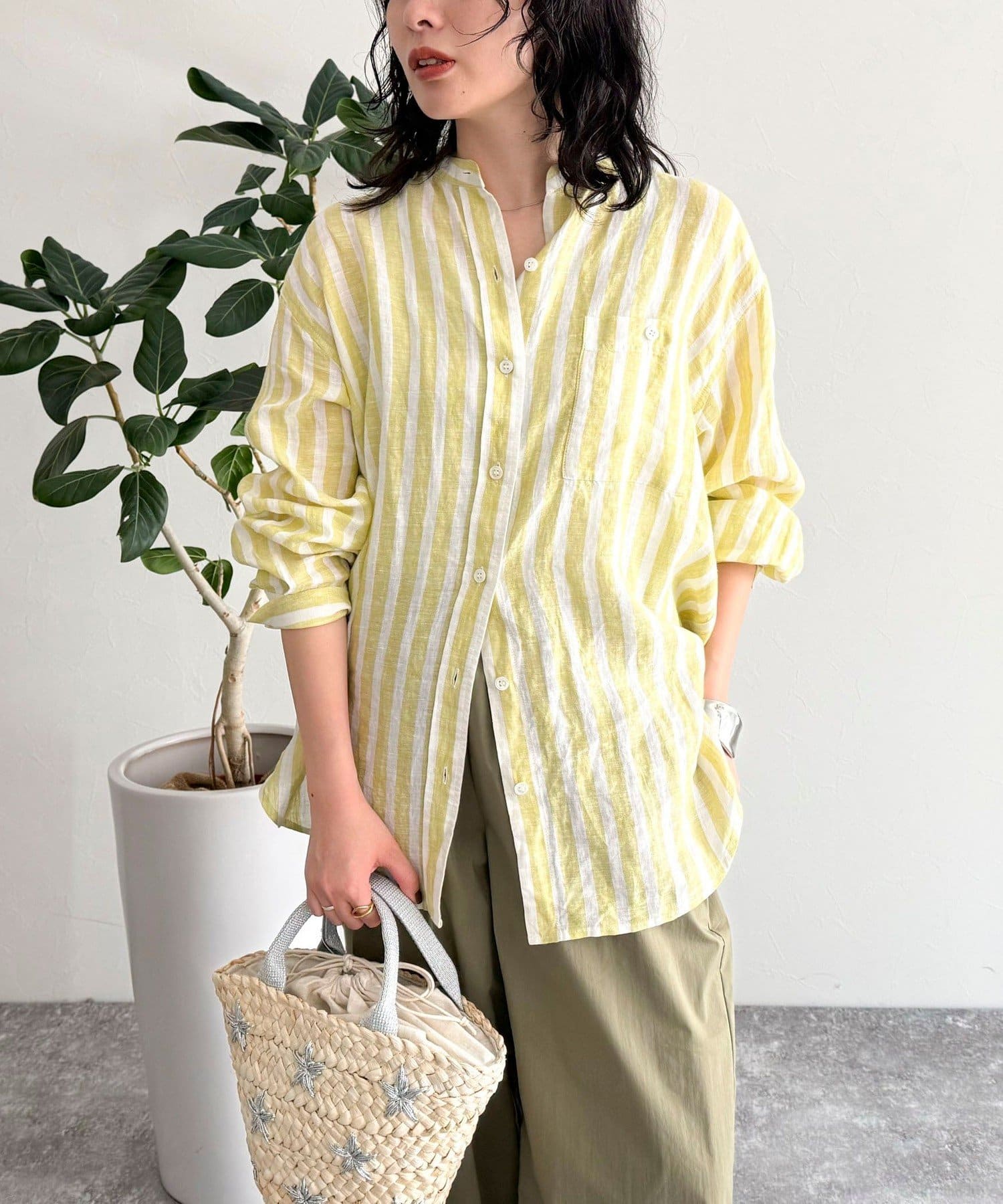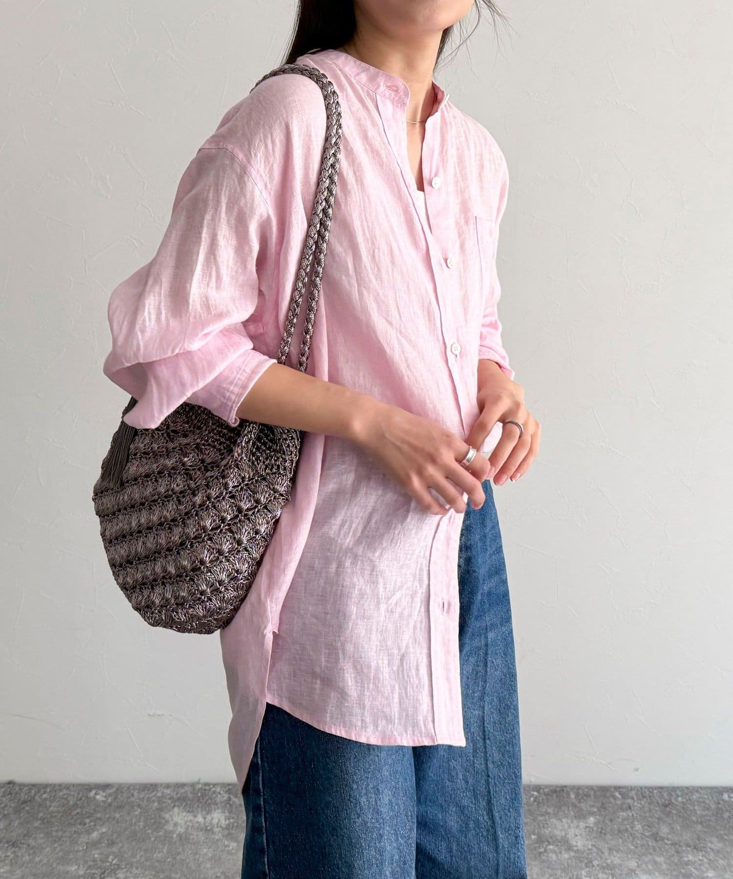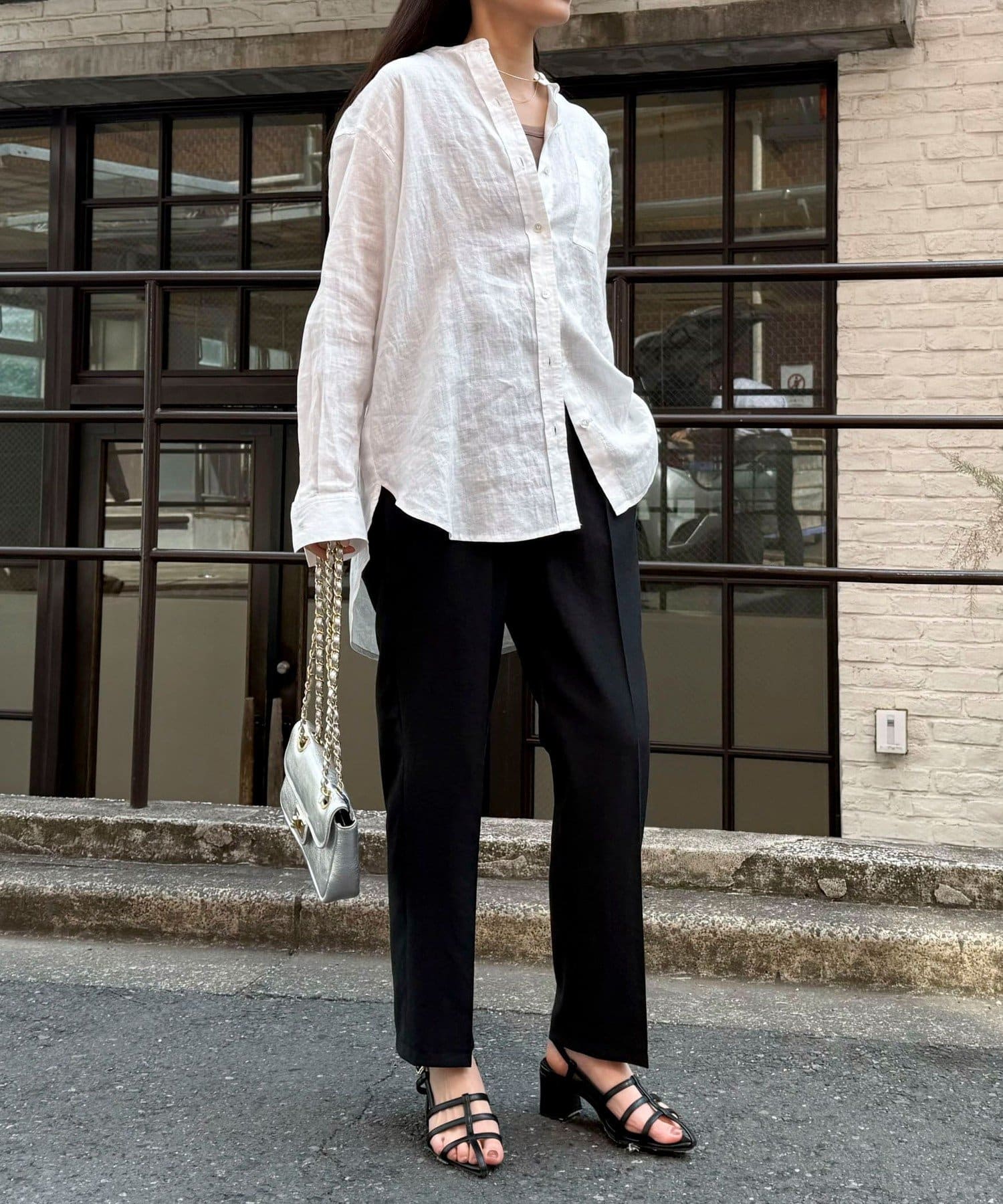 ラフな印象に見せてくれるリネンバンドカラーシャツ