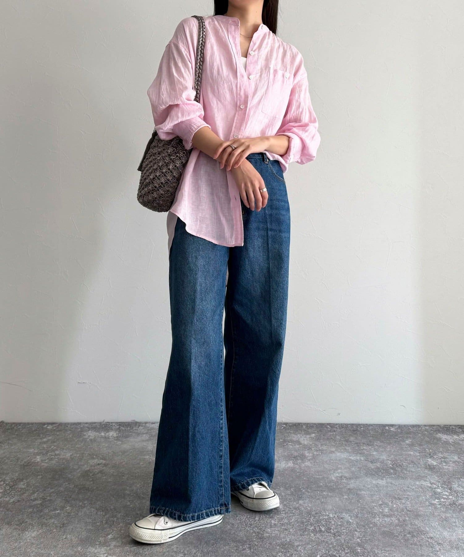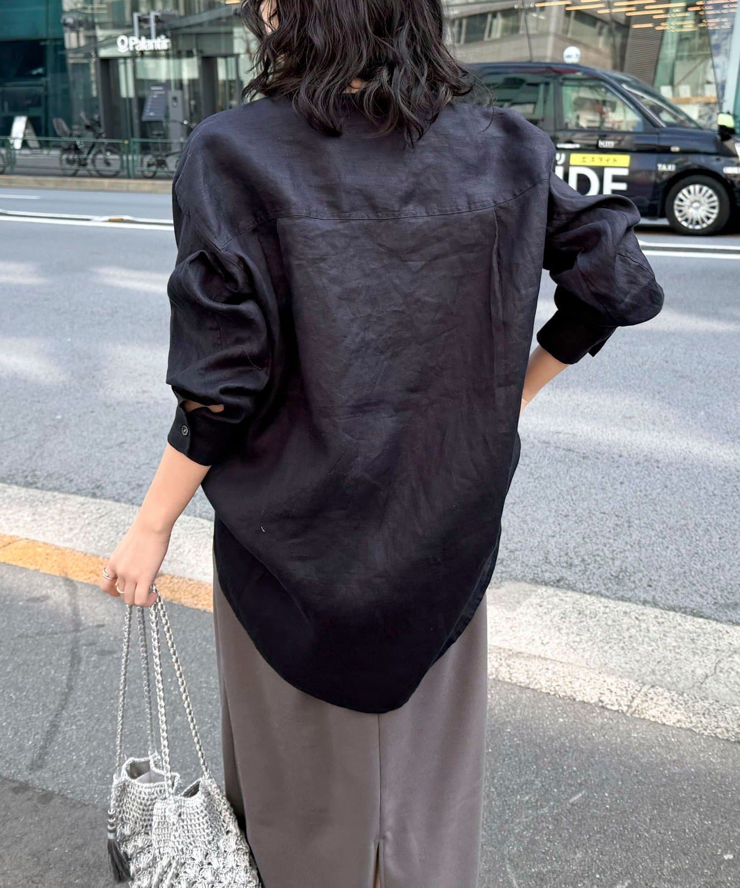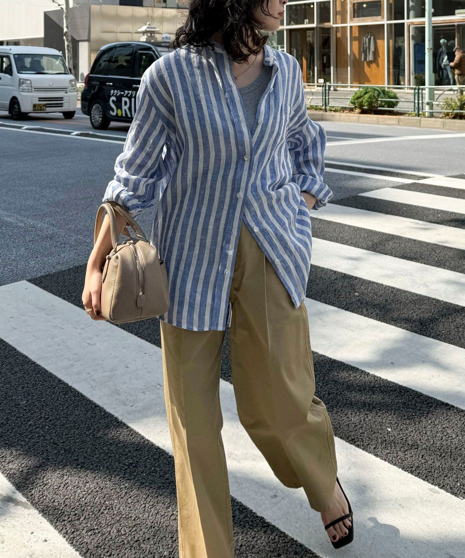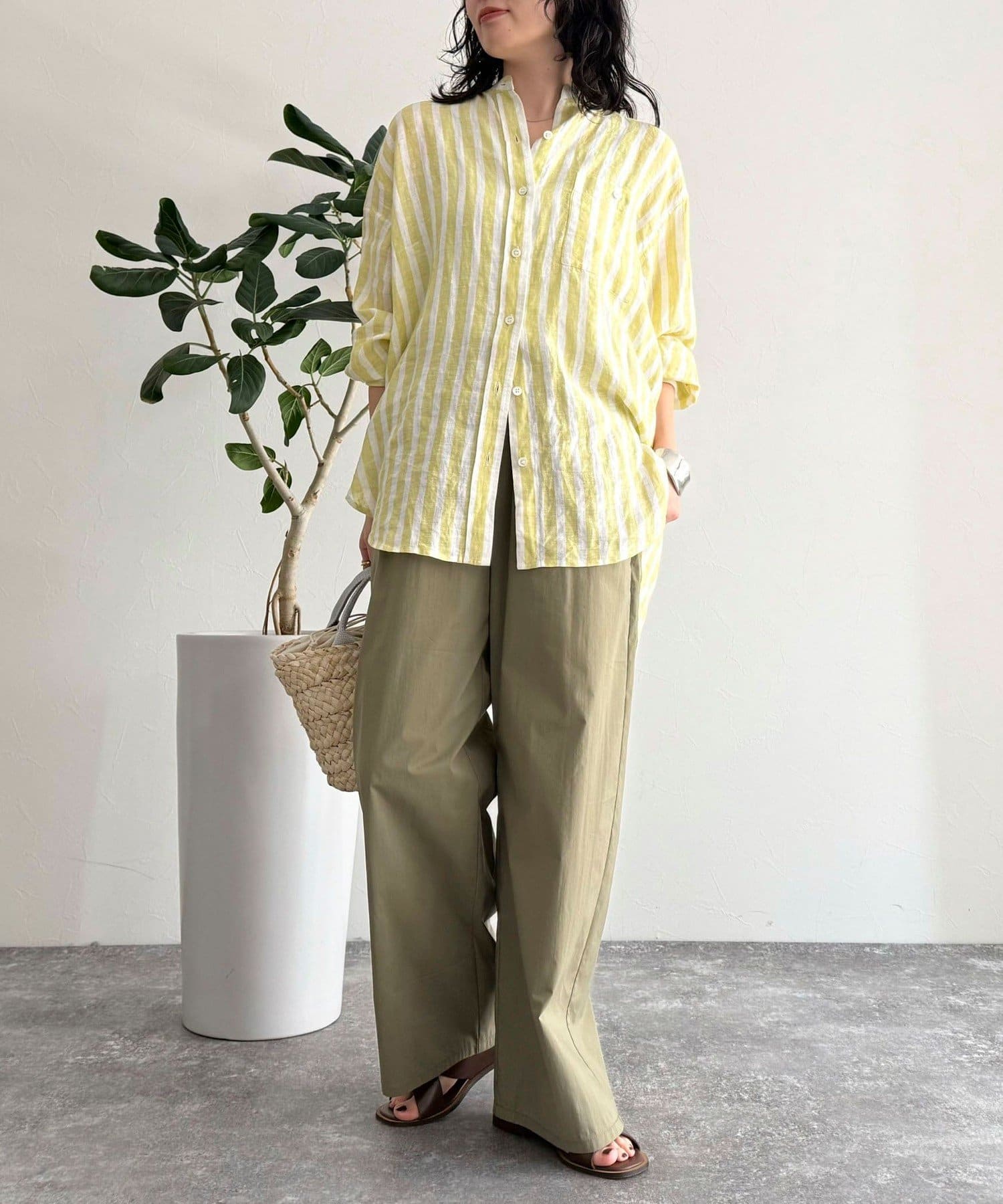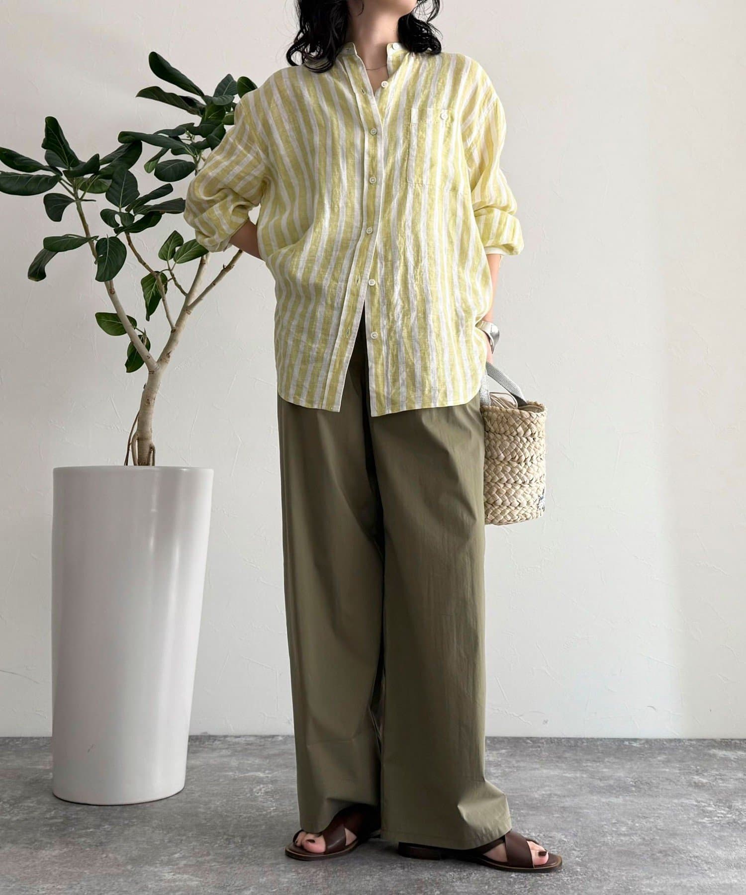 ラフな印象に見せてくれるリネンバンドカラーシャツ