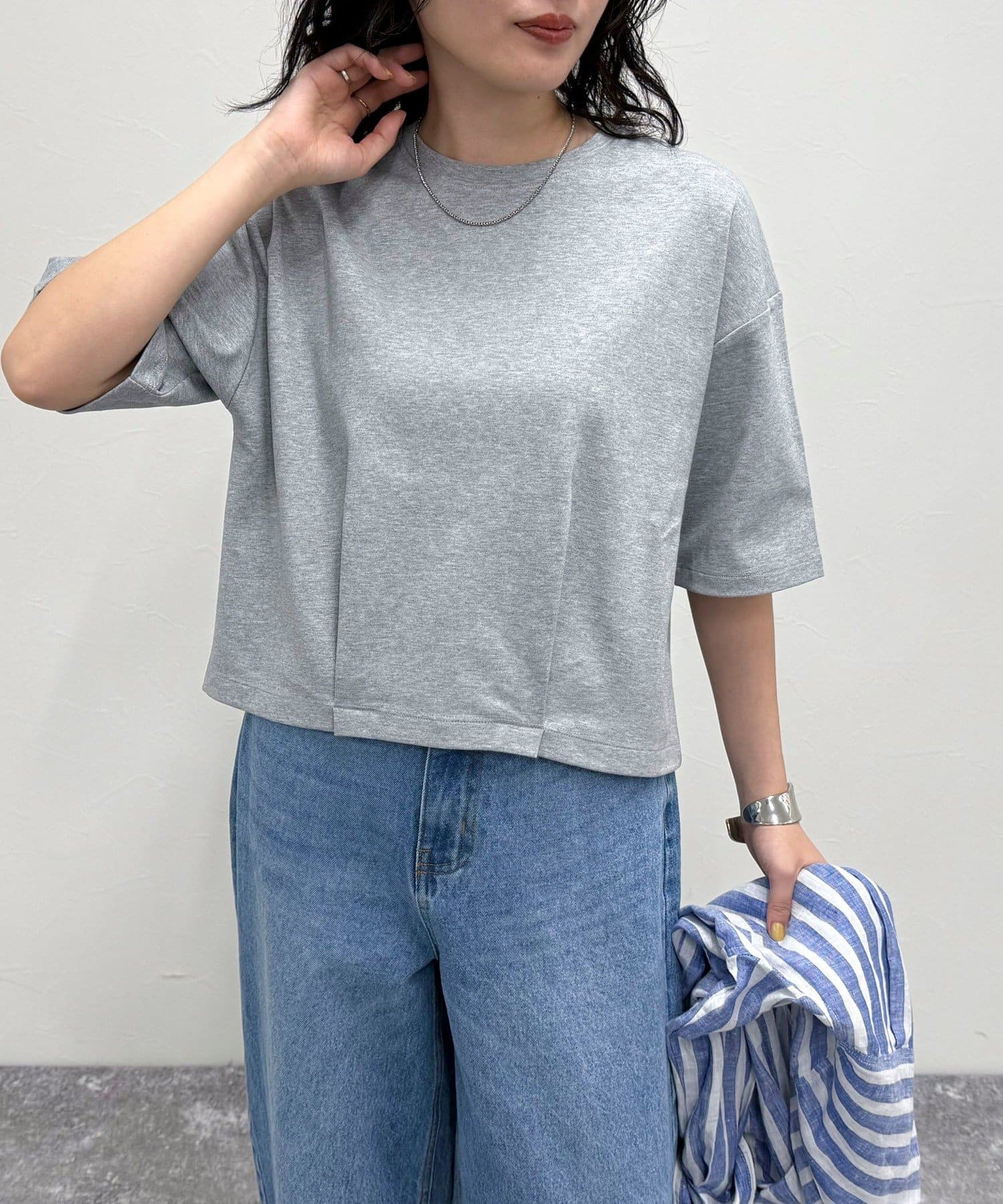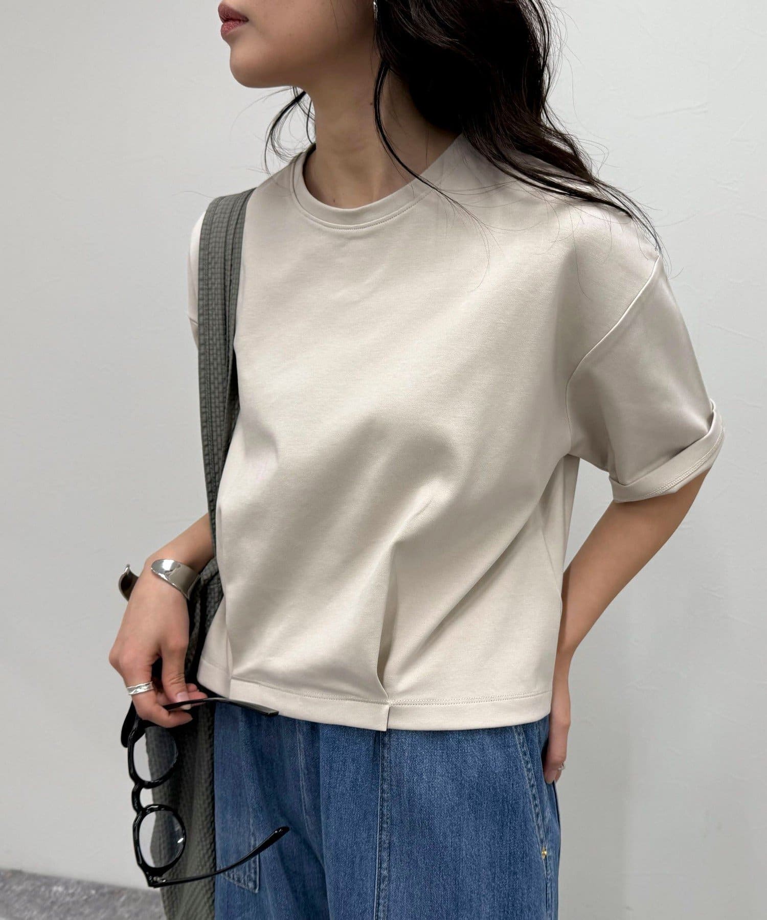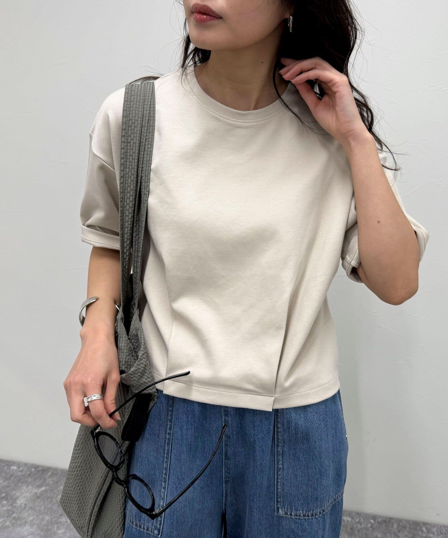 • FREDY & GLOSTER(フレディ アンド グロスター) ポンチ裾タック5分袖プルオーバーカットソー
