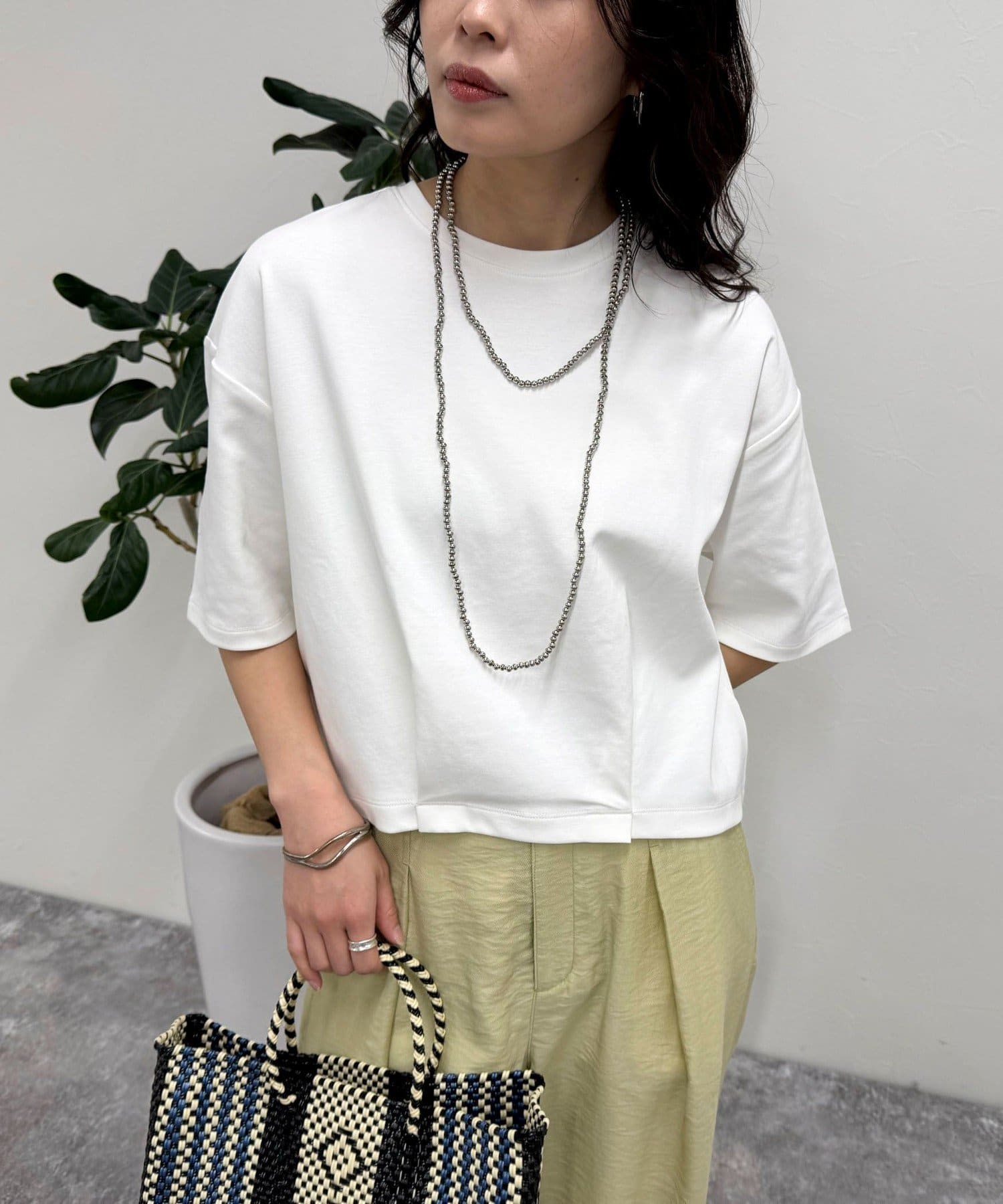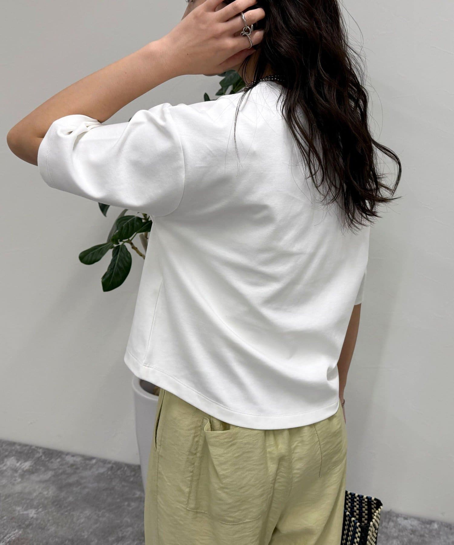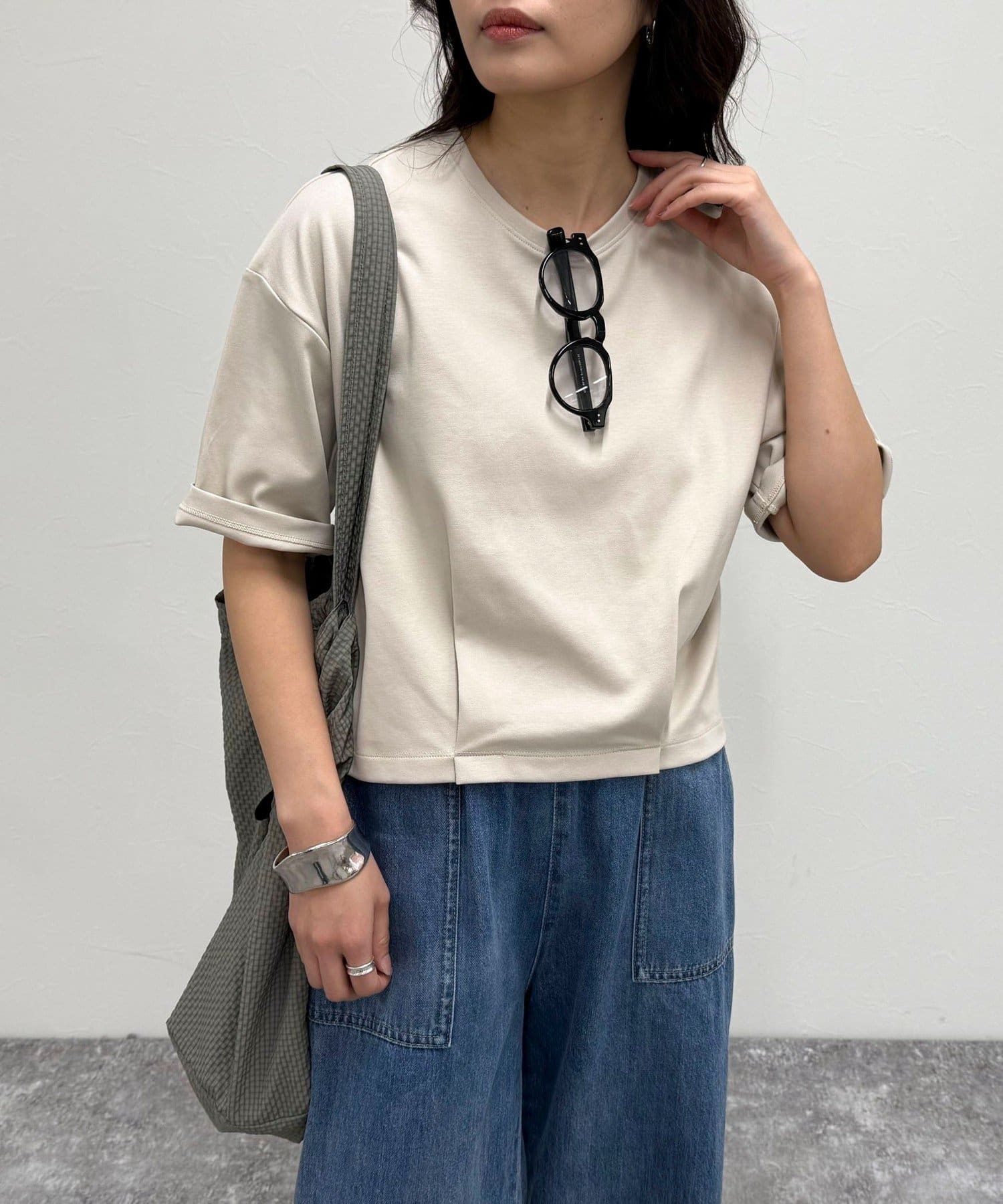 • FREDY & GLOSTER(フレディ アンド グロスター) ポンチ裾タック5分袖プルオーバーカットソー