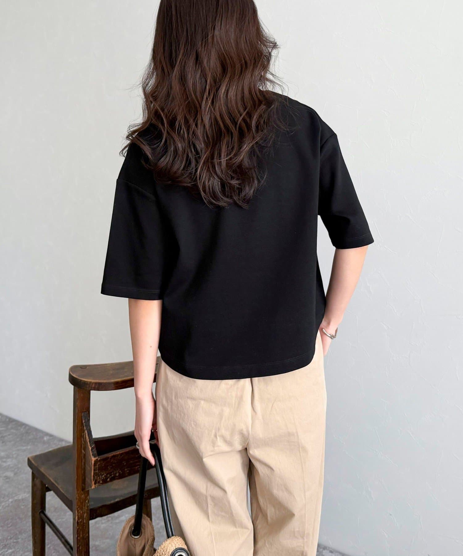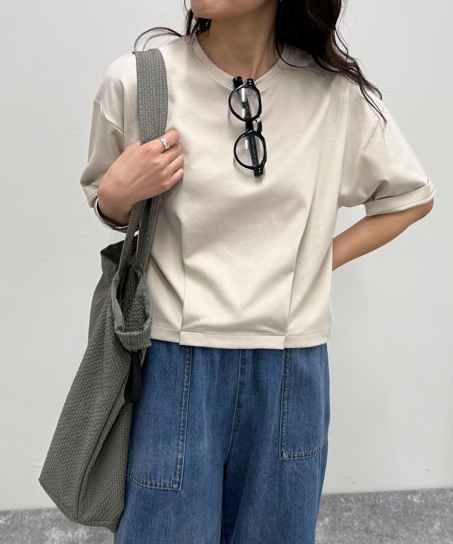 TOP > FREDY & GLOSTER > レディース > トップス > Tシャツ/カットソー > ポンチ裾タック5分袖プルオーバーカットソー