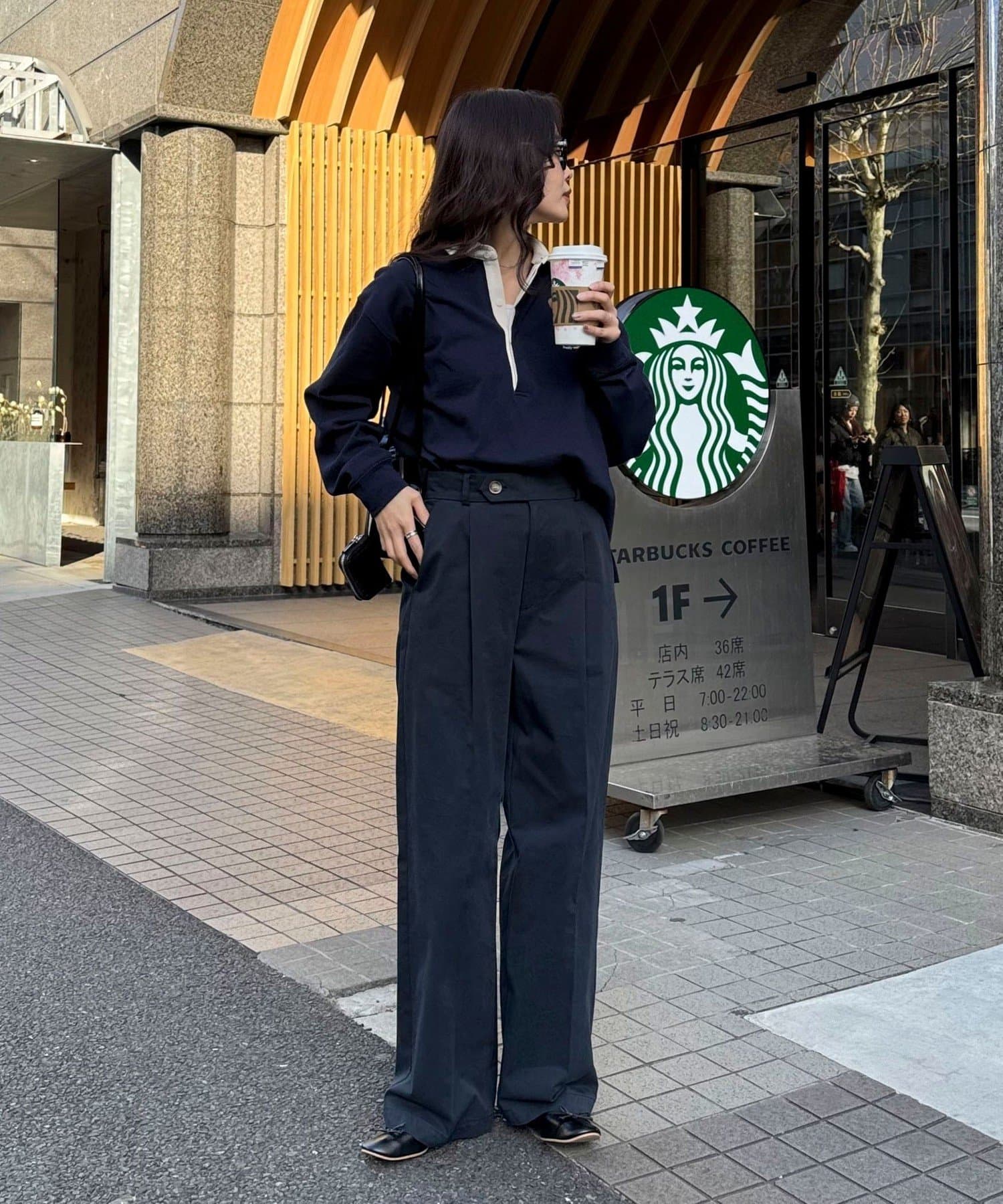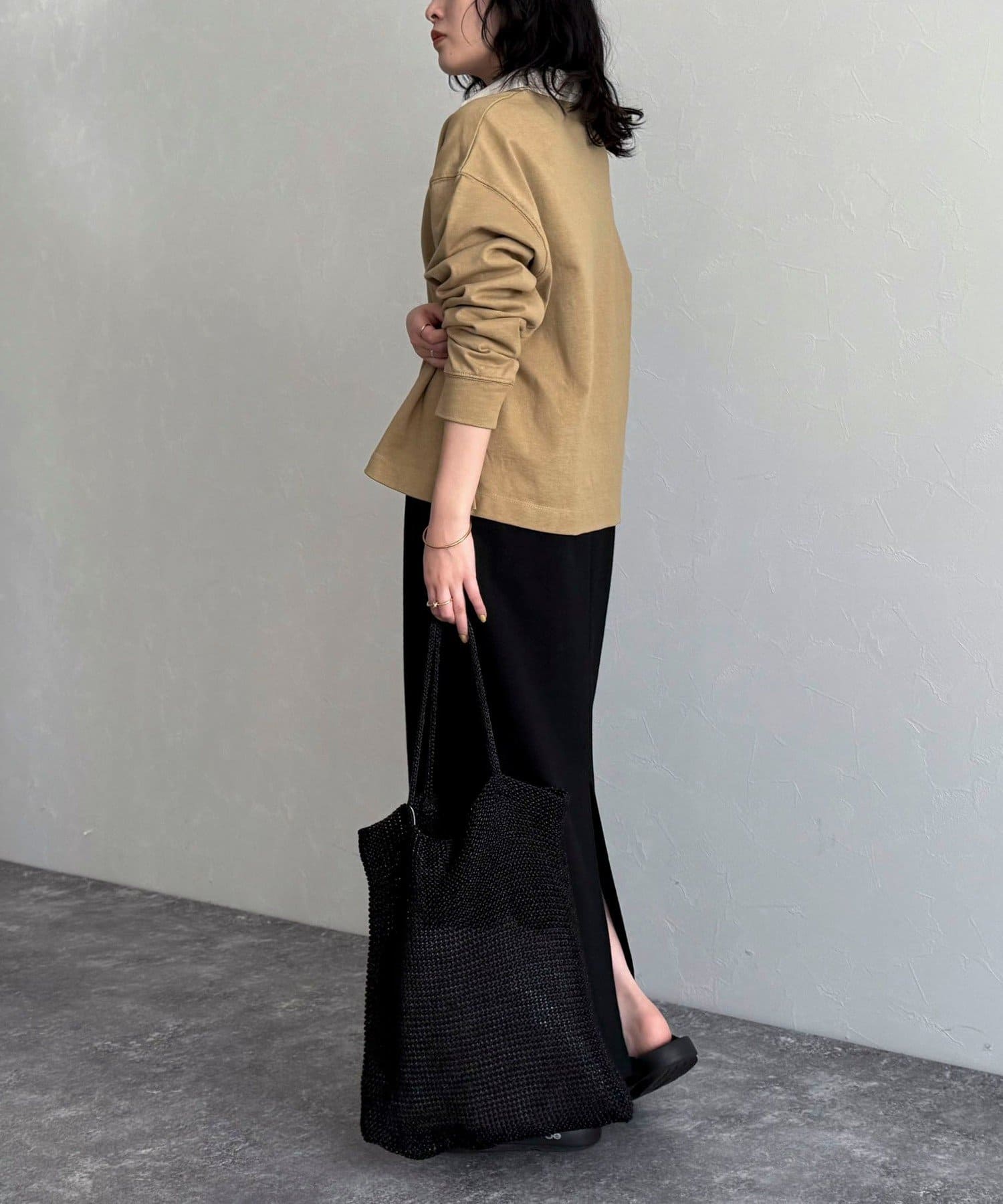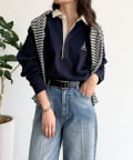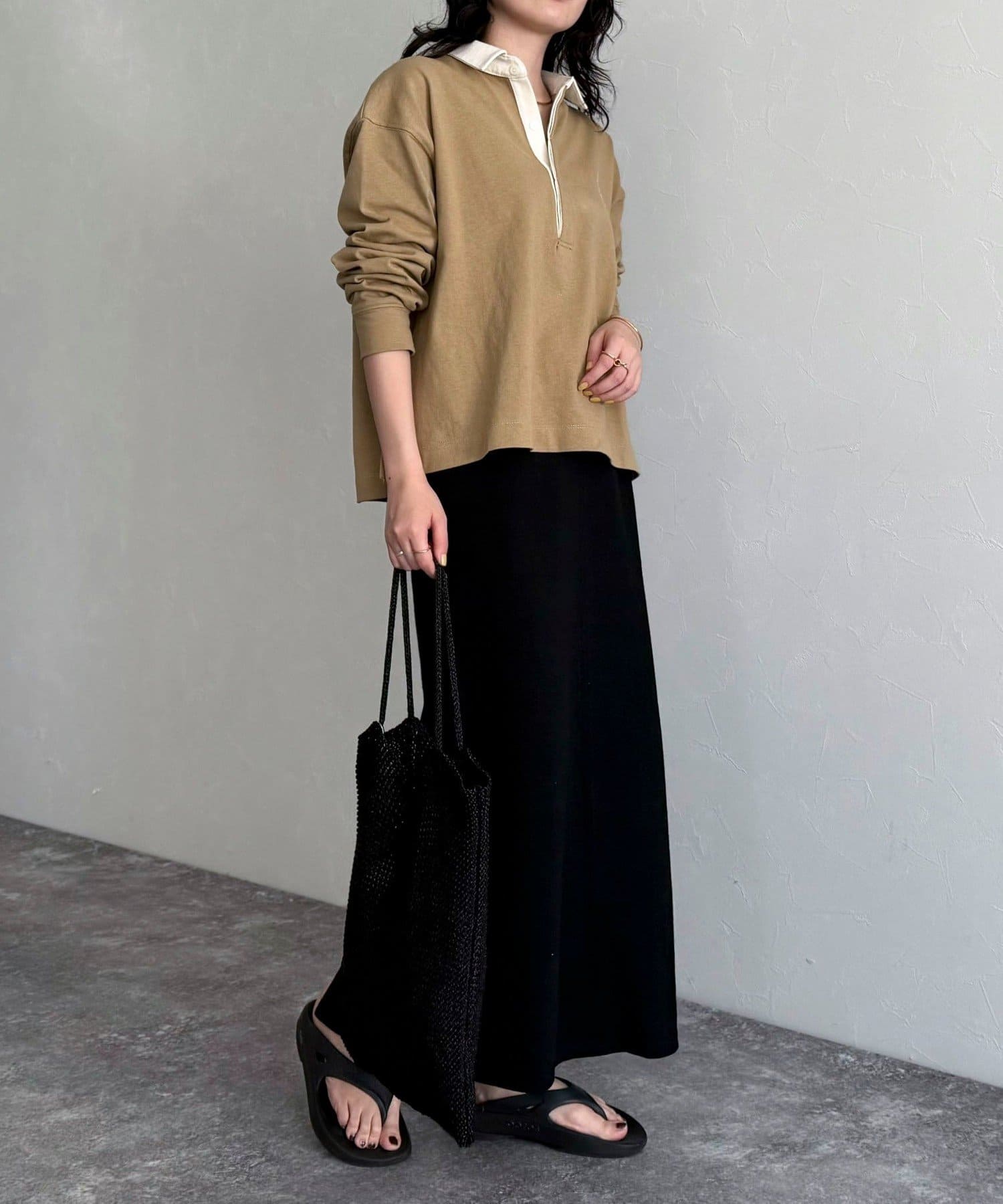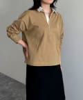 ・ボタンを開けて衿抜きの大人っぽいスタイリングやスカート合わせの甘辛MIXスタイルもオススメです