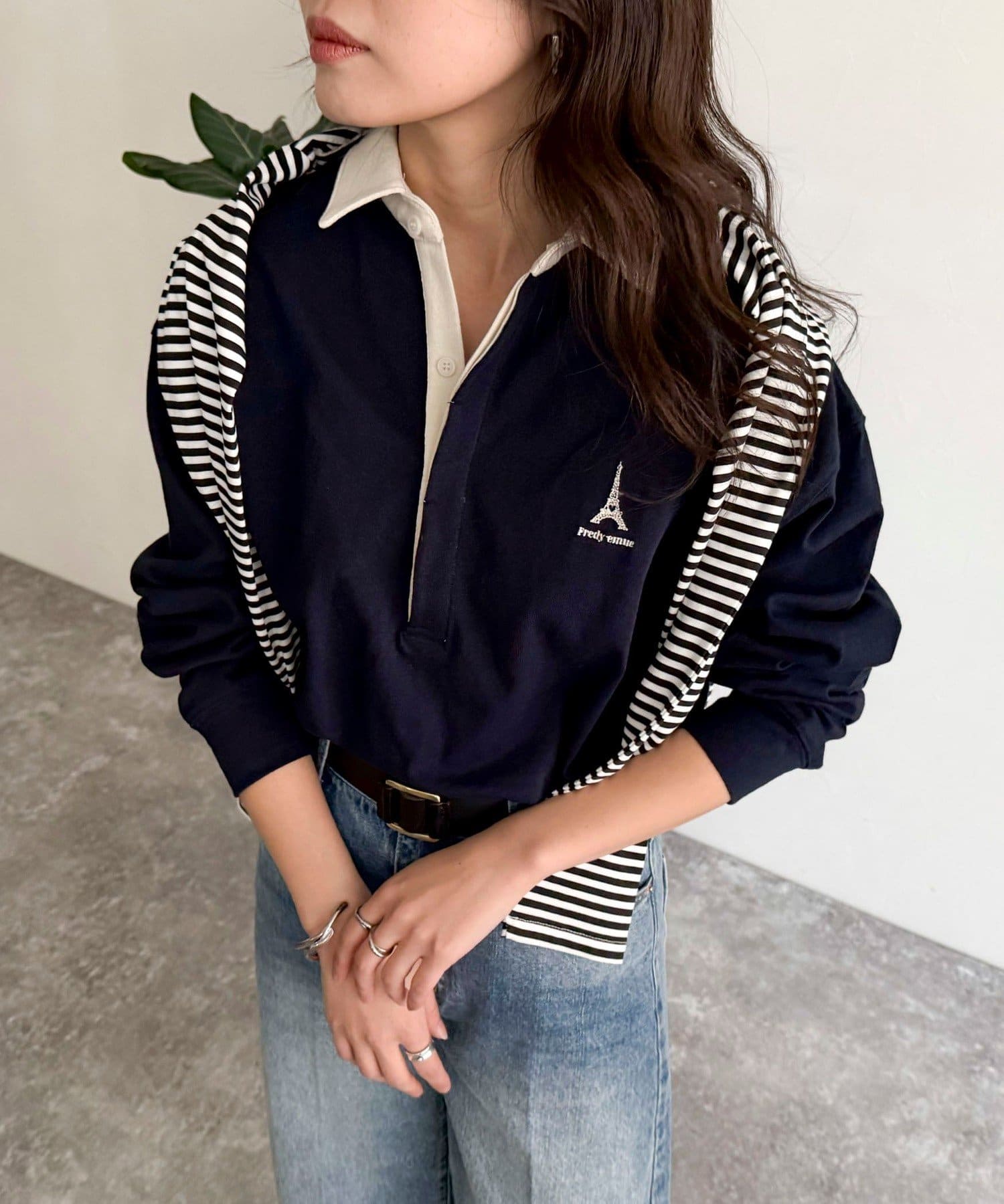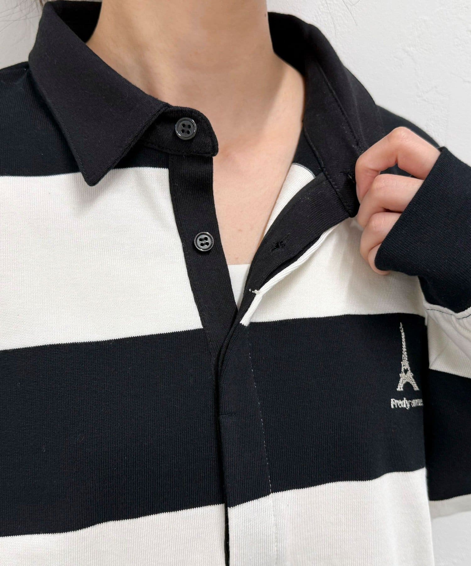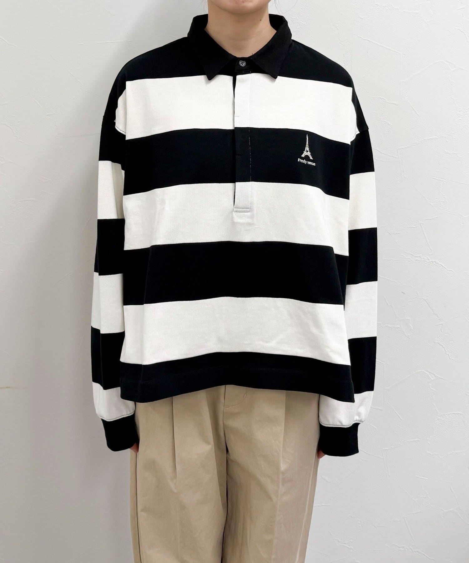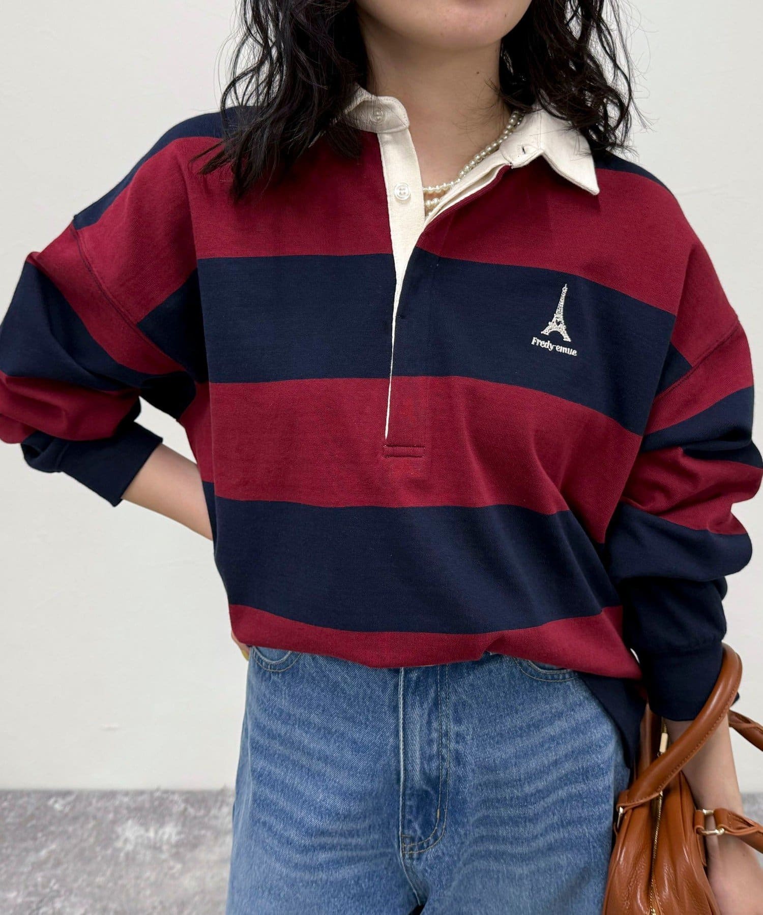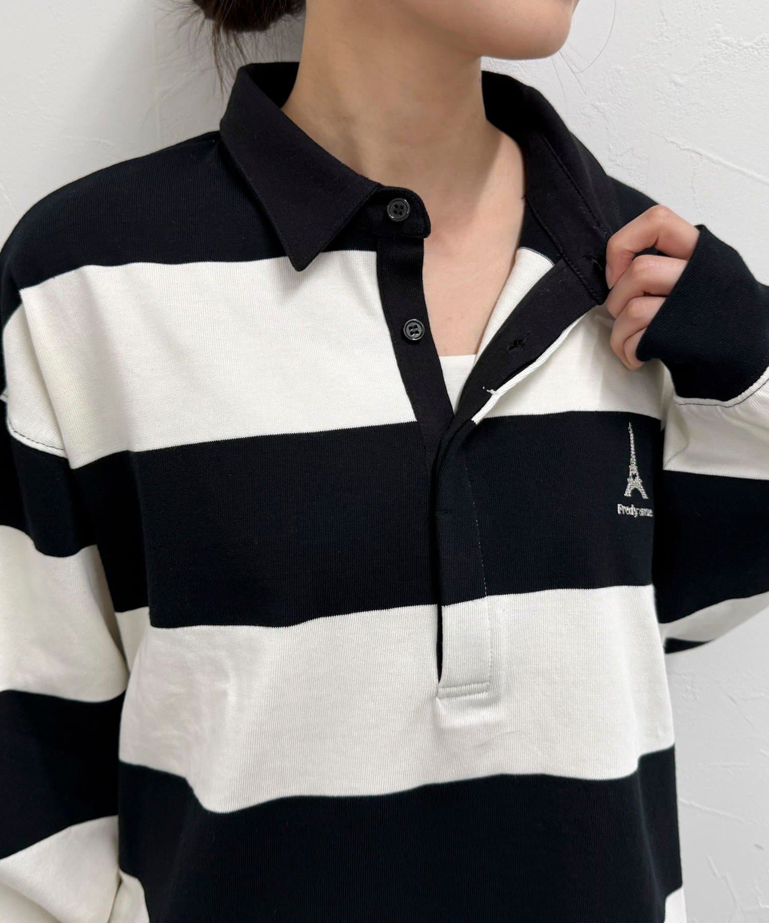 可愛いワンポイント刺繍がアクセントになったラガーシャツ