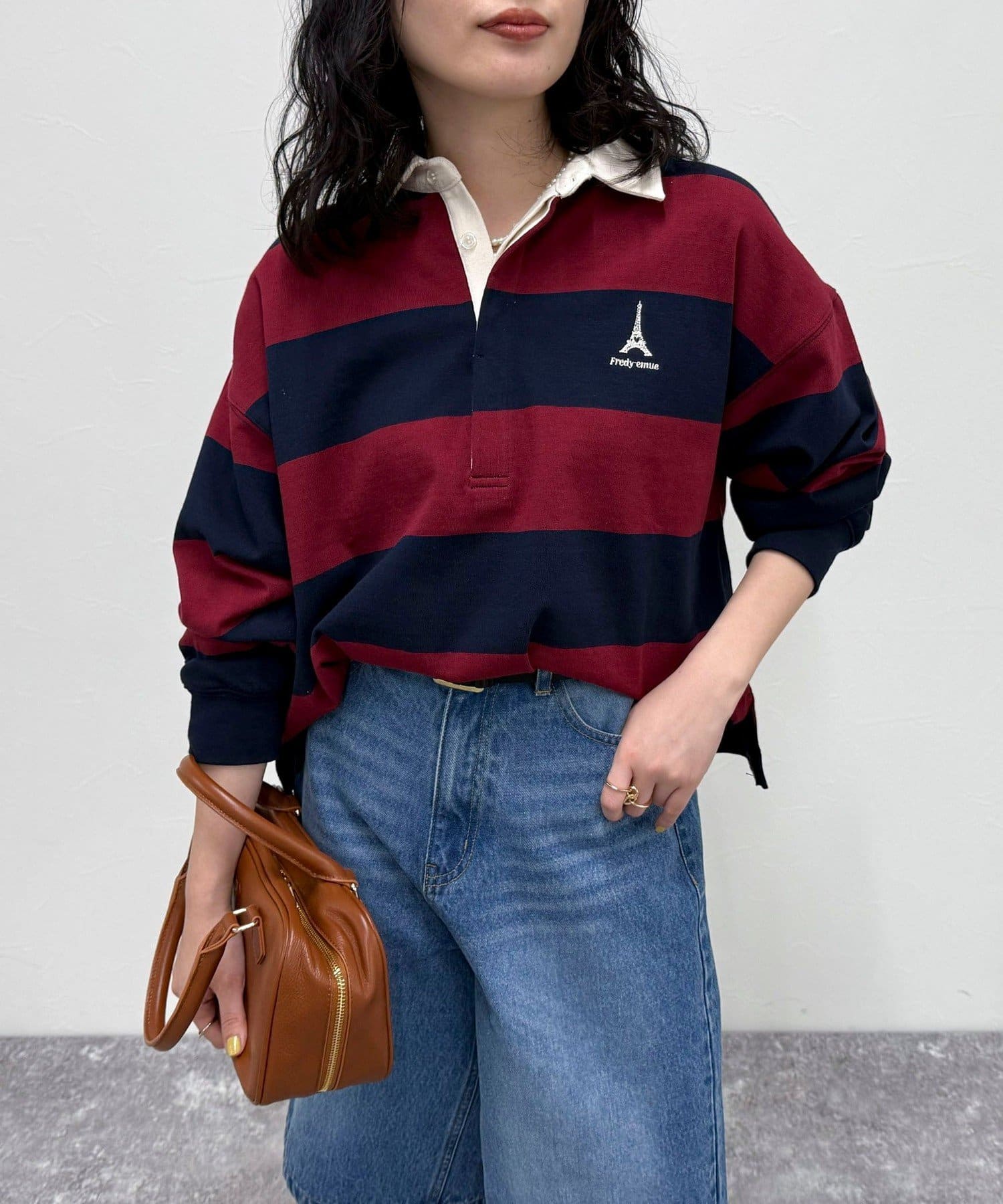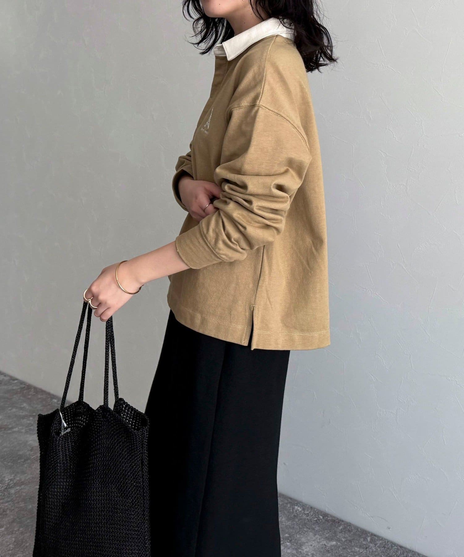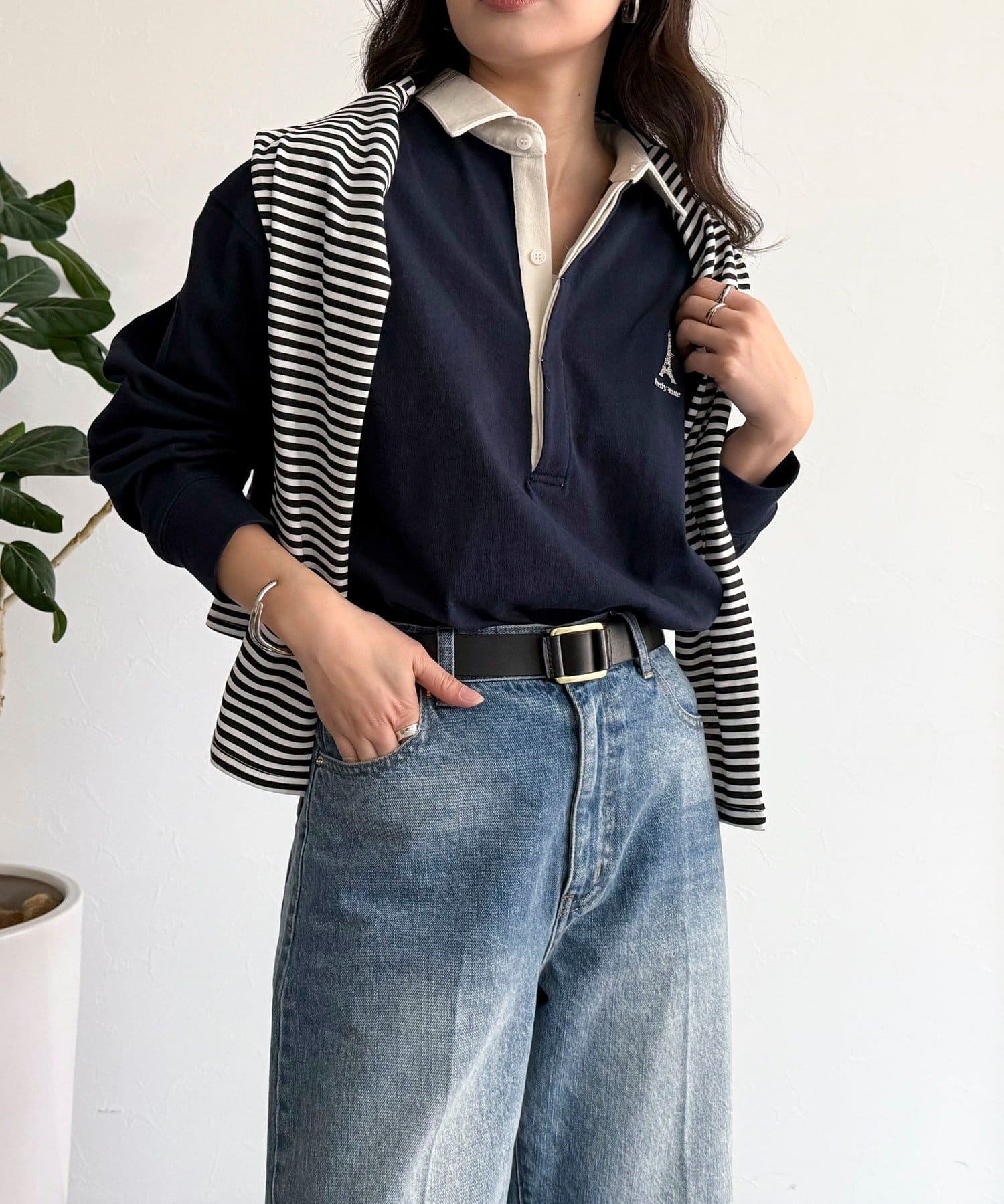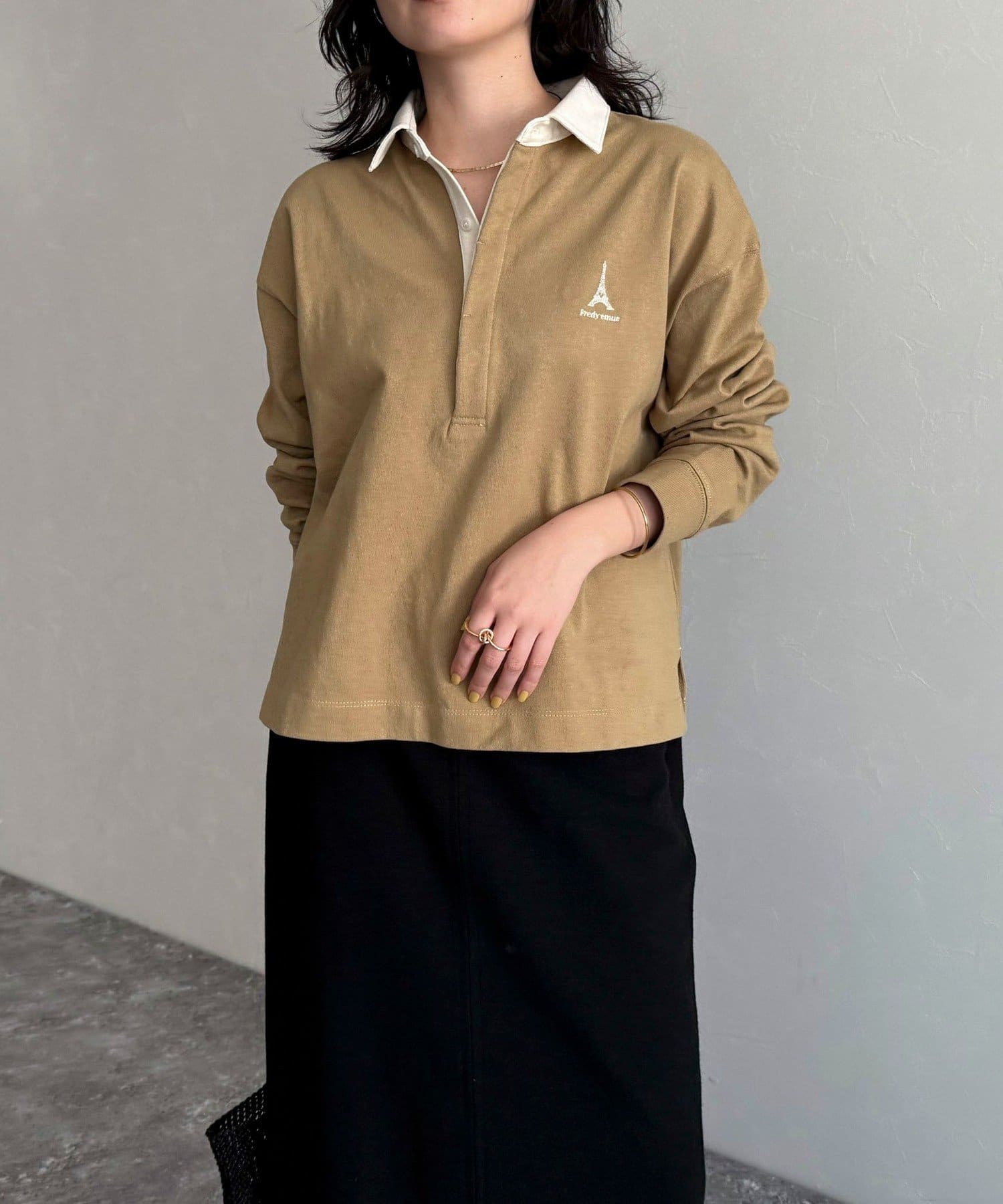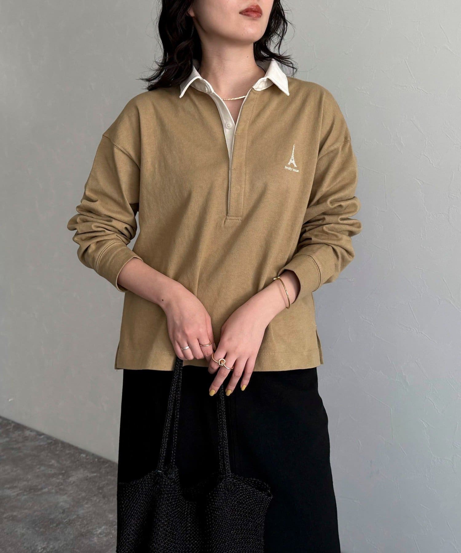 ・ワンポイント刺繍がポイントのトレンド感あるラガーシャツです