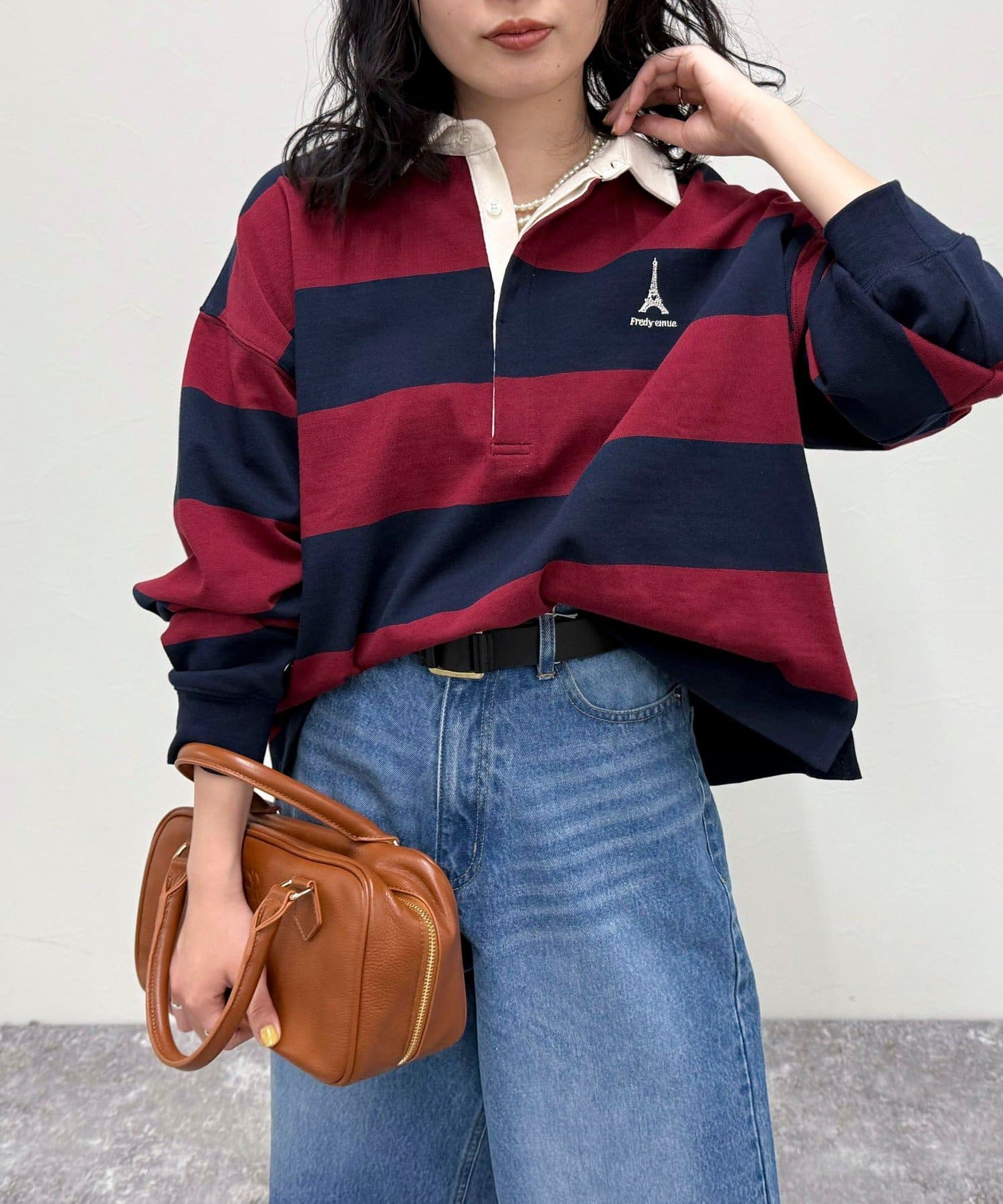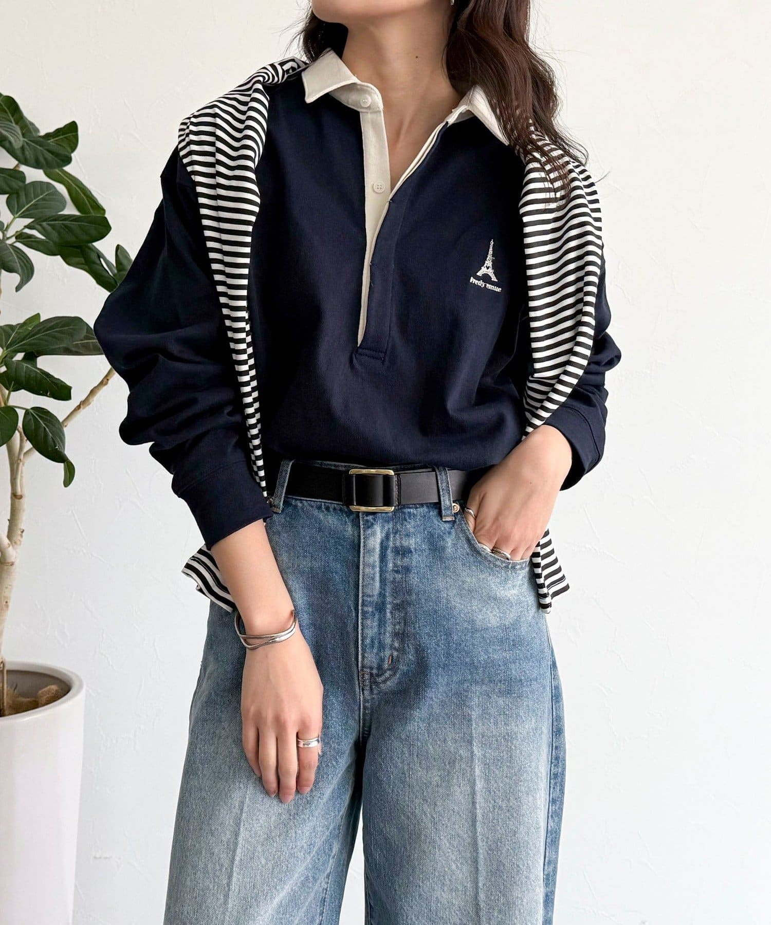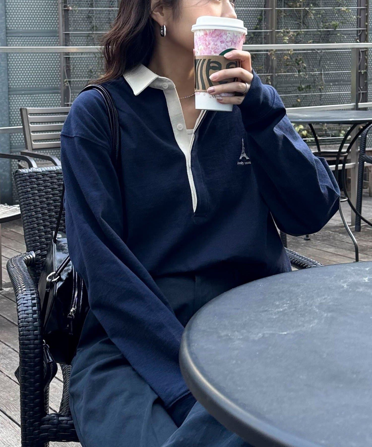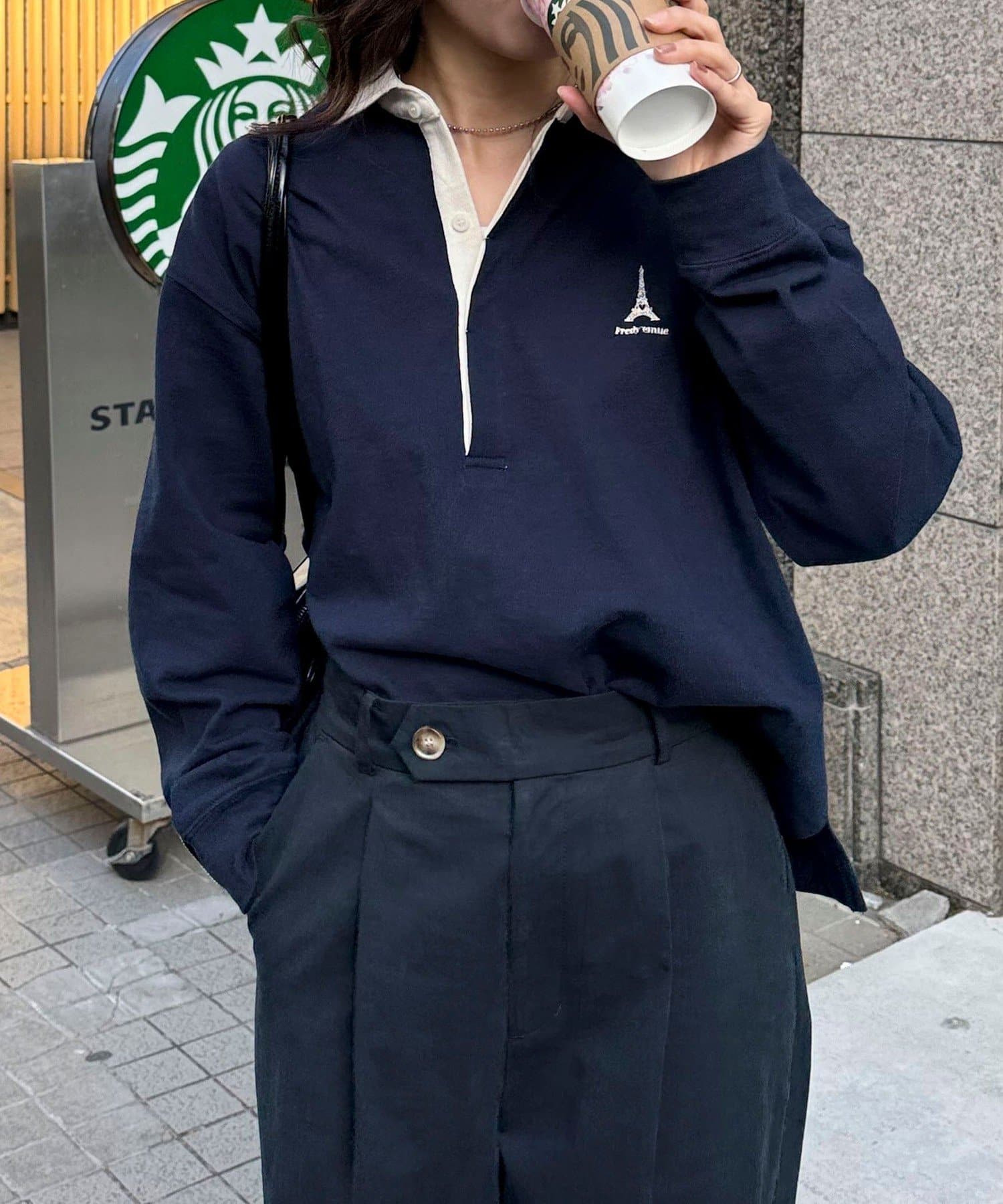 ・ワンポイント刺繍がポイントのトレンド感あるラガーシャツです