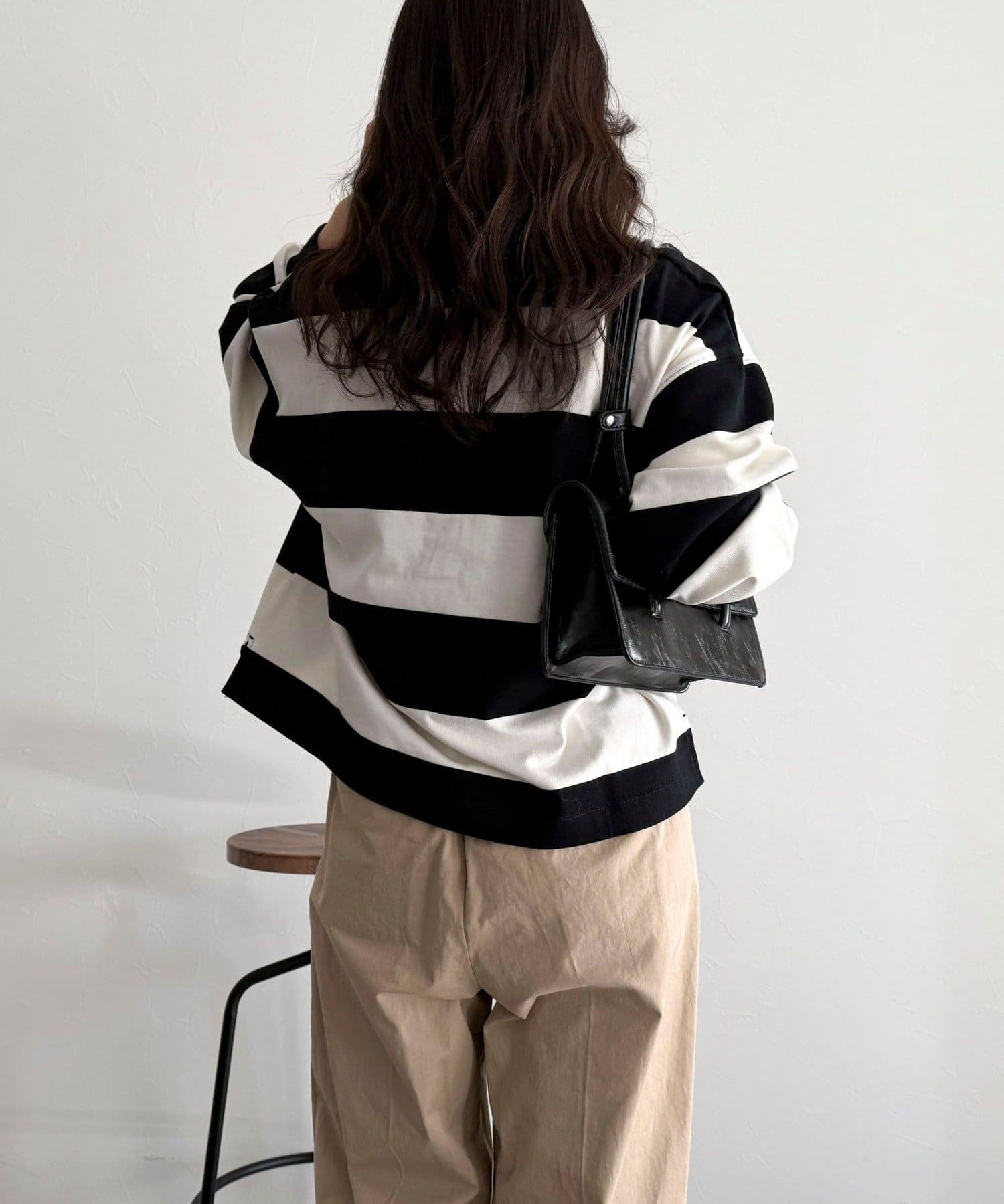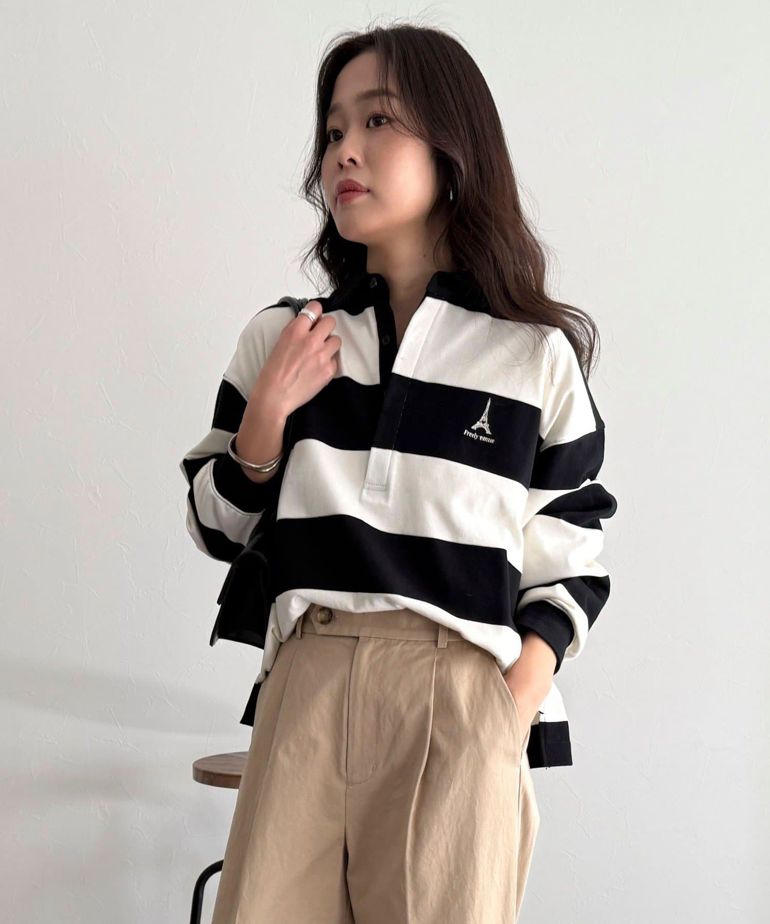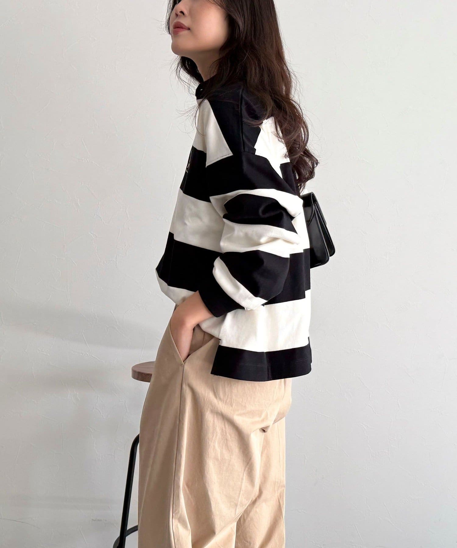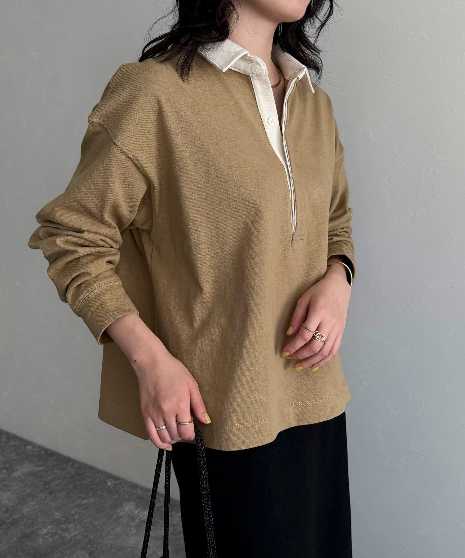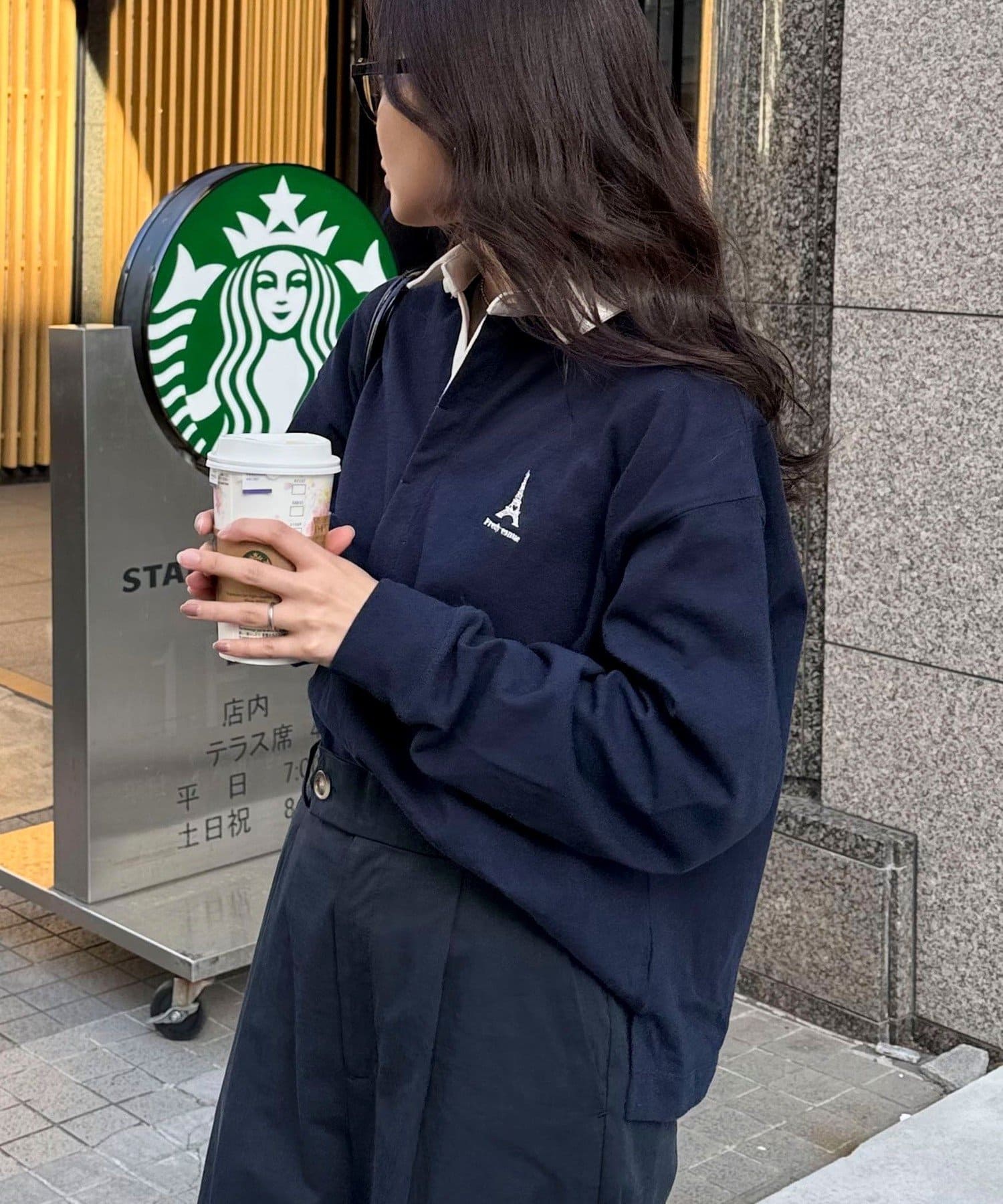 ・ワンポイント刺繍がポイントのトレンド感あるラガーシャツです