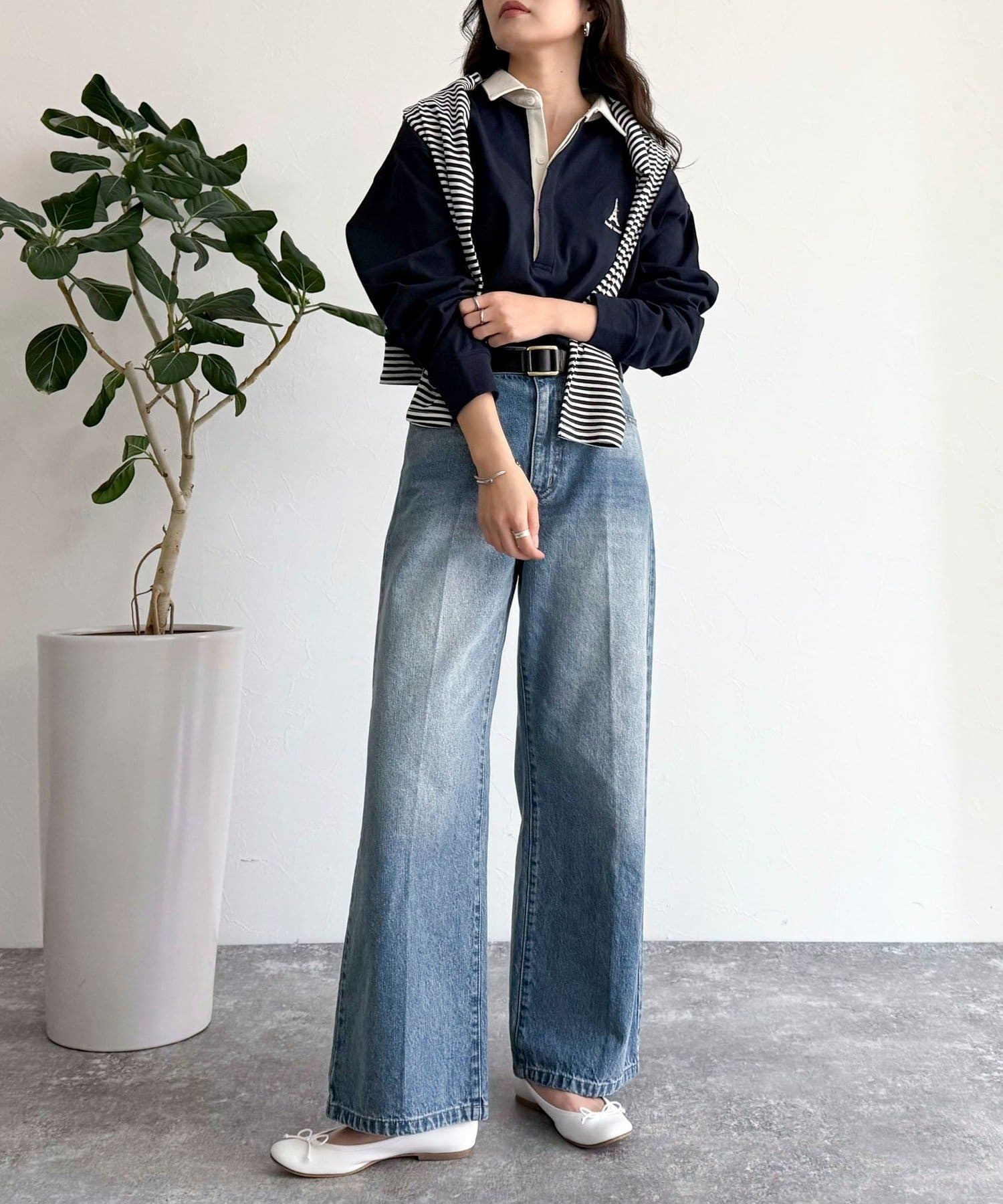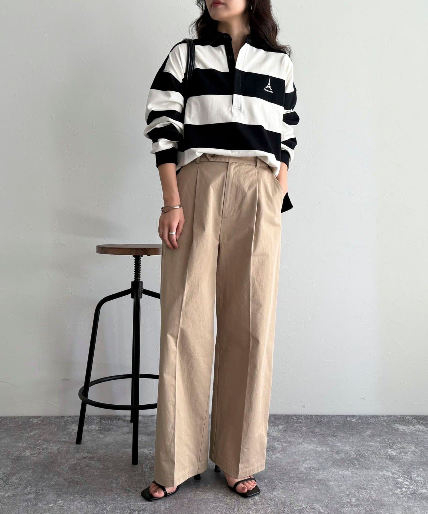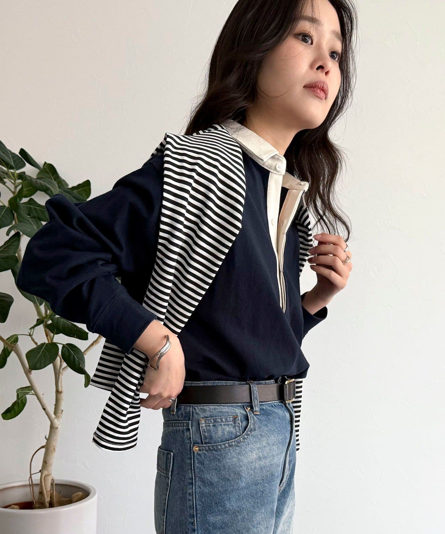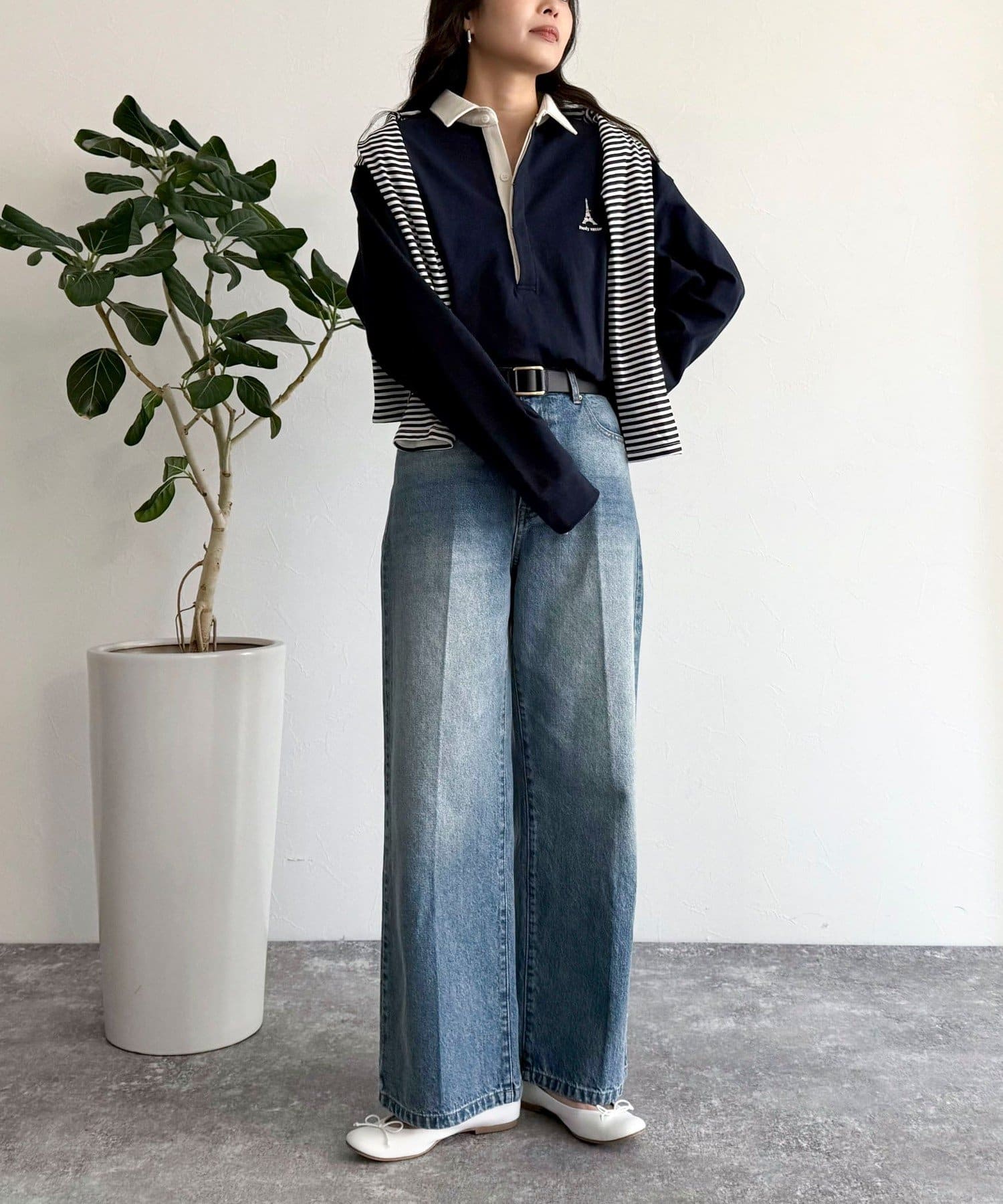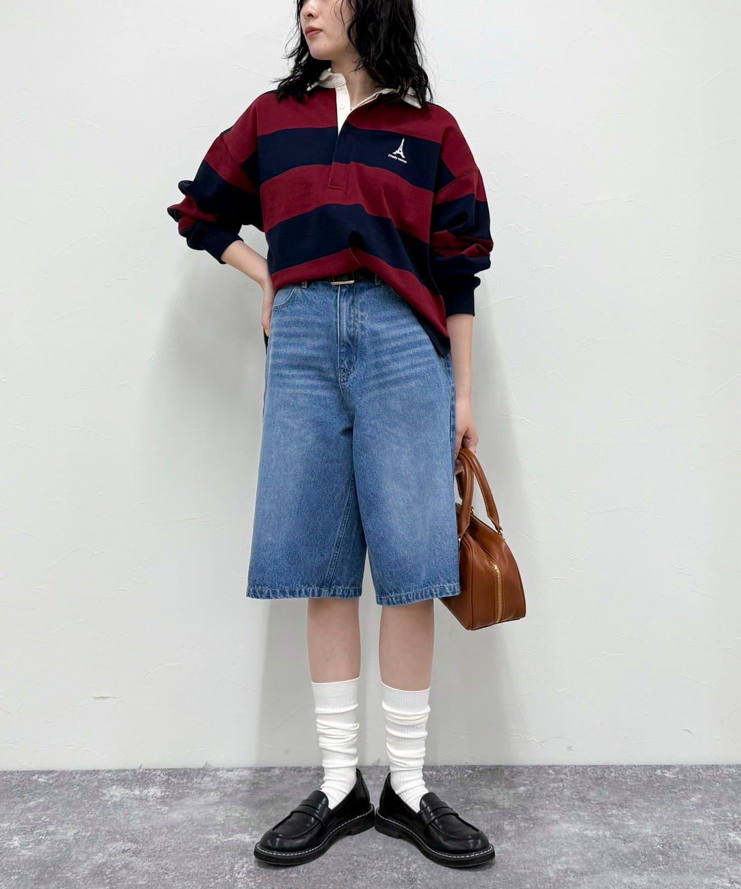 ・ワンポイント刺繍がポイントのトレンド感あるラガーシャツです