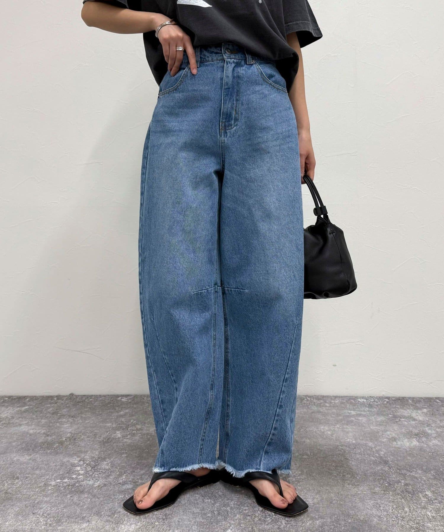トレンド感のあるシルエットが魅力的なカーブデニム
