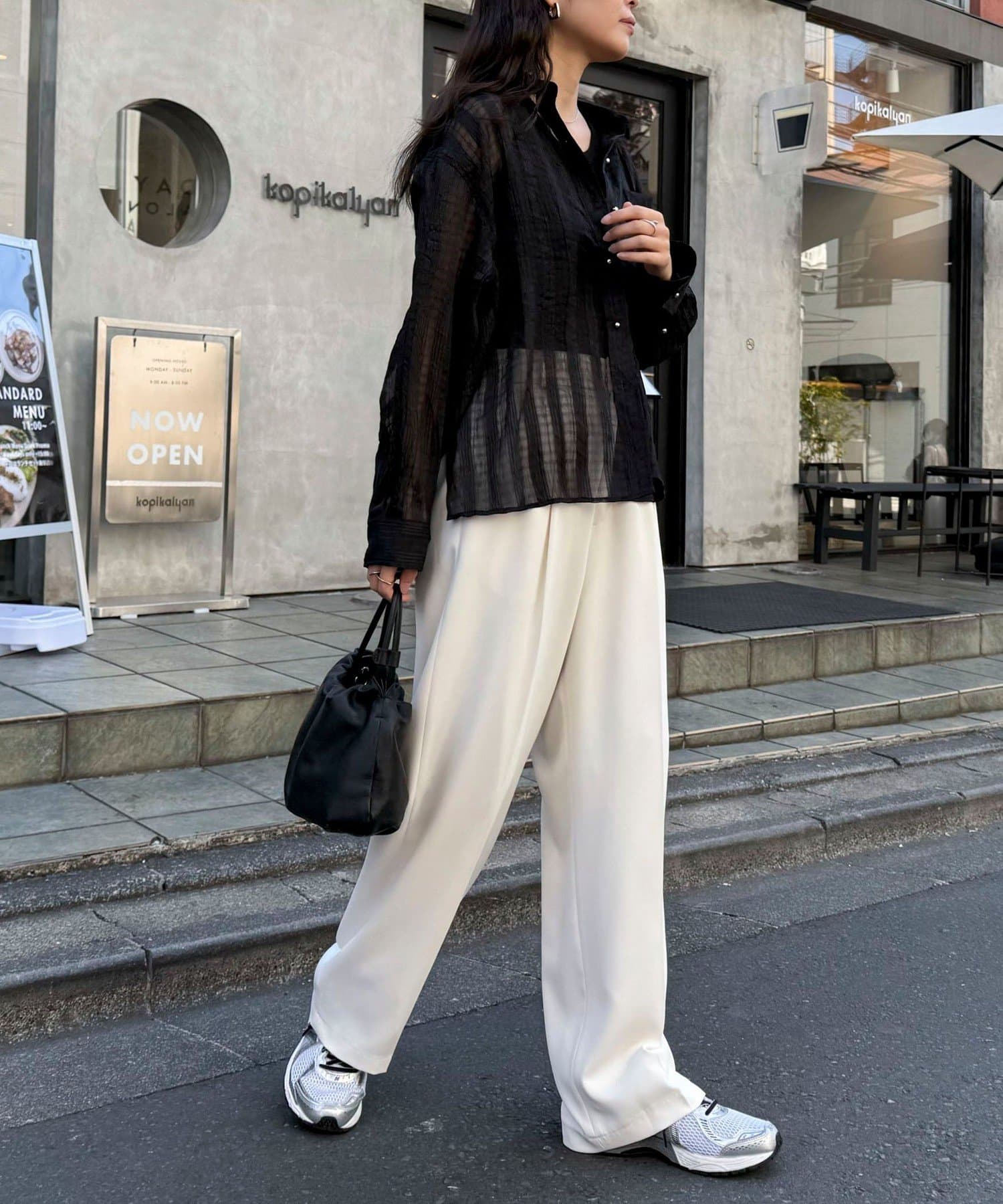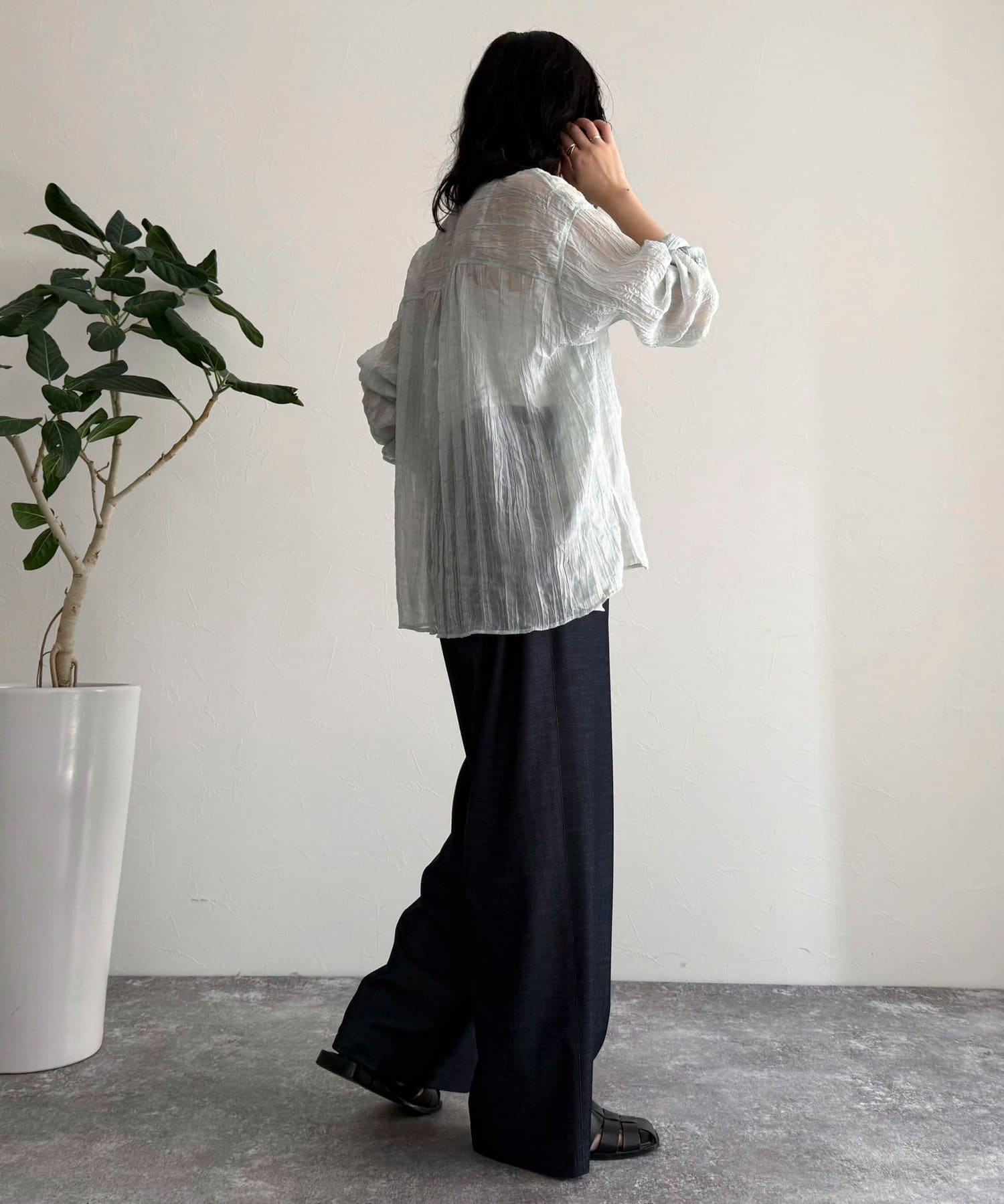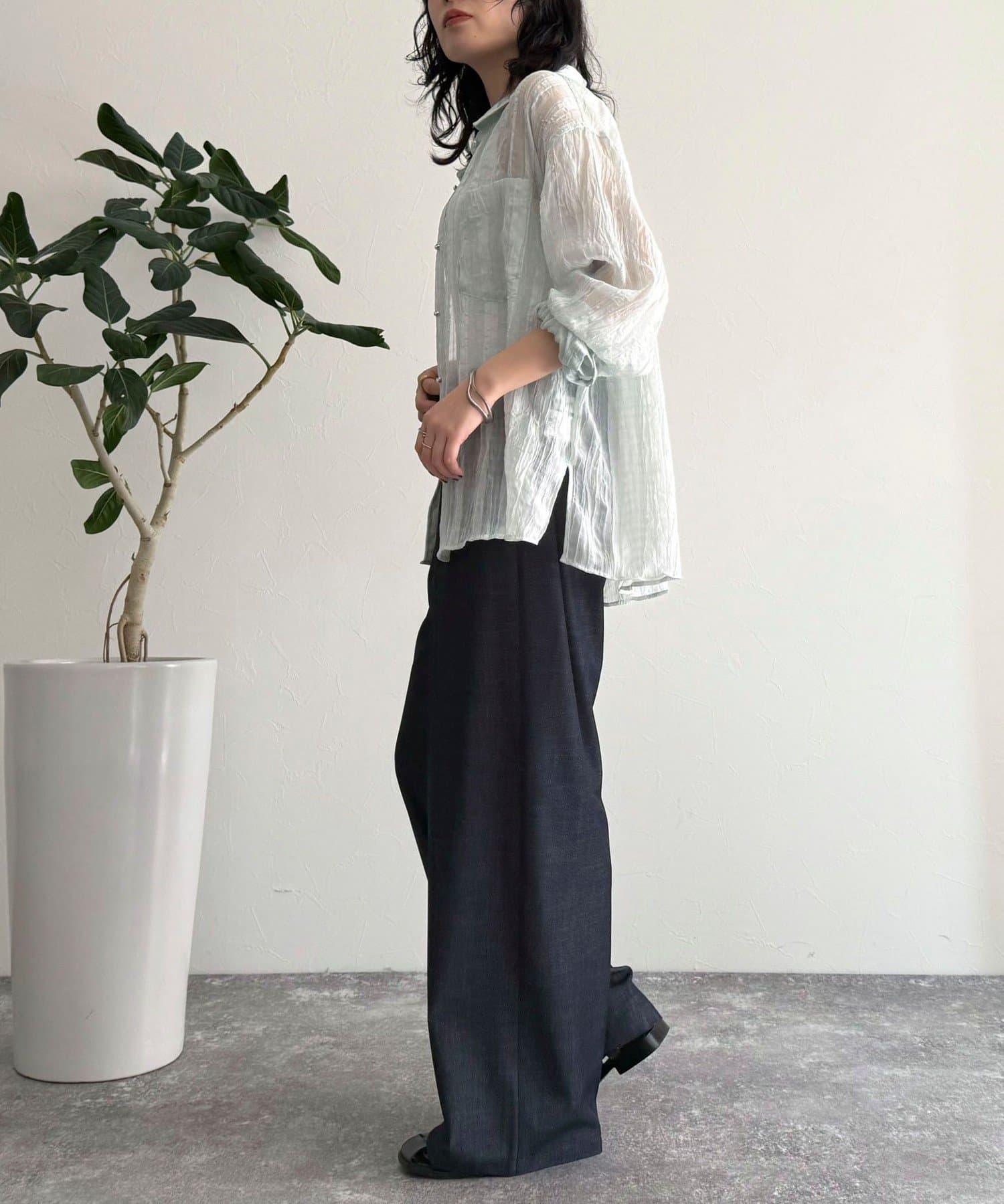 ・柔らかな雰囲気を醸し出すシアー感と生地の質感がこなれた印象を演出してくれます