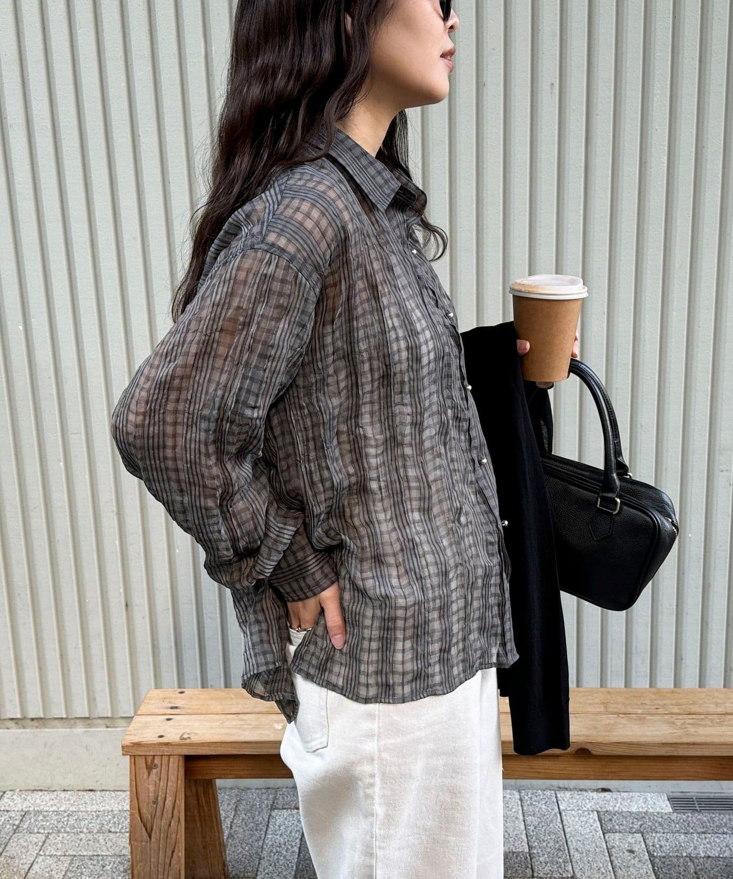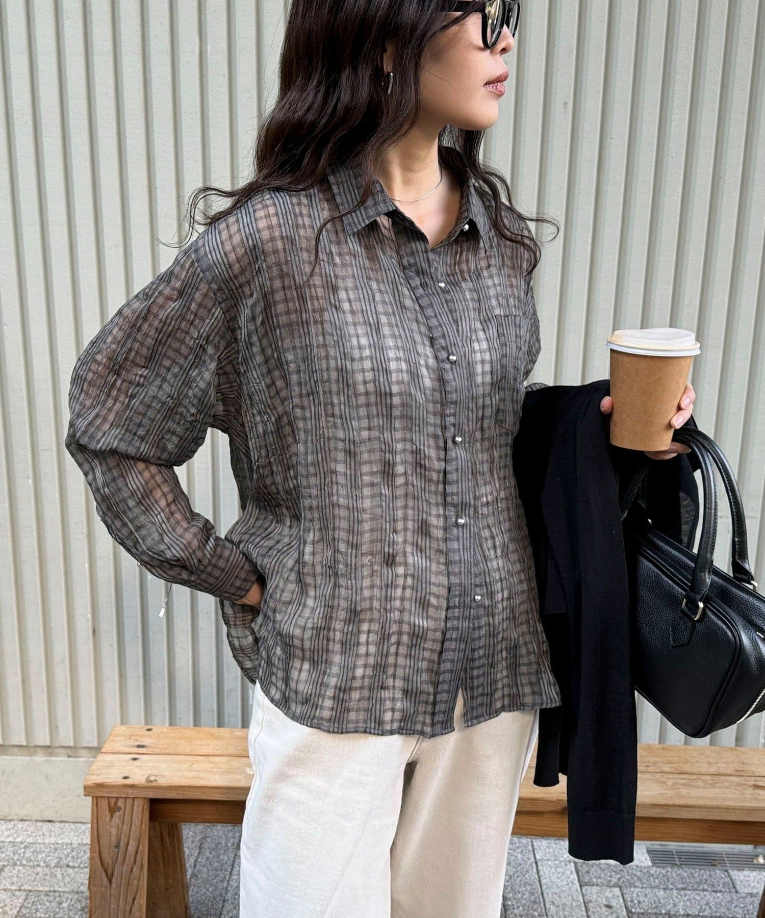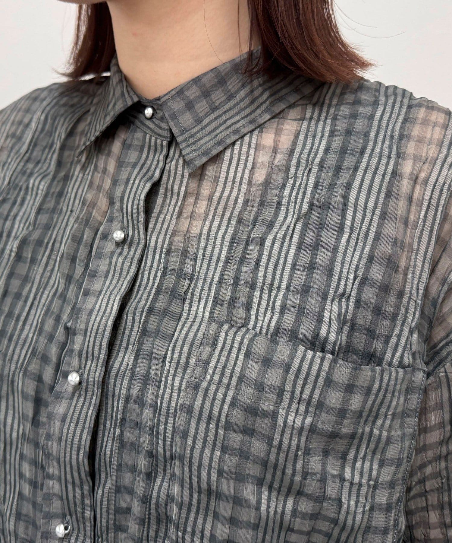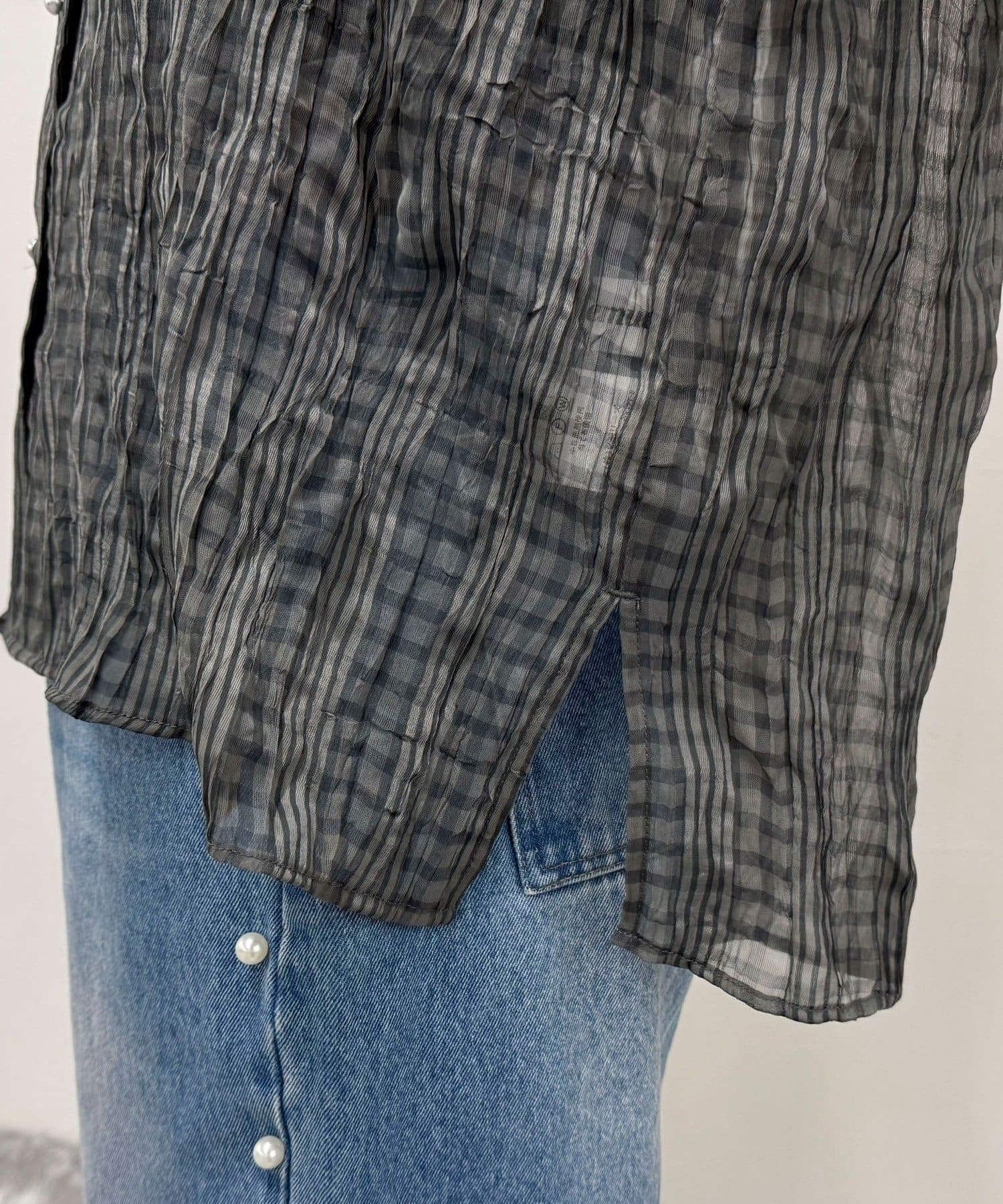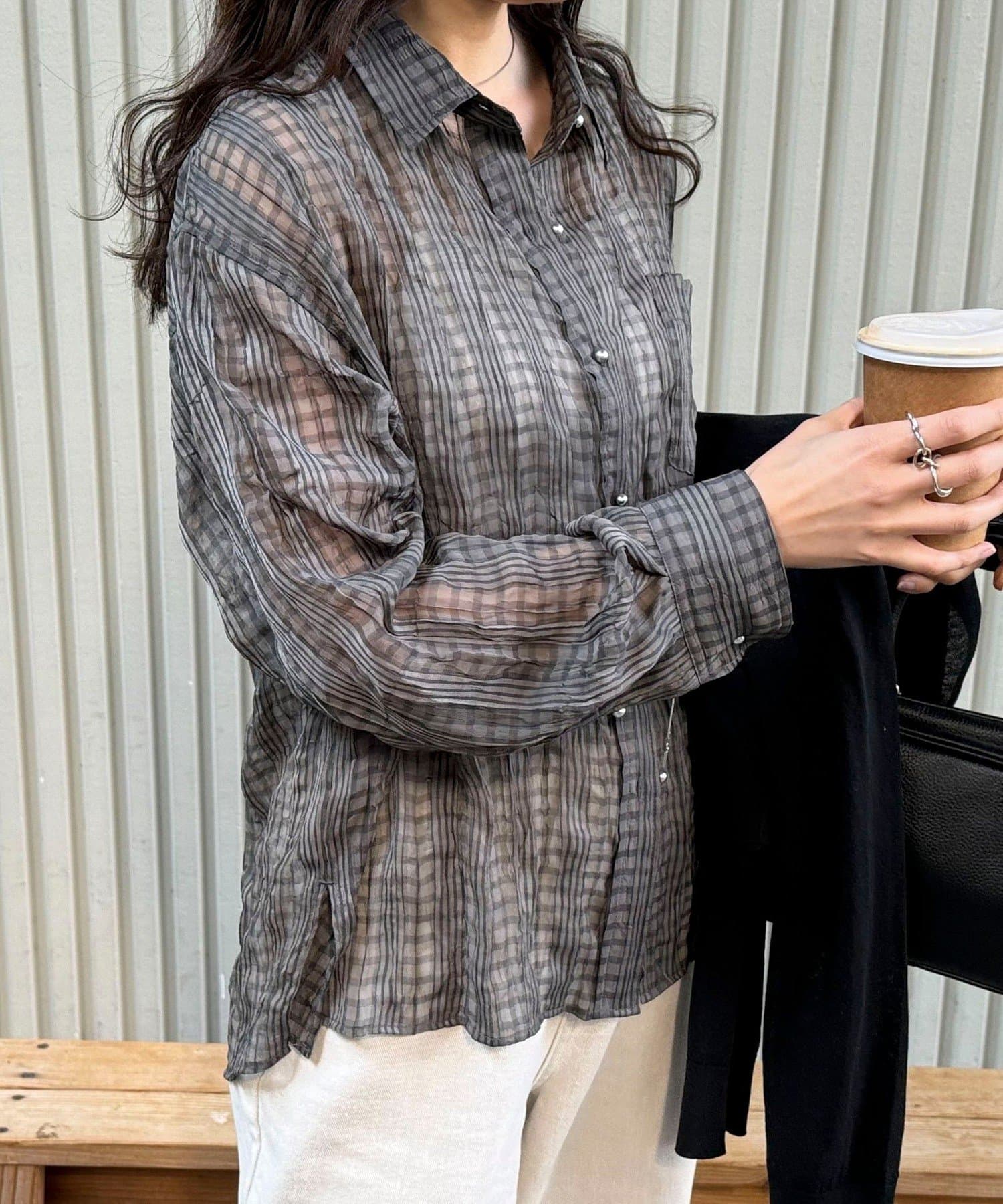 ・清涼感漂う透け感が綺麗なチェック柄シアーシャツです