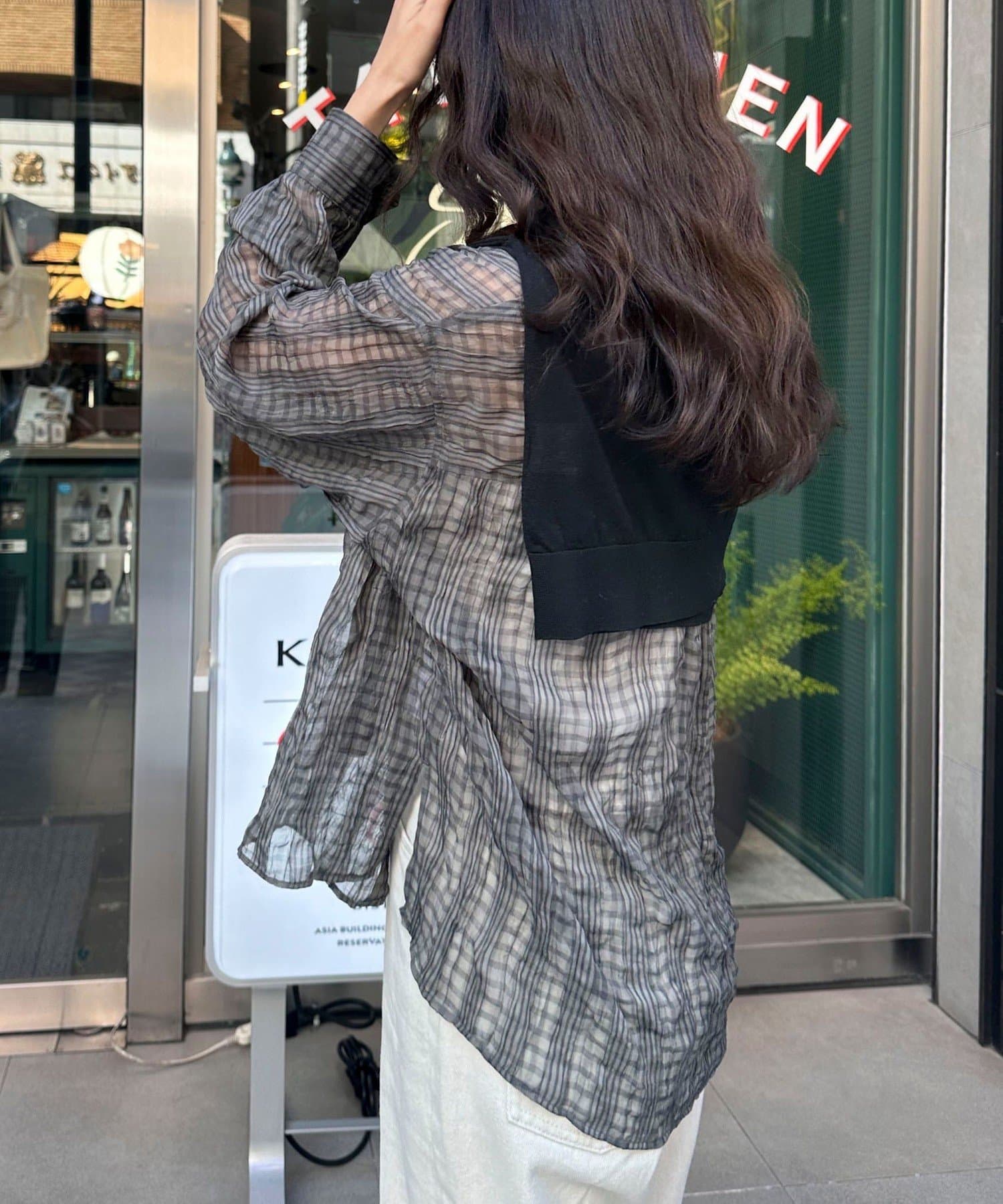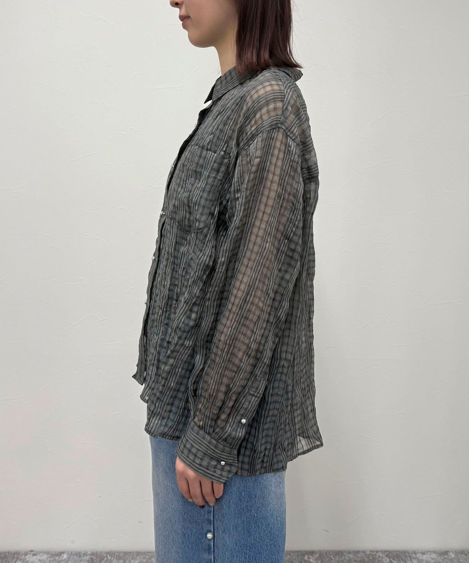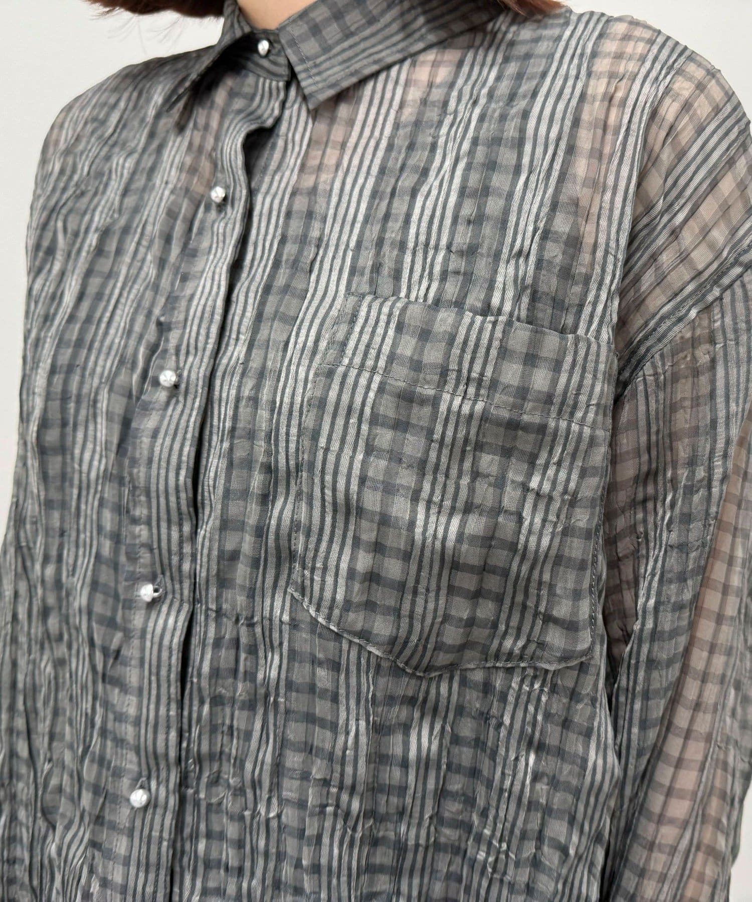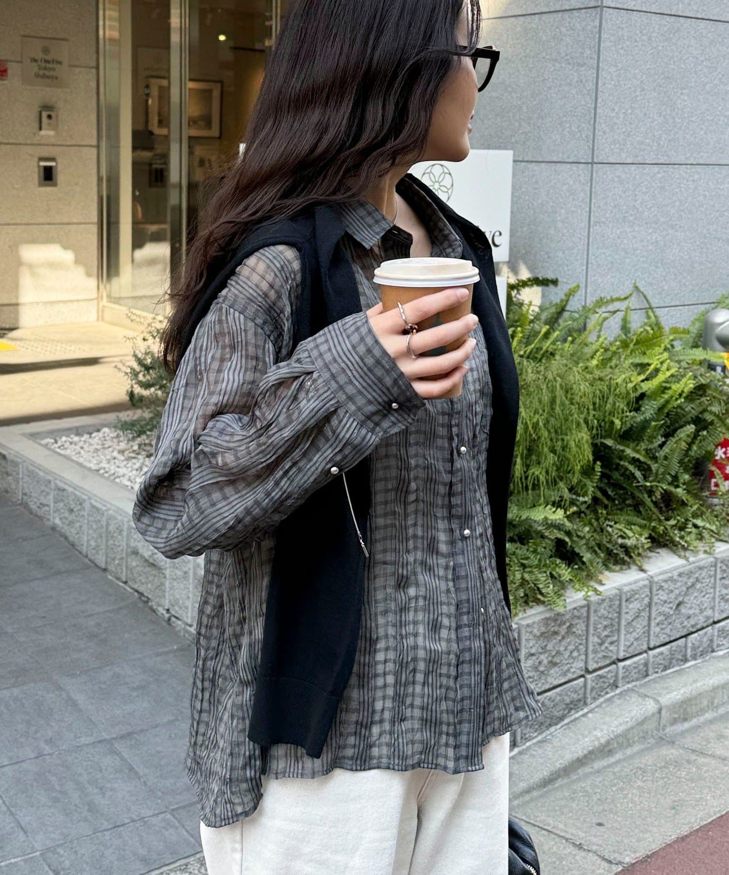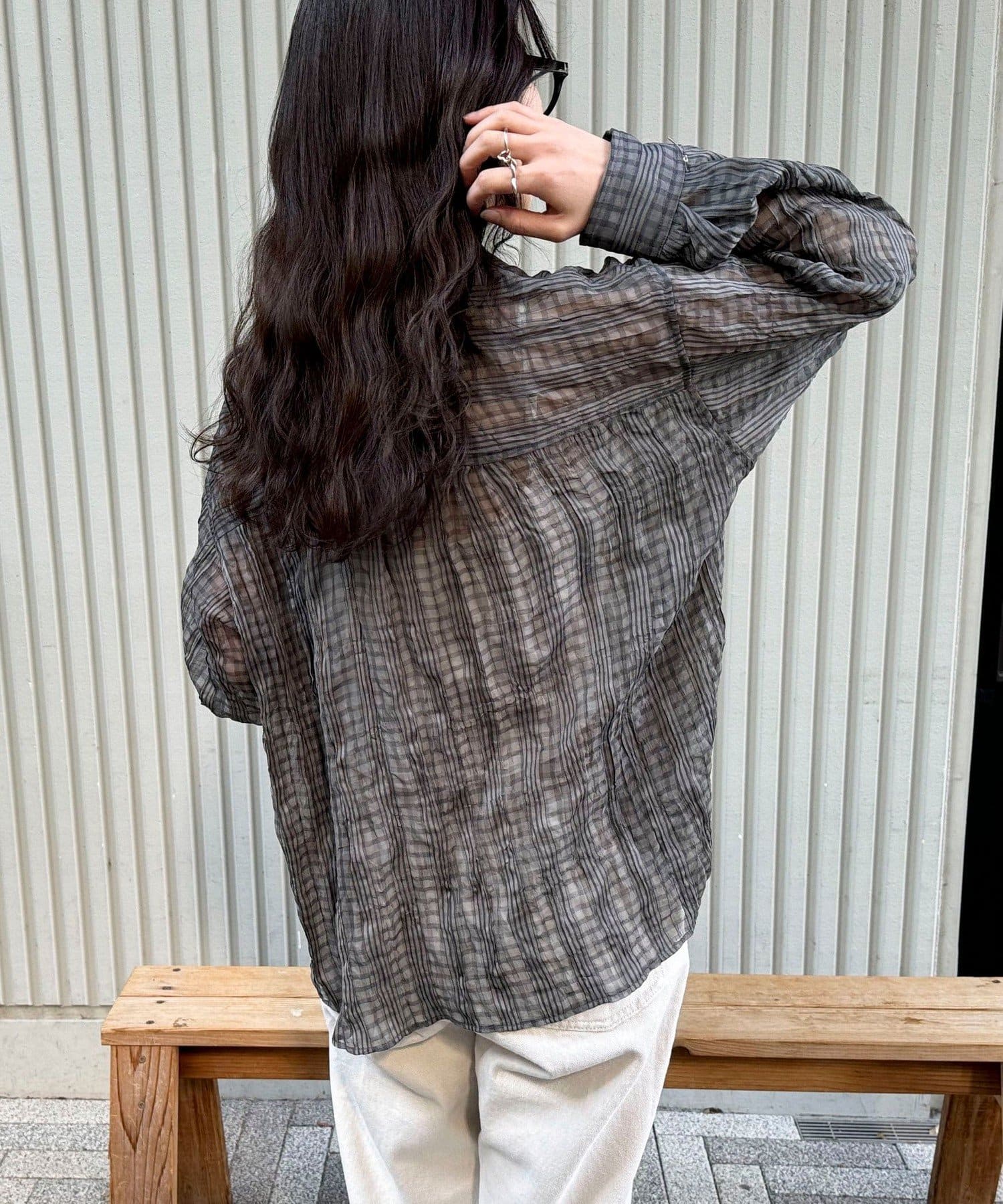 ・清涼感漂う透け感が綺麗なチェック柄シアーシャツです