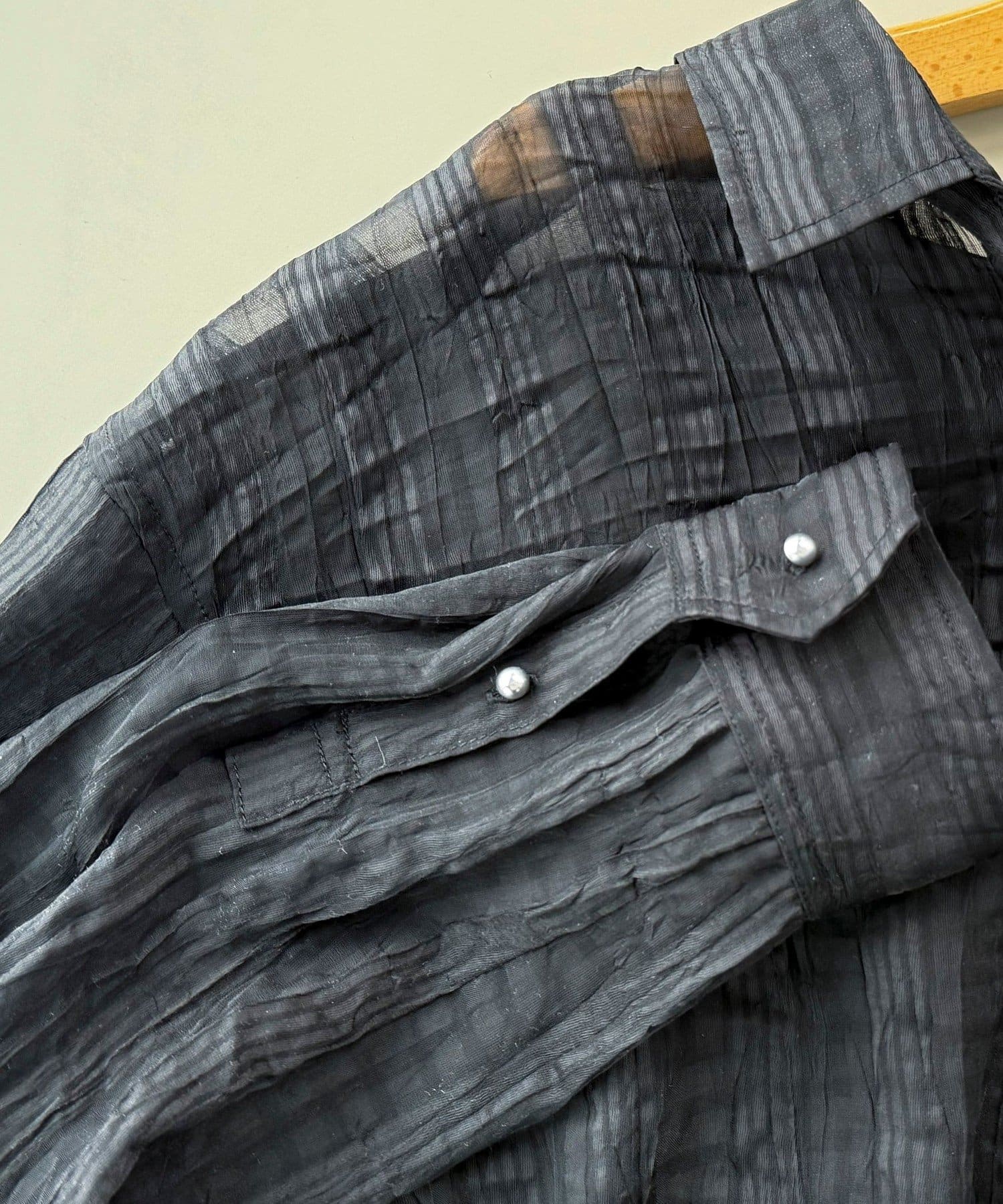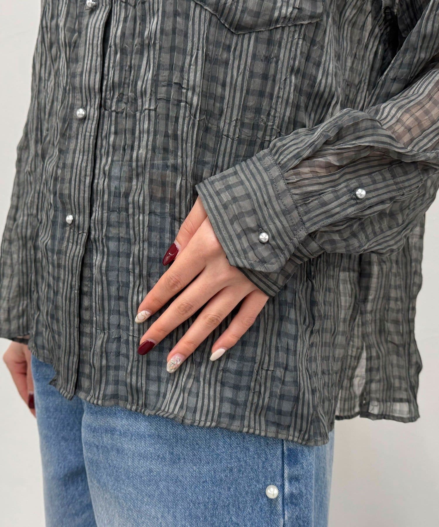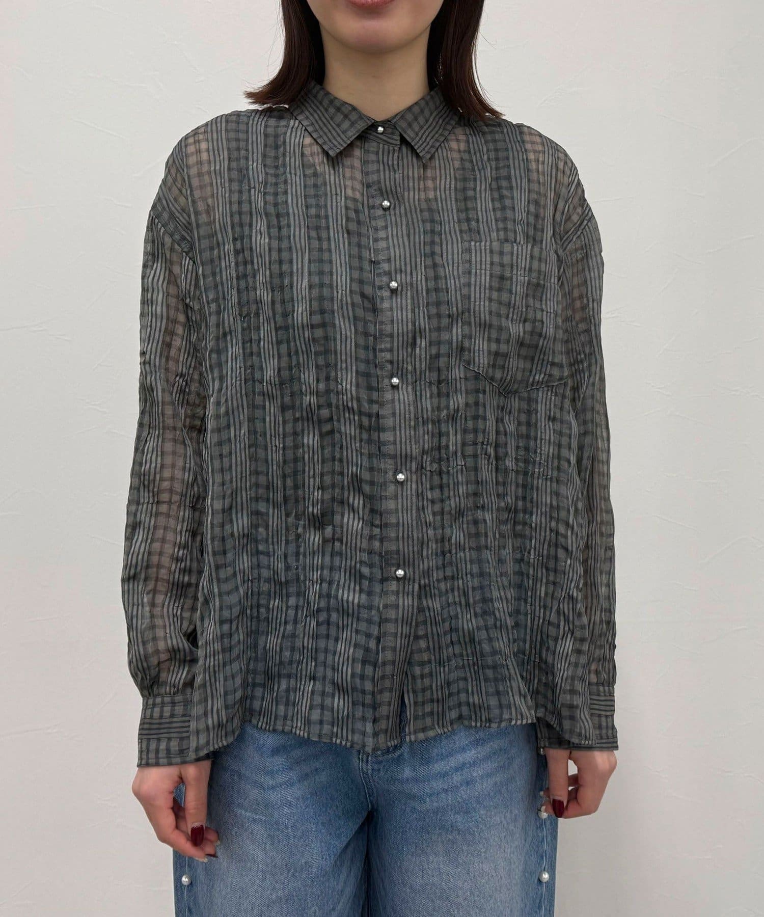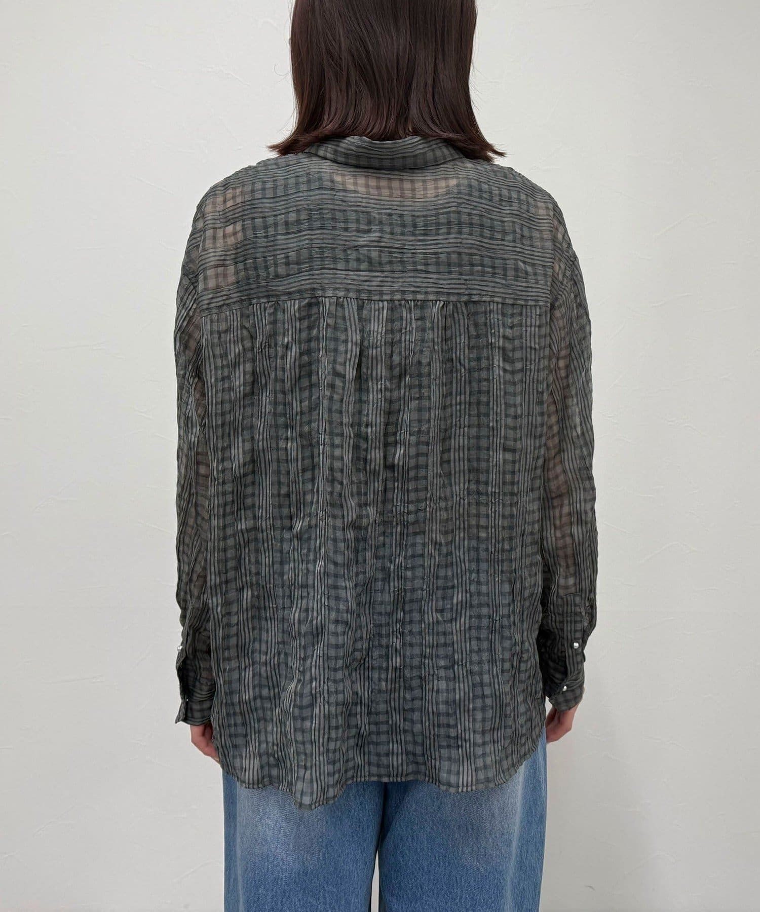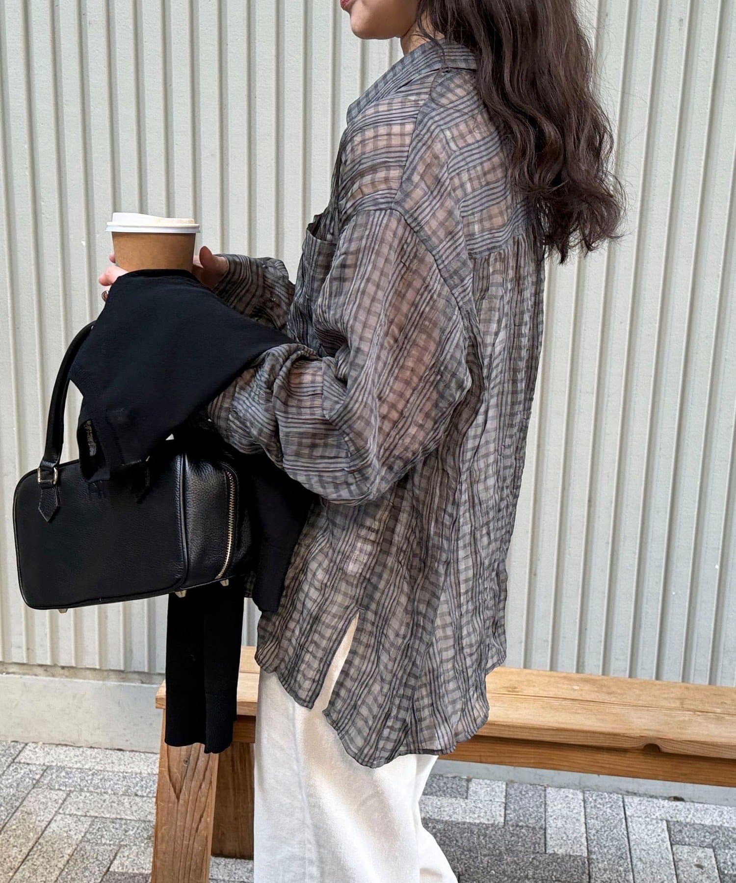 ・清涼感漂う透け感が綺麗なチェック柄シアーシャツです